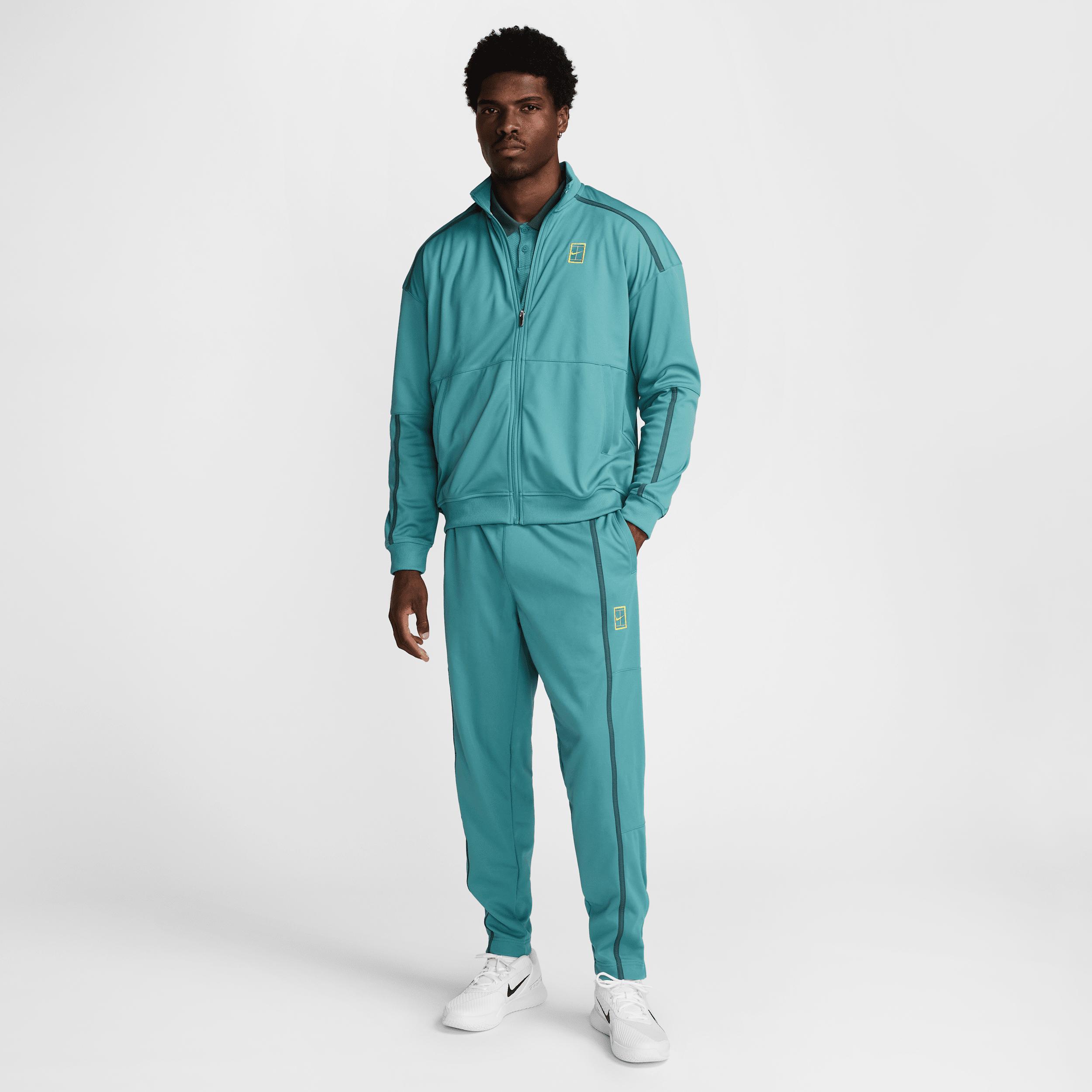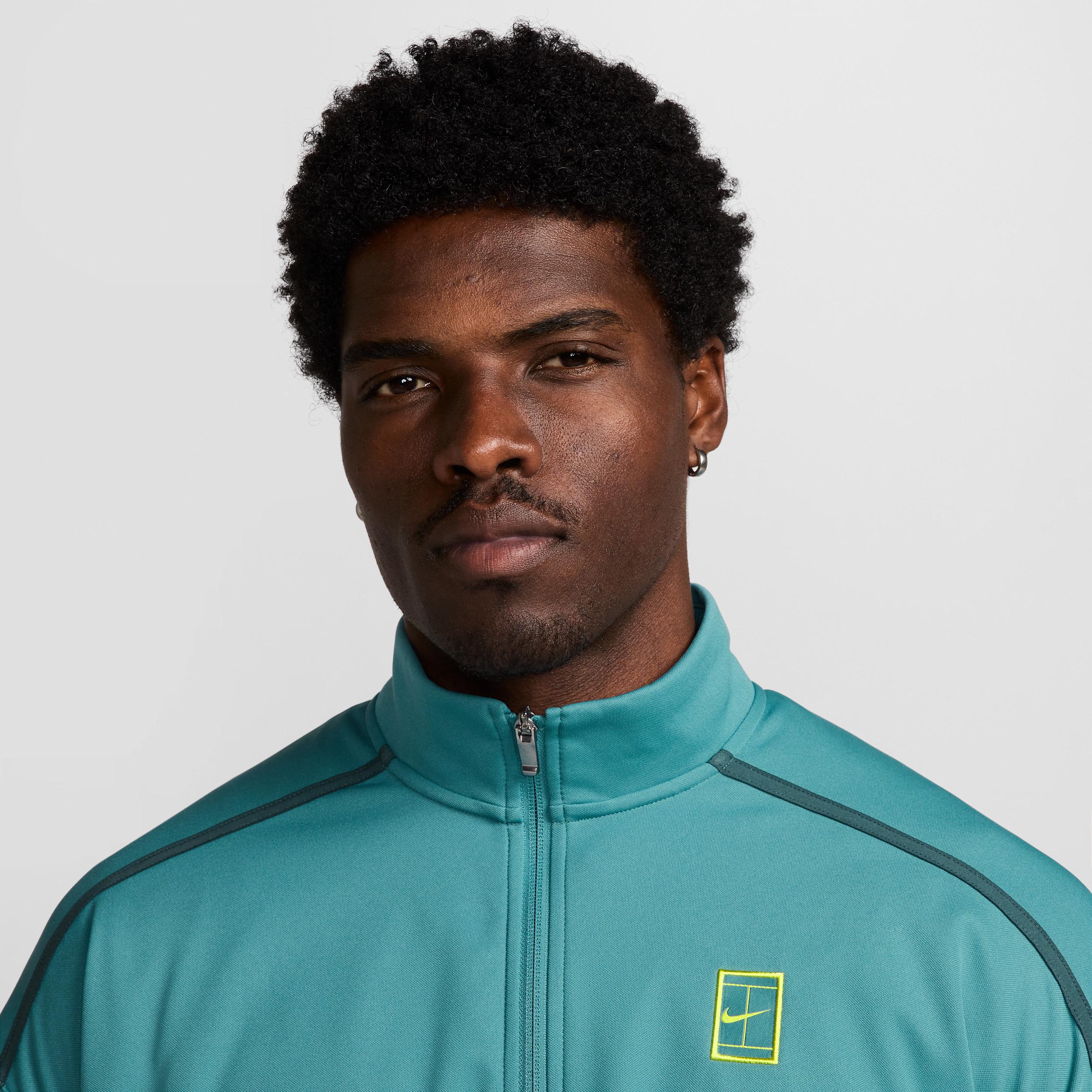 This heritage tennis jacket offers a classic, comfortable look to your pre- and post-match outfit. It features soft, peached fabric, a structured collar and a throwback NikeCourt patch. Benefits:Soft poly-knit fabric has a peached texture on the inside for extra softness. Soft extended ribbing on the cuffs and hem gives extra fitted comfort. Product Details:Multicolor NikeCourt patch. Full-zip design. Body/Mesh: 100% polyester. Machine wash. Imported. Style: FZ6925; Color: Mineral Teal/Faded Spruce; Size: 2XL; Gender: Male; Age Group: Adult | NikeCourt Heritage Men's Tennis Jacket in Green, Size: 2XL | FZ6925-379