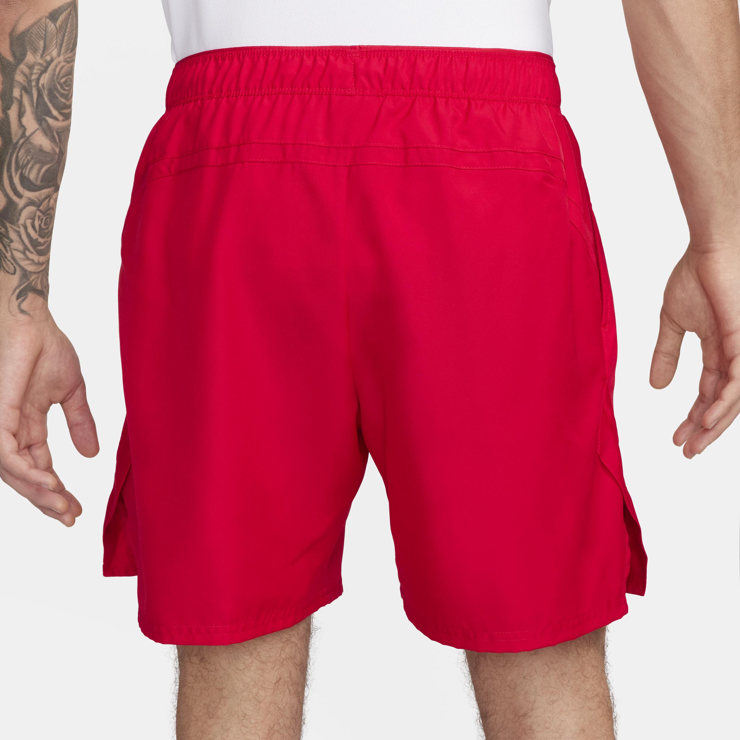 Game, set, match. The NikeCourt Victory Shorts are designed for tennis and built to perform for all your other favorite exercises. They're light and durable, with a sweat-wicking design that helps keep you feeling fresh with each point. Benefits:Nike Dri-FIT technology moves sweat away from your skin for quicker evaporation, helping you stay dry and comfortable. Smooth woven fabric is lightweight and durable. Elastic waistband with drawcord provides a fit that feels just right. Mesh pockets hold your tennis essentials close. Product Details:7" inseam. Body/Pocket bags: 100% polyester. Machine wash. Imported. Style: FD5380; Color: University Red/White; Size: S; Gender: Male; Age Group: Adult | NikeCourt Victory Men's Dri-FIT 7" Tennis Shorts in Red, Size: Small | FD5380-657