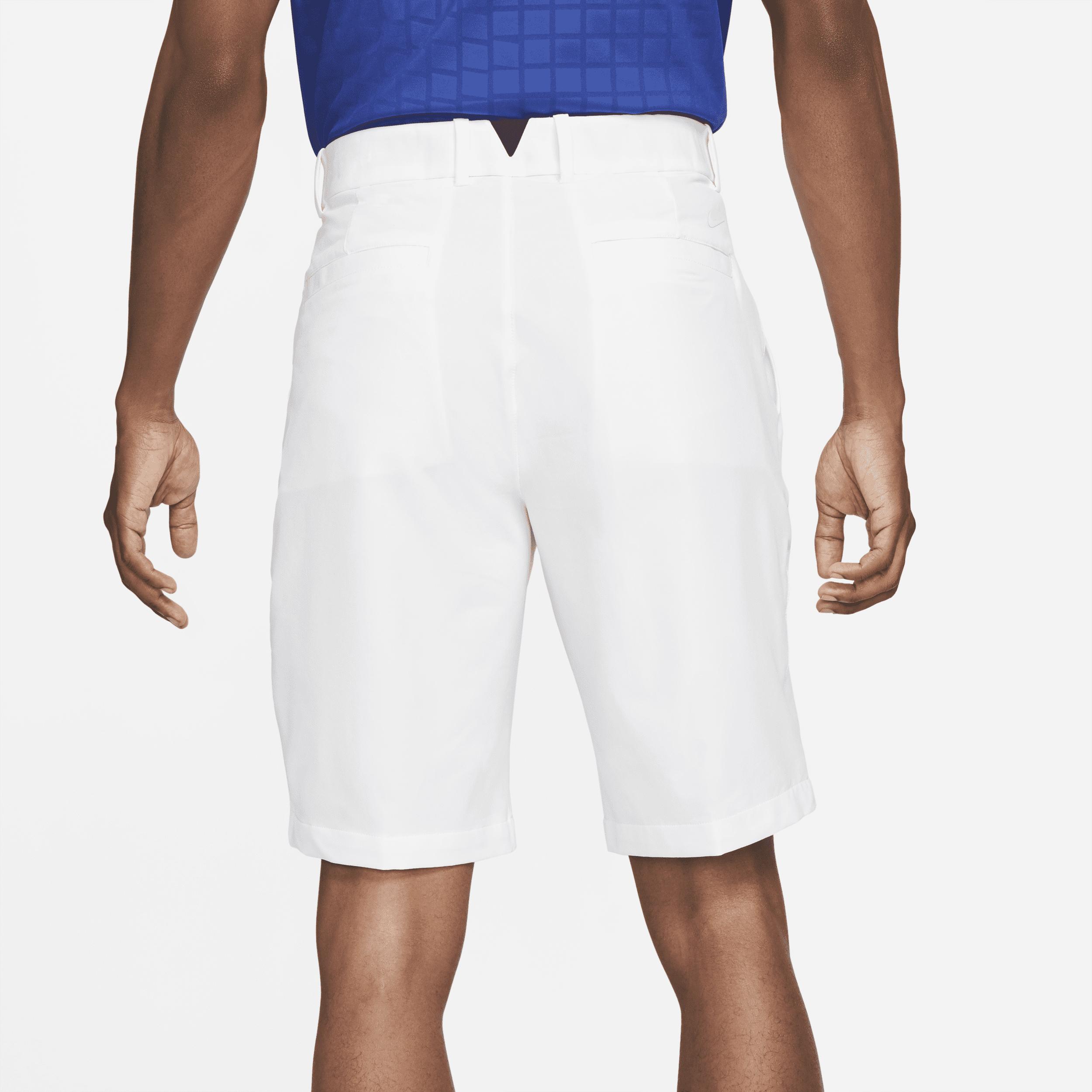Move comfortably on and off the course in the Nike Dri-FIT Shorts. Stretchy fabric lets you line up your putts without restriction and a tacky waistband helps keep your shirt tucked in while you bend and swing. Benefits: Dri-FIT technology helps keep you dry and comfortable. Stretchy woven fabric has a subtle texture on the inside to help keep the fabric from clinging to your skin. Repeating "Nike Golf" graphic on the inner waistband has a slightly tacky texture to help secure a tucked-in shirt. V-notch in the back of the waistband gives you extra stretch. Product Details: Standard fit for a relaxed, easy feel. Mesh-lined pockets. Snap-button closure. Zippered fly. Body: 89-90% polyester/10-11% spandex. Pocket bags: 100% polyester. Material percentages may vary. Check label for actual content. Machine wash. Imported. Style: CU9740; Color: White/White; Size: 34; Gender: Male; Age Group: Adult | Nike Dri-FIT Men's Golf Shorts in White, Size: 34 | CU9740-100