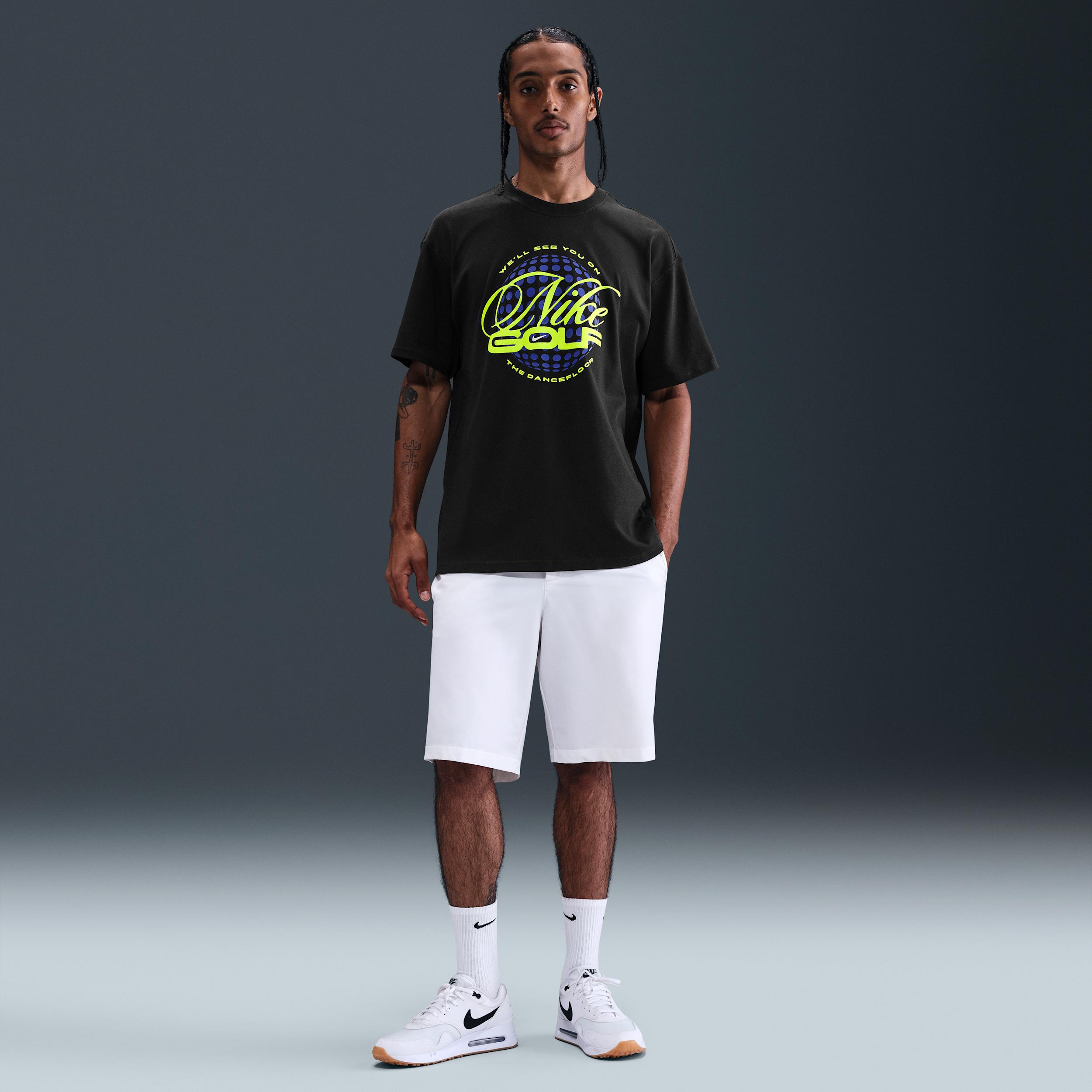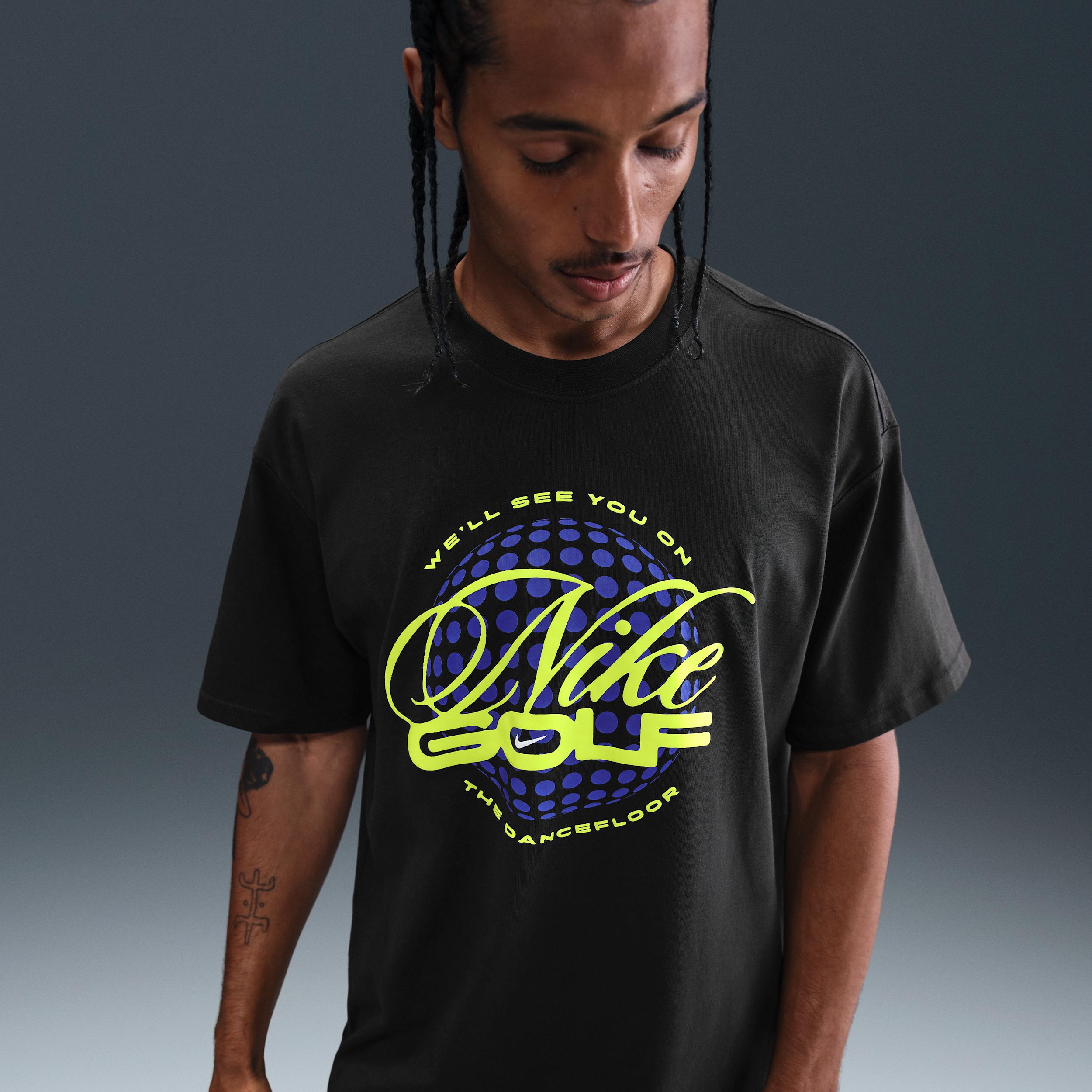 Dropped shoulders, longer sleeves and a roomy fit through the body and hips give the Max90 tee a relaxed and casual look. Soft, midweight cotton provides a slightly structured feel for comfortable everyday wear. [] Product Details:100% cotton. Machine wash. Imported. Style: HV1721; Color: Night Forest; Size: M; Gender: Male; Age Group: Adult | Nike Men's Golf T-Shirt in Green, Size: Medium | HV1721-321
