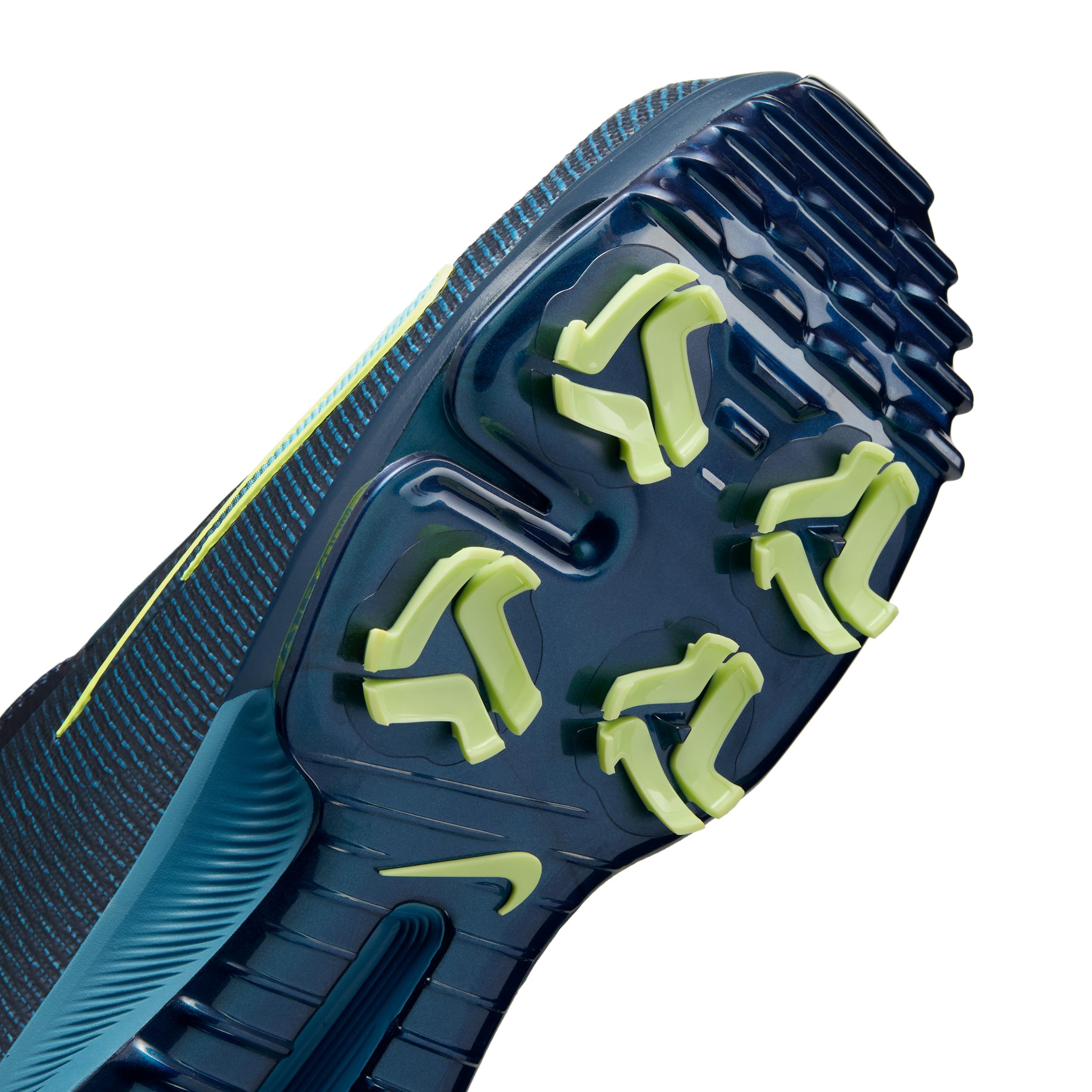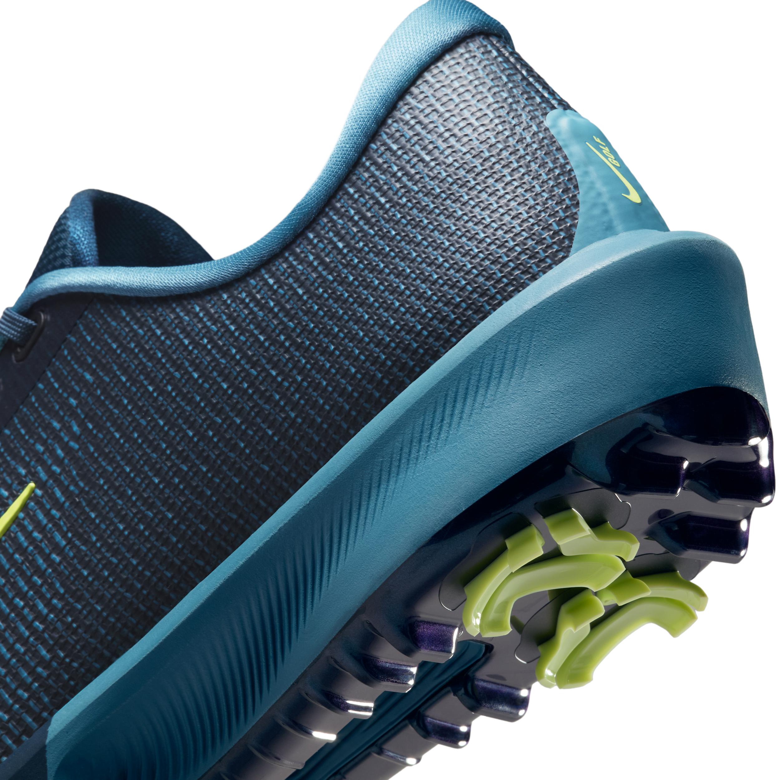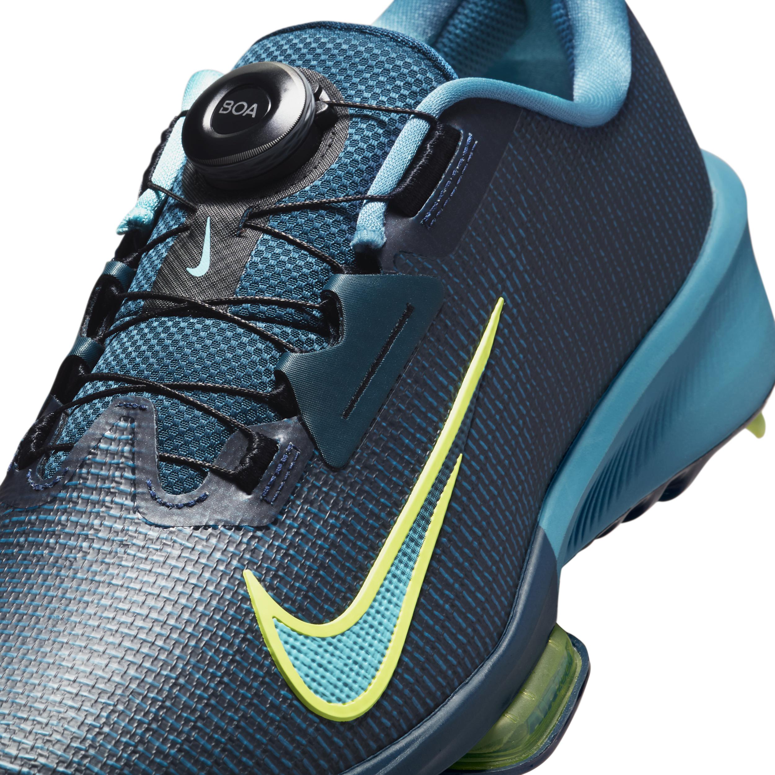 The Infinity Tour 2 ups the ante from the previous iteration with more spikes, updated foam and a flattened Air Zoom unit. With plenty of bounce and comfort, itâs game for wherever your next round takes you. This version gives you a personalized fit that's tuned for precision. Personalized Fit:Tuned for precision, the Boa Fit System is micro-adjustable for a fast, custom fit. Spike Up:We added two more integrated spikes in the forefoot, bringing the total to six for great grip. We placed the spikes under the Air Zoom unit to provide better energy return and added comfort throughout your round. Low and Stable:The Air Zoom unit is lower to the ground, offering you better stability without sacrificing responsiveness when marching from hole to hole. Stability for Swings:The updated midsole foam offers a different level of stability for a more consistent underfoot feel, helping keep you level when swinging for the green or walking down the middle of the fairway. Fly Upper:The upper is made of Nike Flyweave construction, which gives you lightweight strength and containment. The lightweight stretch skin in the upper helps keep water out and makes the shoe easier to clean. More Benefits:We upgraded the internal fit pods in the heel for comfort and security. Padded collar adds comfort. Style: HQ2160; Color: Armory Navy/Smokey Blue/Light Lemon Twist; Size: 12; Gender: Male; Age Group: Adult | Nike Infinity Tour 2 Golf Shoes (Wide) in Blue, Size: 12 | HQ2160-400