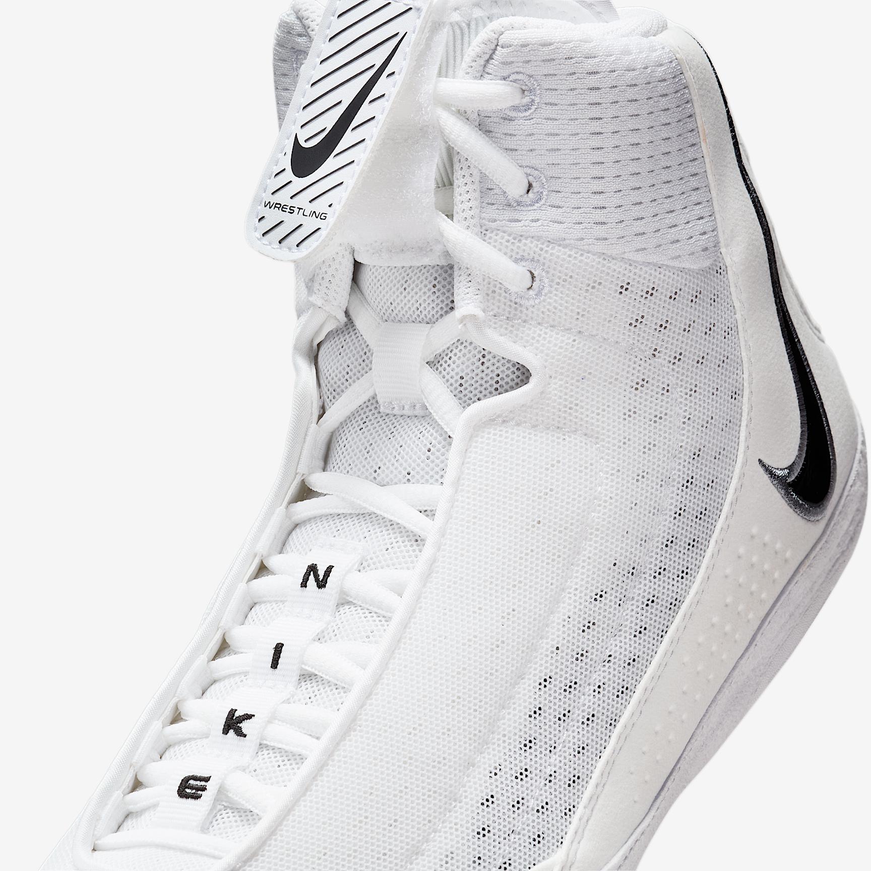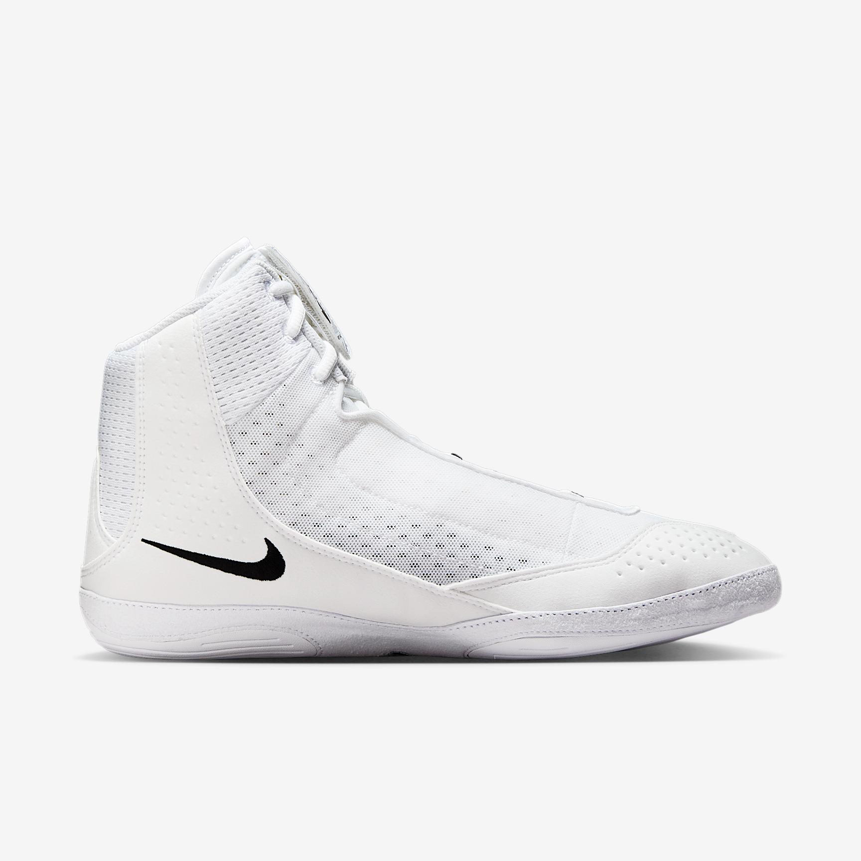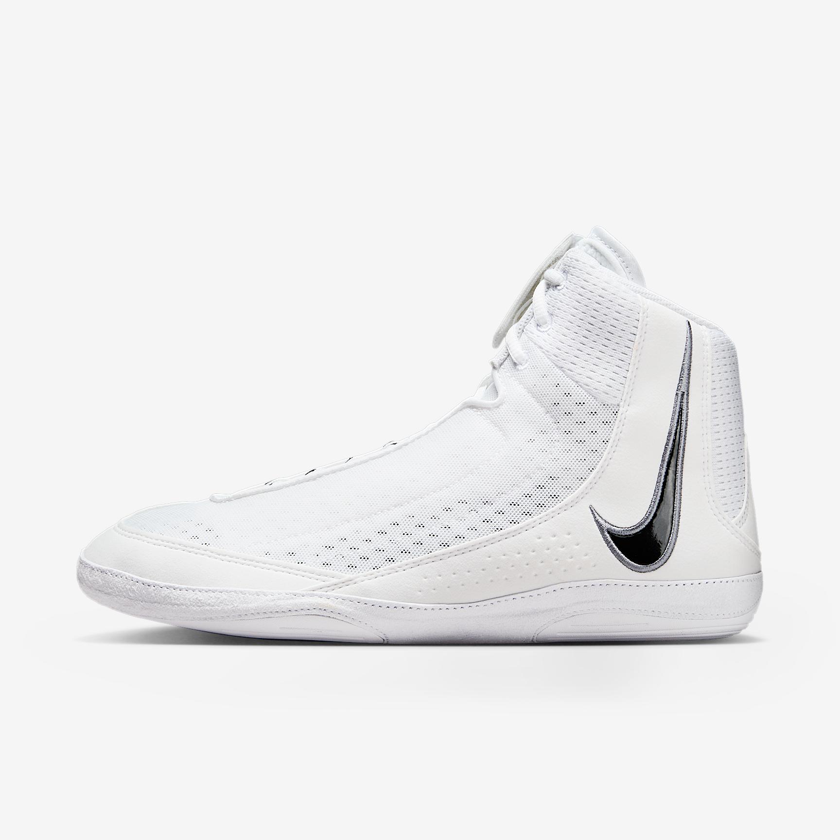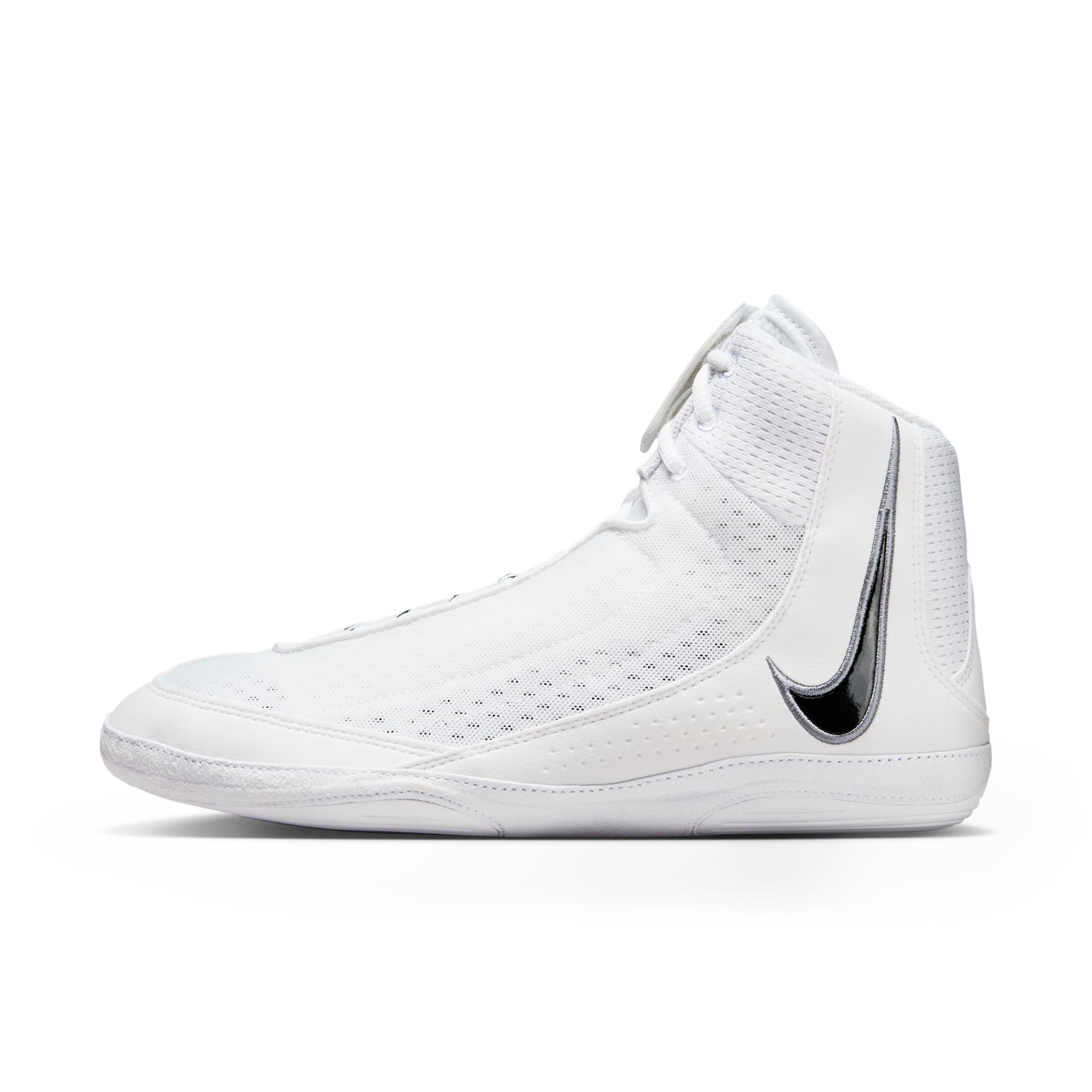 Plant your opponent into the mat and climb to the top of the podium in the Nike Inflict 4. It offers a little bit of everything: comfort, durability and flexibility all while maintaining a lightweight design. Its mobile, breathable and comes with a hook-and-loop strap that helps keep your laces tied. [] Product Details:Breathable mesh on upper. Rubber outsole. Style: HM9674; Color: White/White/Black; Size: 3.5; Gender: Male; Age Group: Adult | Nike Inflict 4 Wrestling Shoes in White, Size: 3.5 | HM9674-100