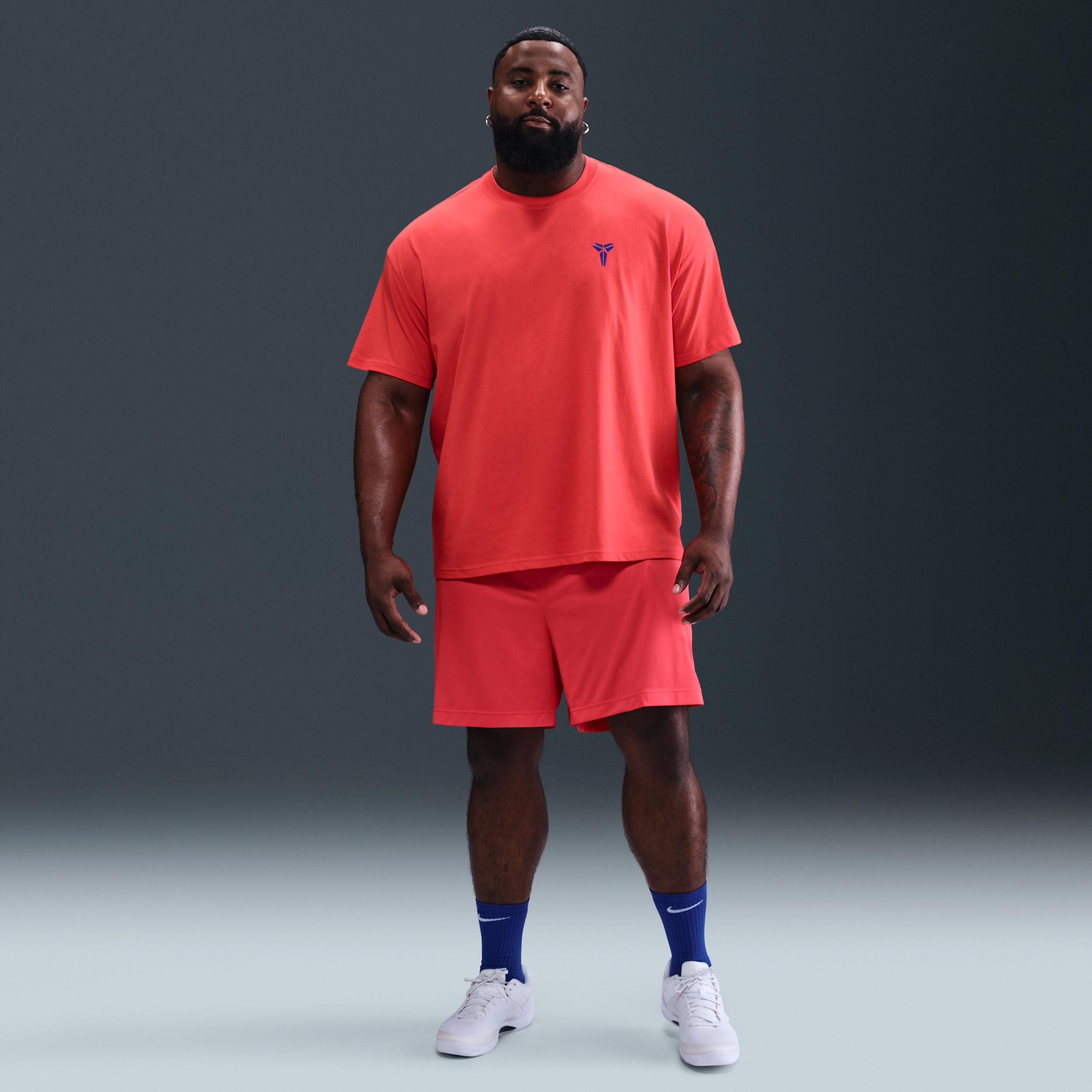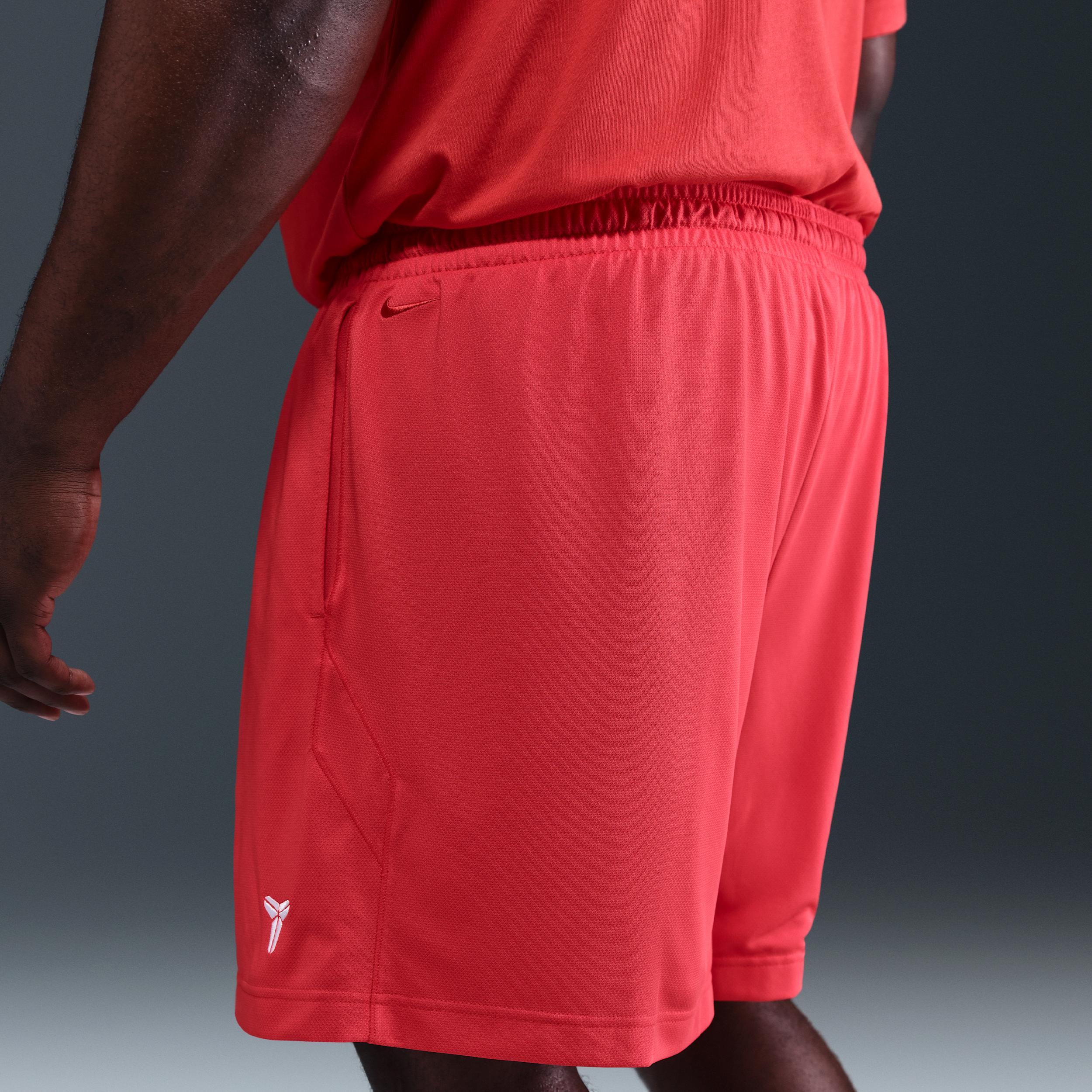These Kobe 6â basketball shorts pair a premium dual-layer build with sweat-wicking Dri-FIT technology. Soft breathable knit with mesh lining helps keep you cool. Benefits:Nike Dri-FIT technology moves sweat away from your skin for quicker evaporation, helping you stay dry and comfortable. Elastic waistband with drawcord provides a secure fit. Product Details:Side pockets. Embroidered Kobe Sheath logo. Embroidered Swoosh logo. Body/Lining: 100% polyester. Machine wash. Imported. Style: HJ8103; Color: Light Crimson/Light Crimson/White; Size: S Tall; Gender: Male; Age Group: Adult | Nike Kobe Dri-FIT 6" Basketball Shorts in Red, Size: S Tall | HJ8103-696