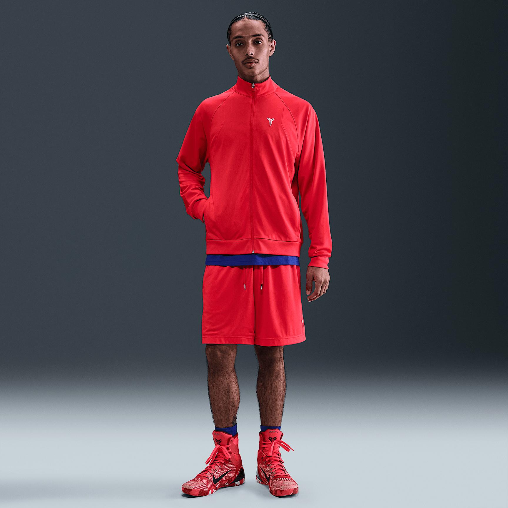 This Kobe jacket is made with soft, sweat-wicking knit fabric. Mamba graphics celebrate the Year of the Snake and Kobes iconic nickname. Built to Play:Nike Dri-FIT technology moves sweat away from your skin for quicker evaporation, helping you stay dry and comfortable. Built to Move:Slightly dropped shoulders and a classic fit provide a comfortable, confident feel. Product Details:Stand-up collar. Embroidered Swoosh logo. Full-zip design. Side pockets. Ribbed cuffs and hem. Body: 100% polyester. Machine wash. Imported. Style: HJ8097; Color: Light Crimson/Light Crimson/White; Size: 2XL Tall; Gender: Male; Age Group: Adult | Nike Kobe Dri-FIT Knit Jacket in Red, Size: 2XL Tall | HJ8097-696