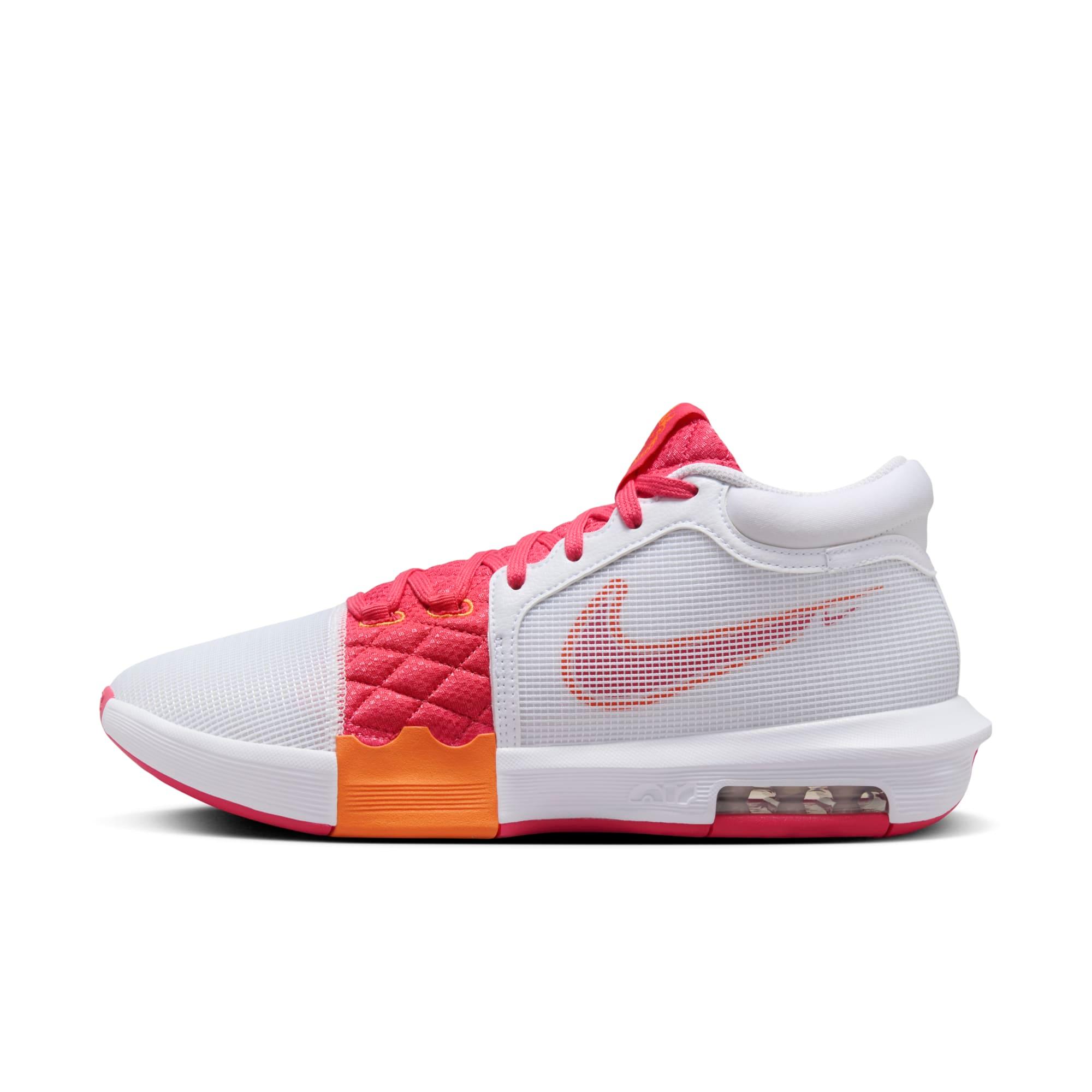 When you step on the floor, what kind of performance do you want to put on? Stop the show in these LeBron Witness 8s, and let them know there are no limits to your flair and full-scale skills. This sleek and boldly sculpted shoe offers stability when exploding and soft landings when you come back to the ground, allowing kingpins like you and LeBron to bound, brake and bolt from baseline to baseline. Click on this MENS GUIDE to find the perfect fit and more! TECHNOLOGIES & FEATURES A Max Air unit in the low-profile midsole combines with a foam wrap-up for support when youre moving in lateral directions, helping to cushion your landing while supporting the smooth transition from heel to toe Breathable mesh provides a lightweight, conforming fit in the upper, from the webbing that harnesses your forefoot to the external molded pieces that help secure your heel Reinforced stitching along the sides helps the shoe fit snugly for full-foot containment Classic herringbone pattern adds durable traction. Size: 13. Color: White Aster Pink. Gender: male. Age Group: adult.