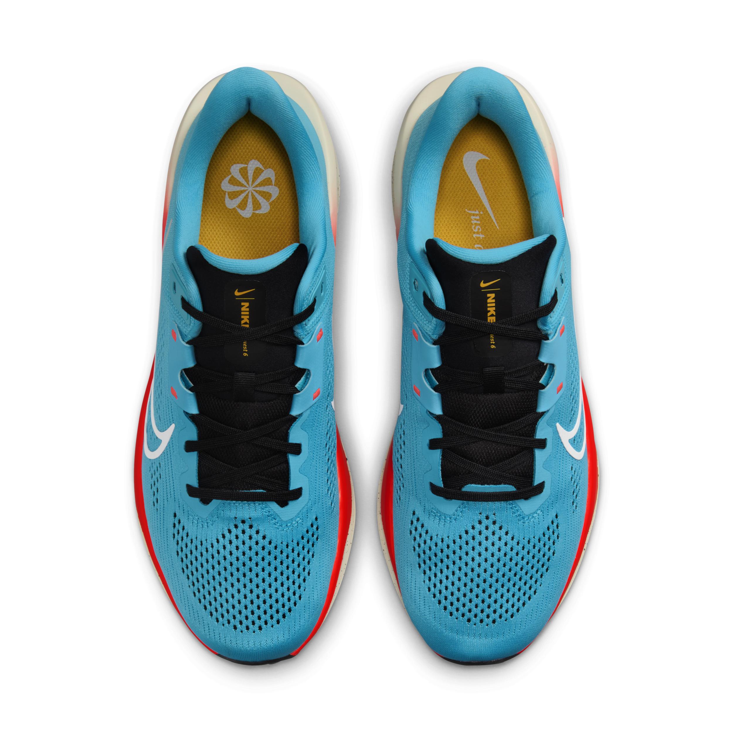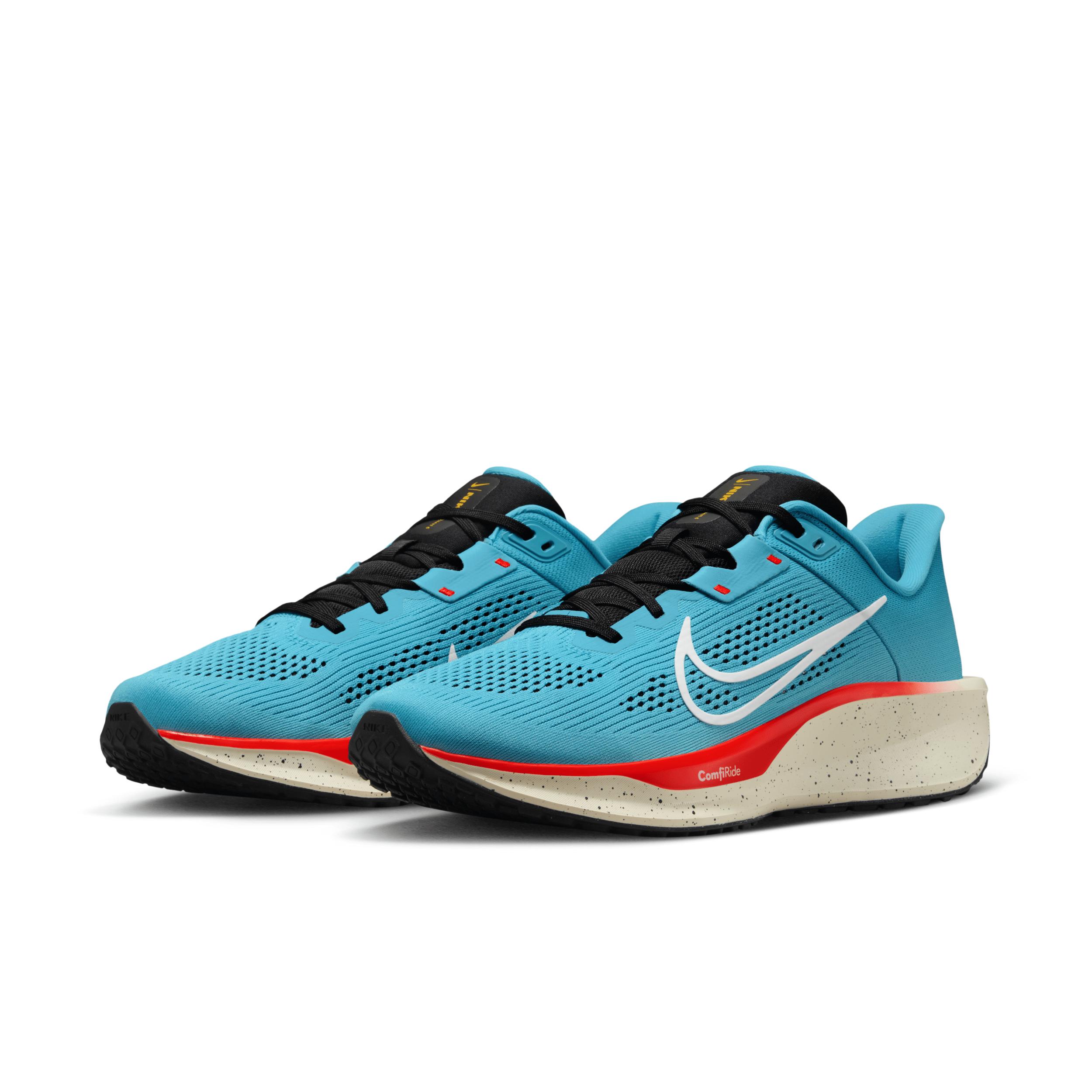 A high foam stack and secure fit for your everyday miles. The Nike Quest 6 is for runners of all levels. But make no mistake, its anything but entry-level. A supercomfortable and supportive midfoot fit band helps keep you stable for your miles. Plus, a supersoft midsole foam helps cushion each step. Secure Fit:Midfoot fit band helps keep your foot more secure the tighter your laces are. Softer, More Responsive:Increased midsole height means a softer and more responsive ride compared to the Quest 5. Grippy Traction:Rubber outsole has the traction to help keep your feet gripped to the pavement. [] Product Details:Weight:Approx. 295g/10.4oz (Mens US 10). Heel-to-toe drop:10mm. Style: FD6033; Color: Baltic Blue/Black/Bright Crimson/White; Size: 10; Gender: Male; Age Group: Adult | Nike Quest 6 Mens Road Running Shoes in Blue, Size: 10 | FD6033-400