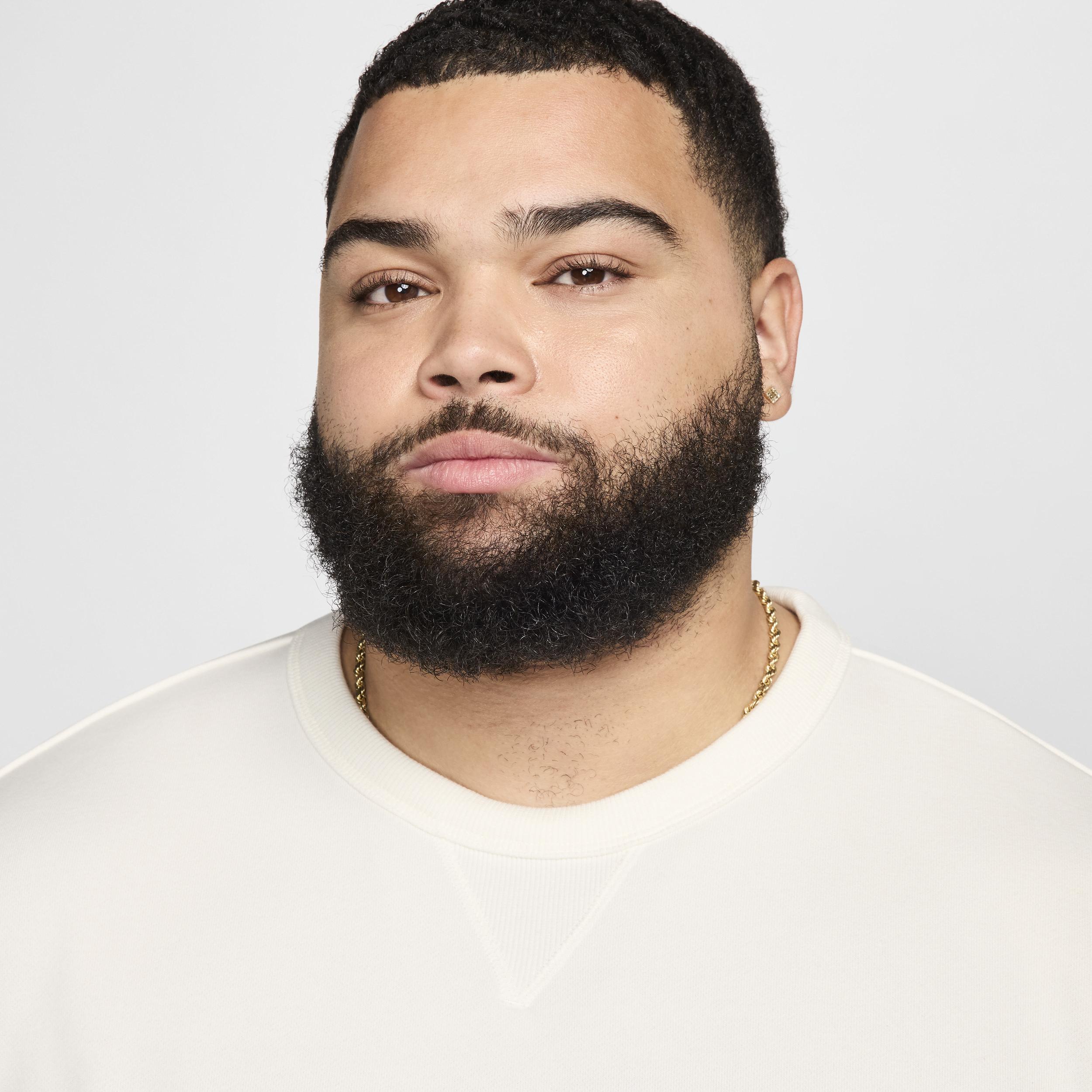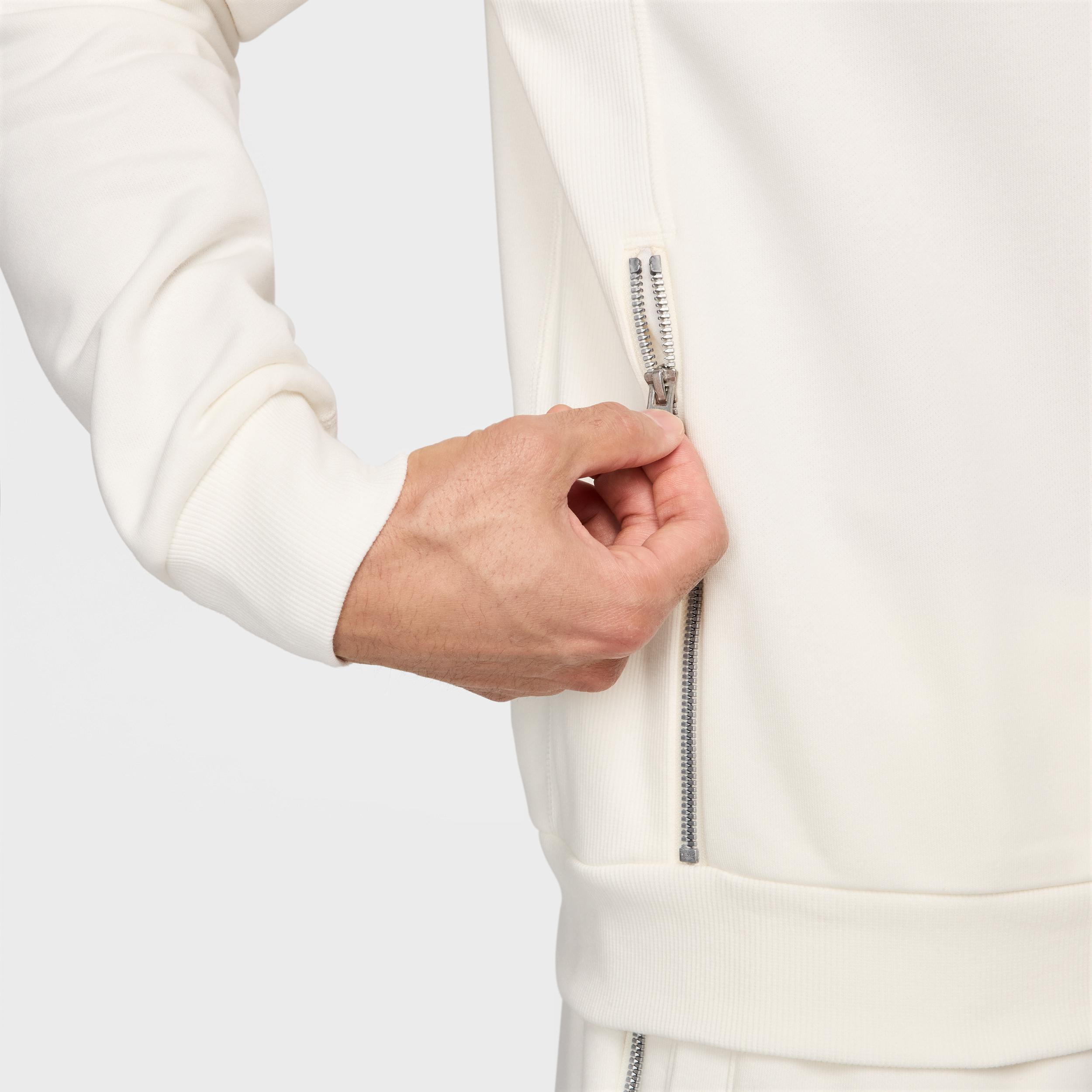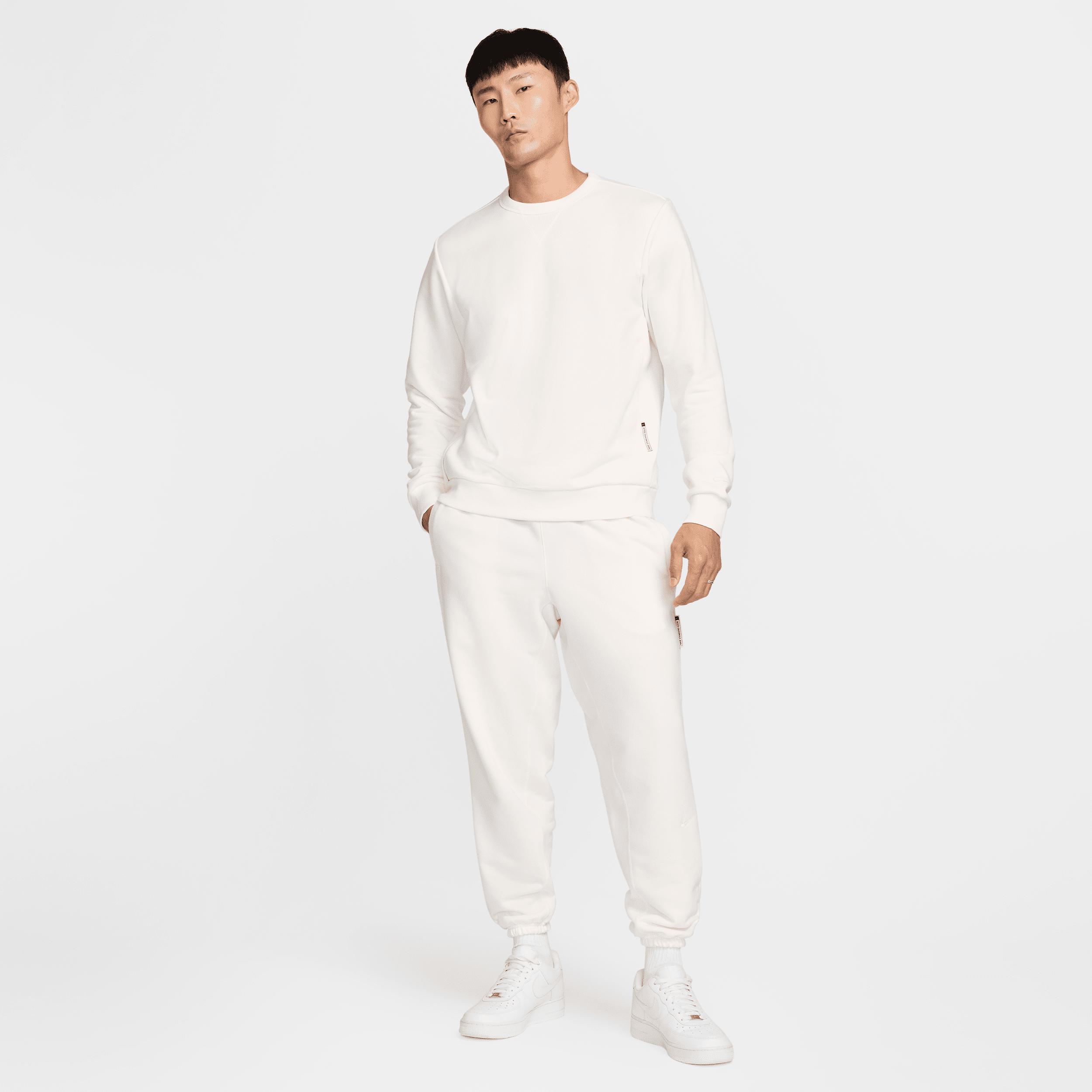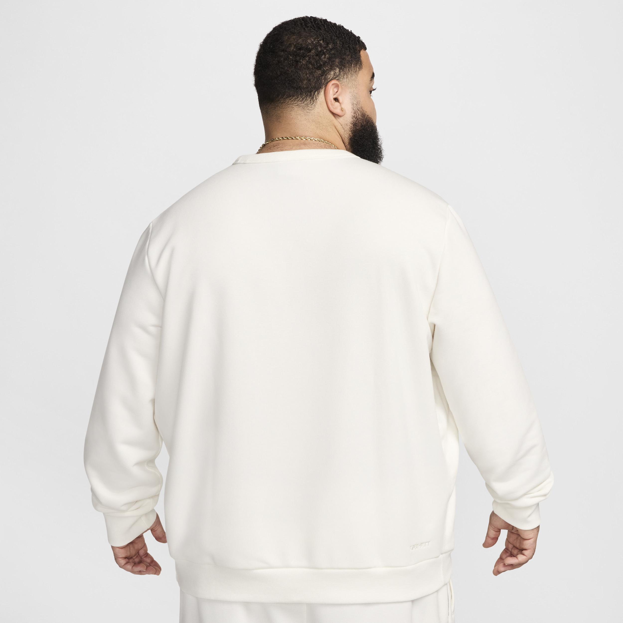 Nike's Standard Issue collection is where classic style meets modern performance. With an easygoing fit and soft midweight knit, this crew-neck sweatshirt is all about versatility. Moisture-wicking technology helps you stay dry. Stay-Dry Support:Nike Dri-FIT technology moves sweat away from your skin for quicker evaporation, helping you stay dry and comfortable. Everyday Wear:Smooth on the outside with unbrushed loops on the inside, this midweight French terry helps create breathability, so it’s comfy enough for you to wear all year long, no matter the temp. Updated Fit:We updated the fit of our Standard Issue collection from a looser style to a classic fit that sits slightly off the body. We extended the length for added coverage. More Benefits:Zippered utility pocket stores small items. Ribbed panels on the side and underarm provide extra stretch. Product Details:Ribbed cuffs and hem. "Standard Issue" woven label. Body: 54% polyester/46% cotton. Rib: 96% cotton/4% spandex. Machine wash. Imported. Style: FZ0220; Color: Sail/Pale Ivory; Size: M; Gender: Male; Age Group: Adult | Nike Standard Issue Men's Dri-FIT Basketball Crew-Neck Sweatshirt in White, Size: Medium | FZ0220-133