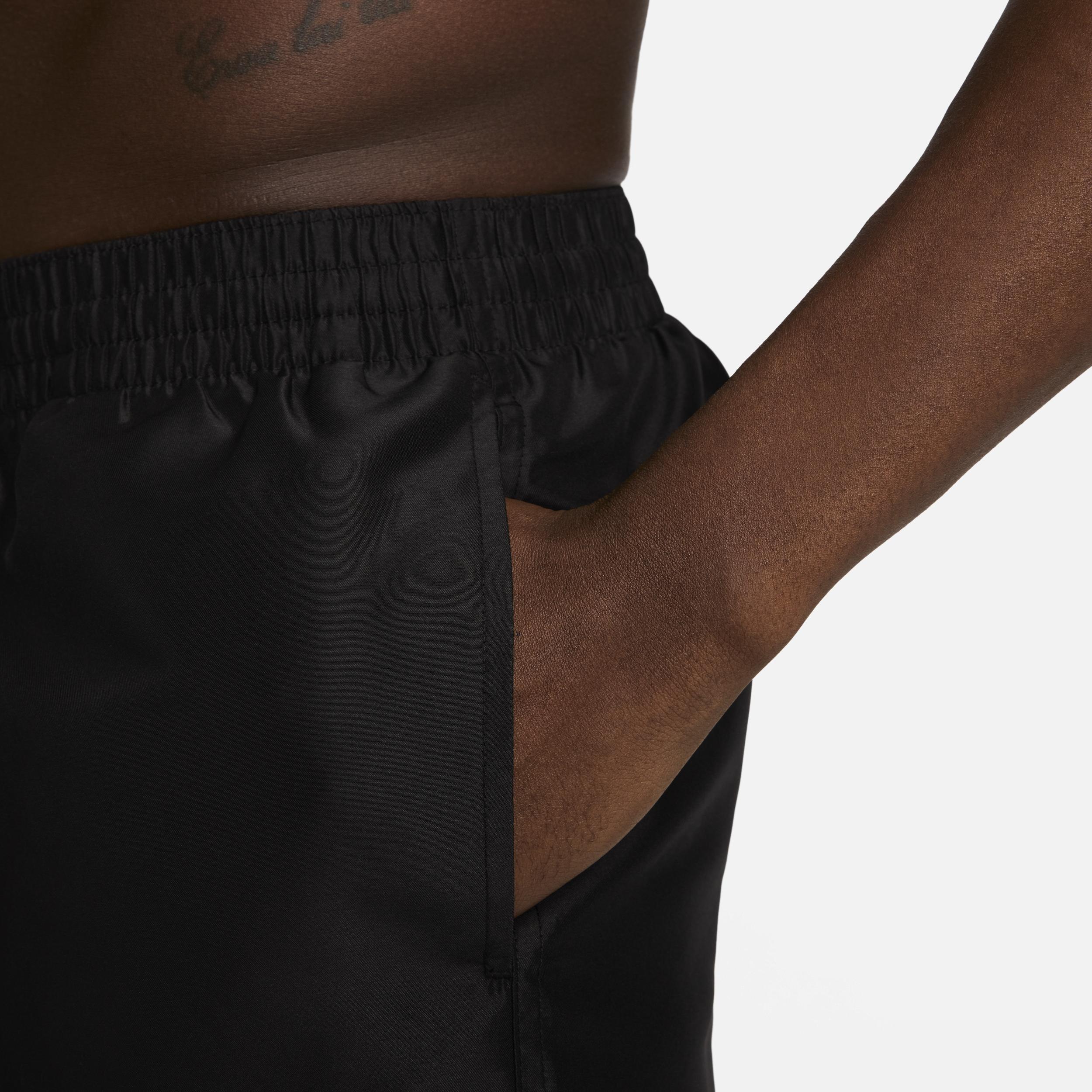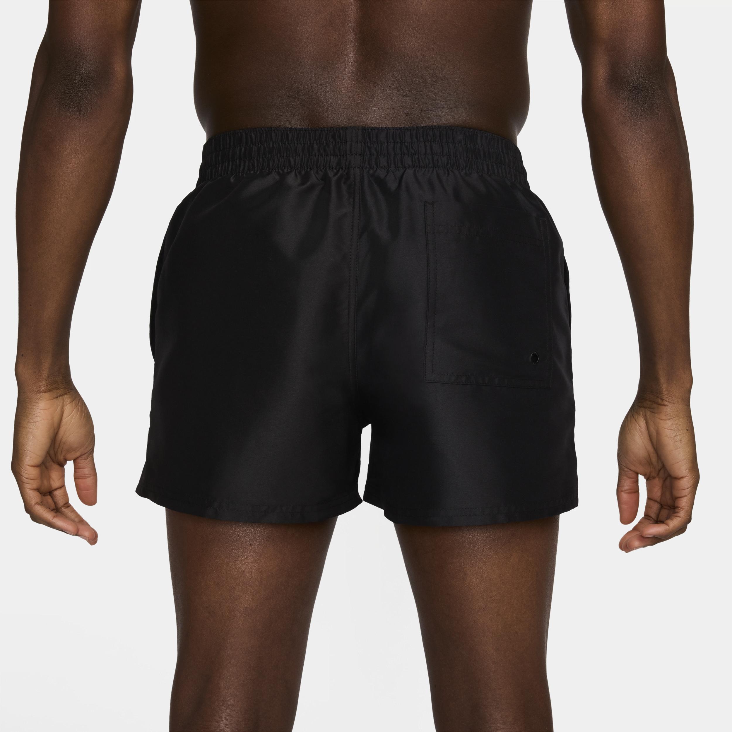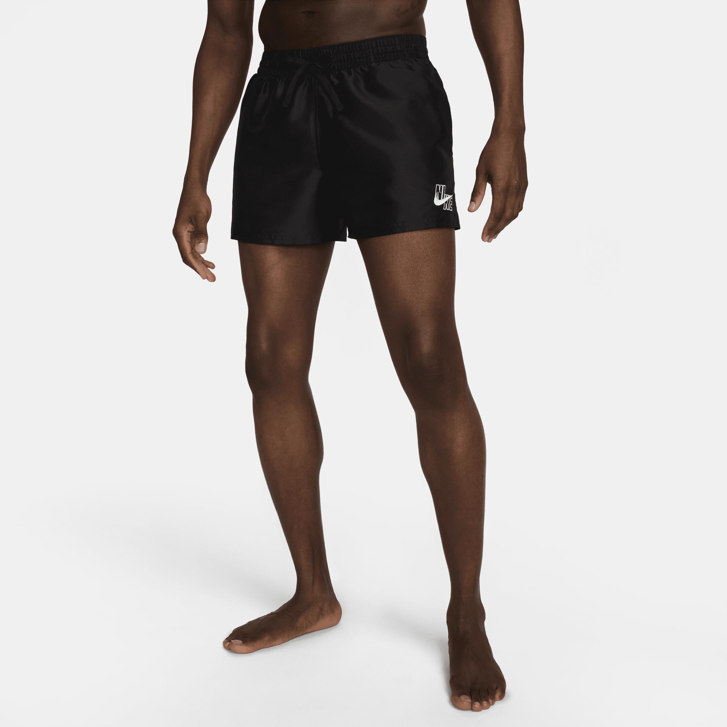 Love a shorter cut? Then these shorts are sure to be your new fave. A breathable mesh brief and stretchy waistband with external drawcord help keep the fit comfortable and secure. Pockets designed for easy water drainage help keep small items safe and accessible. Benefits: Built-in mesh brief helps provide optimal comfort and support. Elastic waistband with internal drawcord helps provide a comfortable fit. Mesh pocket bags allow for easy water drainage. Product Details: Body: 100% polyester. Lining: 50% recycled polyester/50% polyester. Machine wash. Imported. Style: NESSD452; Color: Black; Size: 2XL; Gender: Male; Age Group: Adult | Nike Swim Essential Men's 3" Volley Shorts in Black, Size: 2XL | NESSD452-001