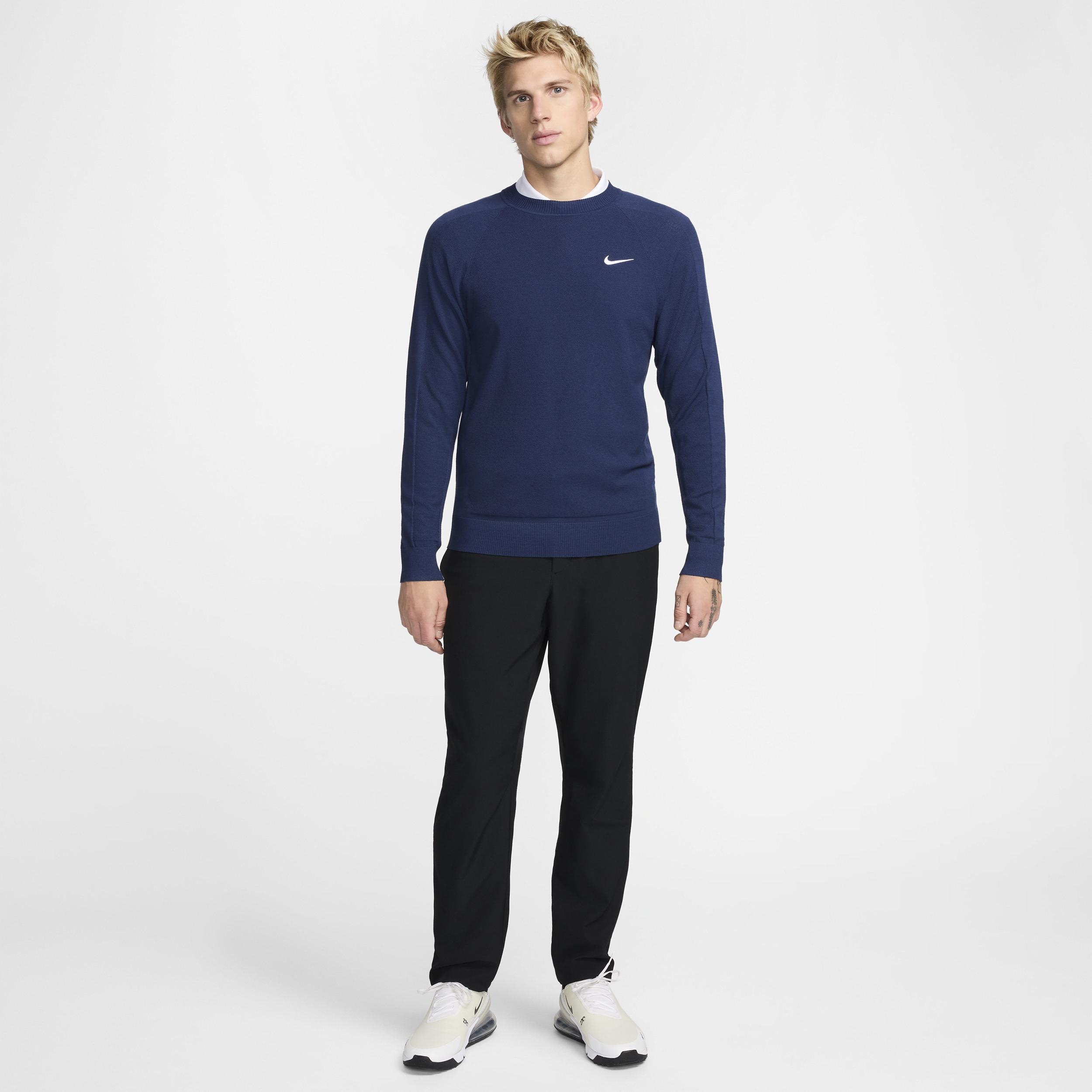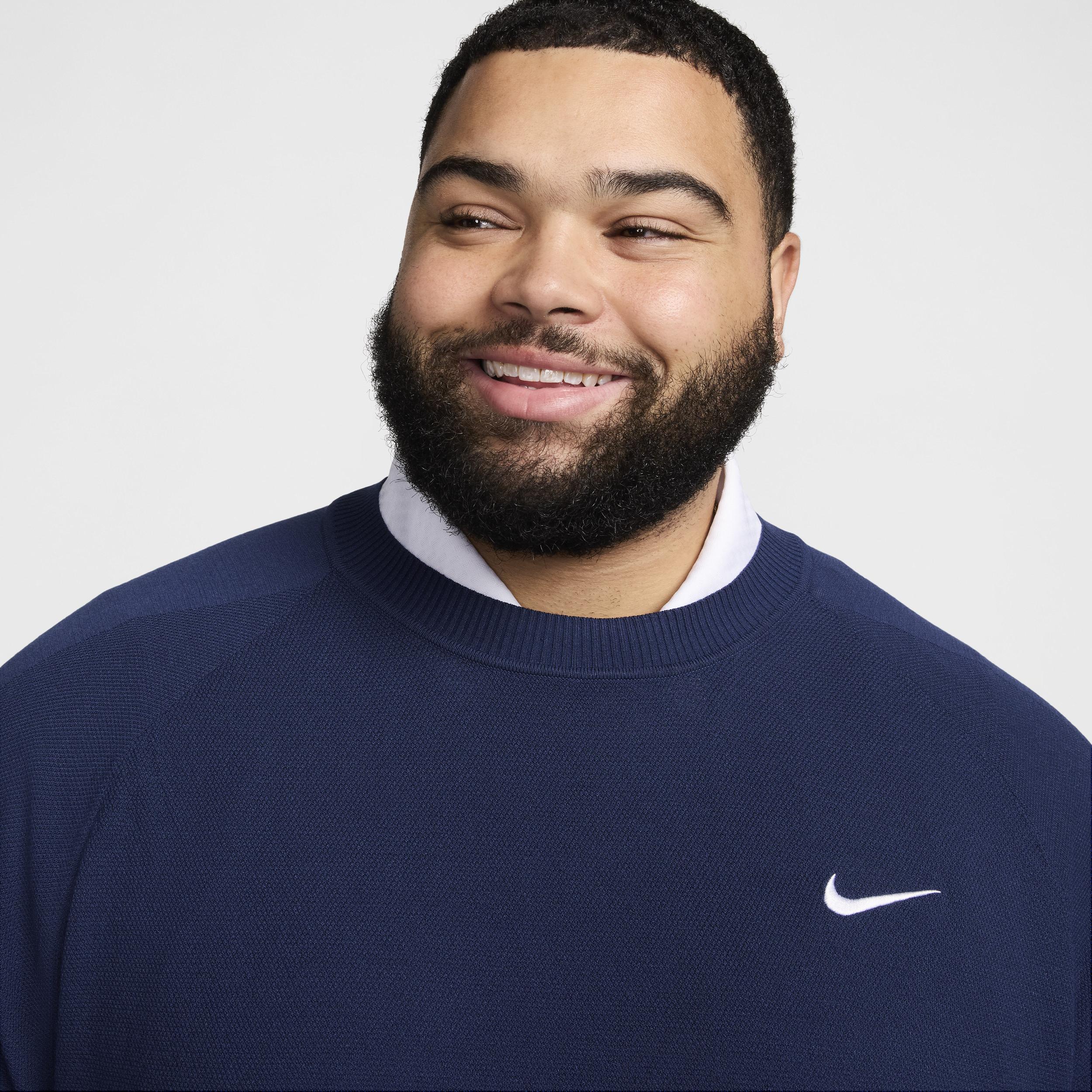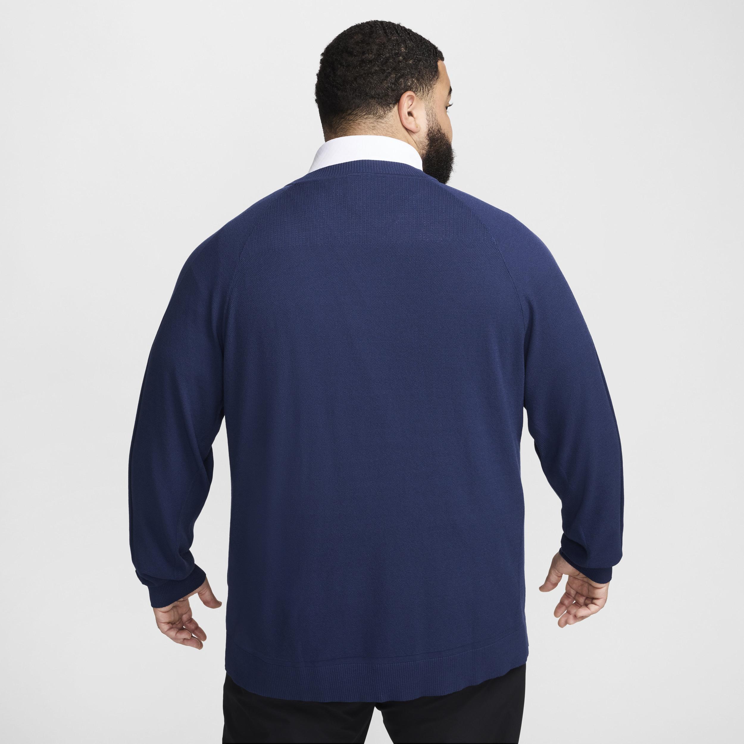 The Tour sweater offers an essential layering piece for brisk days. A classic fit and stretchy design lets you swing without restriction. Product Details:Ribbed collar, cuffs and hem. 69% rayon/31% polyester. Machine wash. Imported. Style: FQ8832; Color: Midnight Navy/White; Size: XL; Gender: Male; Age Group: Adult | Nike Tour Mens Golf Sweater in Blue, Size: XL | FQ8832-410