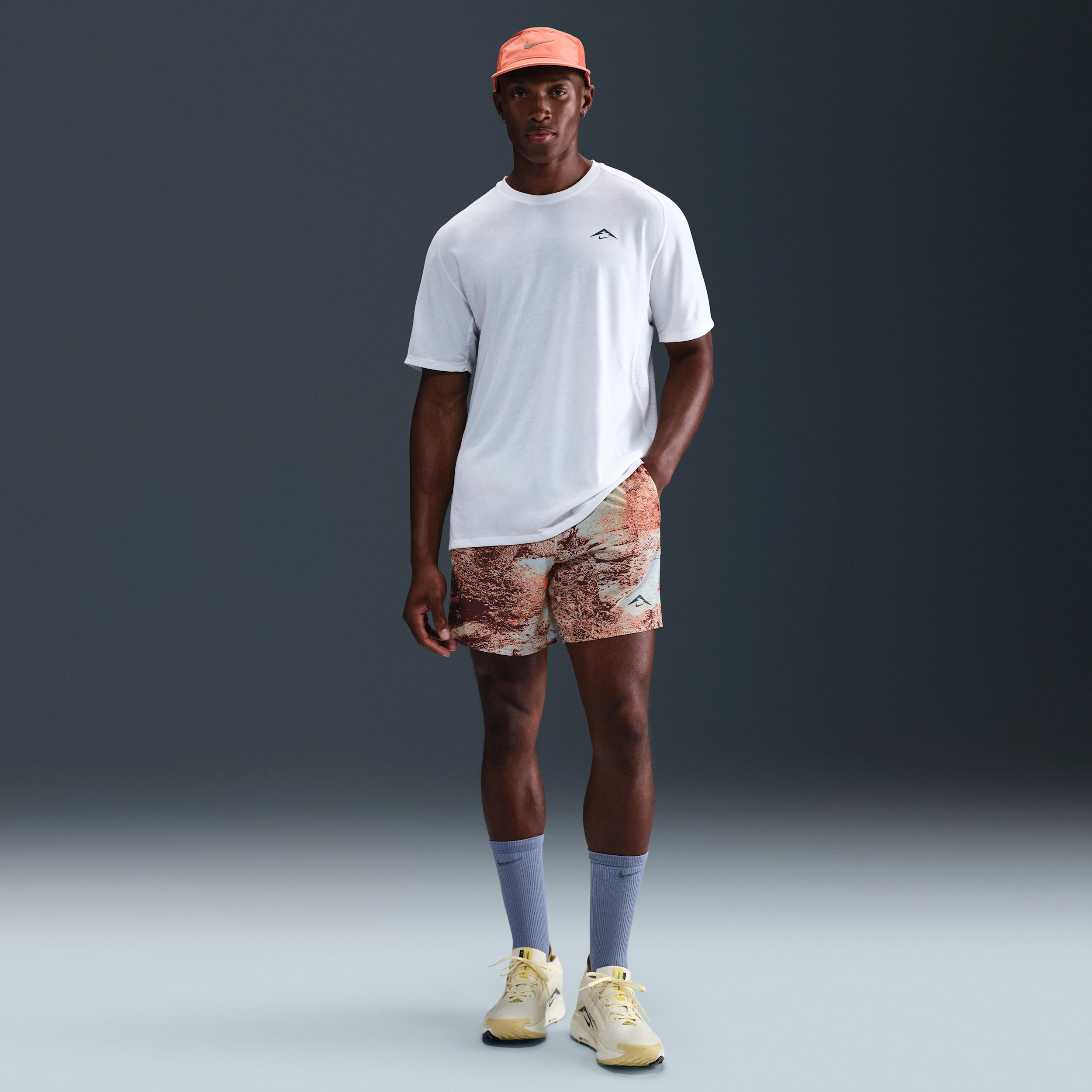 Built to tackle tough terrain, these shorts are made with four-way stretch woven fabric with sweat-wicking Dri-FIT technology. A four-pocket design stashes your necessities, like energy gels or headphones. Benefits:Nike Dri-FIT technology moves sweat away from your skin for quicker evaporation, helping you stay dry and comfortable. Four-way stretch woven fabric moves with you. Two back stash pockets give easy-to-reach storage. Inner brief provides extra support. [] Product Details:Narrow elastic waistband with external braided drawcord. Side vents. Reflective Nike Trail logo. Body:100% polyester. Panel:80% polyester/20% spandex. Lining:92% polyester/8% spandex. Machine wash. Imported. Not intended for use as Personal Protective Equipment (PPE). Style: HV2162; Color: Sail/Black/Black; Size: L; Gender: Male; Age Group: Adult | Nike Trail Men's Dri-FIT 6" Brief-Lined Running Shorts in White, Size: Large | HV2162-133