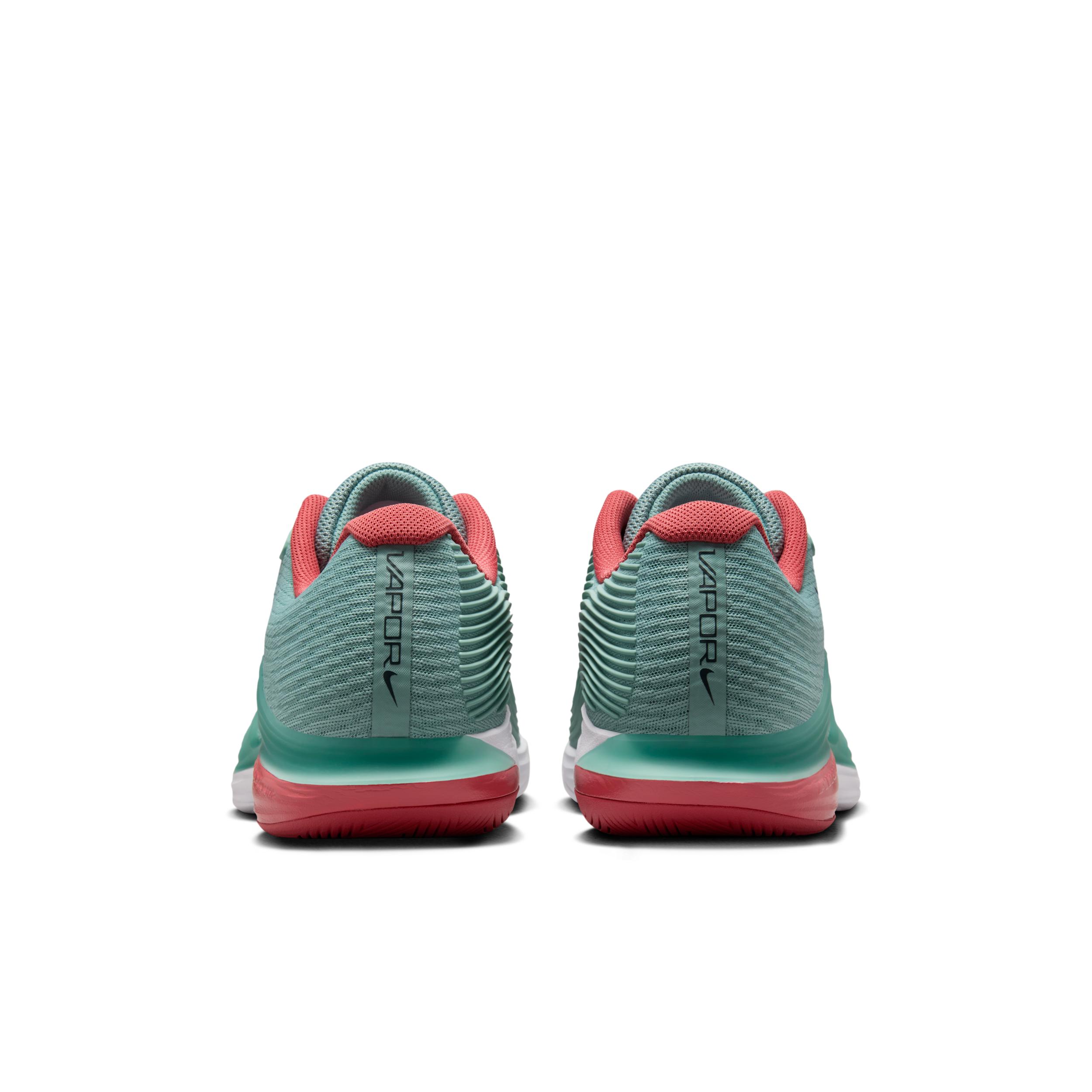 Get to every single ball with blistering speed in the Vapor 12. With a reworked upper and traction pattern, it's lighter and more responsive than the 11. And we brought back Air Zoom cushioning, so you can always be on the attack. Zoom It:A heel Air Zoom unit helps keep you supported and springy throughout your match. Stick and Cut:The herringbone traction pattern is made of our new rubber compound thatâs lighter than Vapors of the past. It allows you to decelerate, plant and back into position without feeling like youâre rounding off your cuts. Lighter Load:We brought back the firm midfoot plastic piece seen on past Vapors to provide optimal stability and transitions when cutting from side to side. The supportive piece also allowed us to remove the rubber in the midfoot, which helps reduce the overall weight of the shoe. Transfer the Power:A firm foot frame wraps around the supportive midfoot plate and spans from heel to toe, giving you more of a secure feel. It helps give you the stability to transfer power during aggressive slides, cuts and pivots. Lightweight Upper:We reduced the weight of the engineered mesh while maintaining durability in high-wear zones by the toe. More Benefits: Full midfoot fit band allows you to pull the laces tighter to enhance the fit and enable faster cuts. Midsole foam in between the plastic and rubber, which wasnât on the Vapor 11, helps keep you light on your feet. Product Details:Designed for wear on hard court surfaces. Cushioned insole. Style: FV5552; Color: Cannon/White/Adobe/Armory Navy; Size: 15; Gender: Male; Age Group: Adult | Nike Vapor 12 Men's Hard Court Tennis Shoes in Green, Size: 15 | FV5552-004