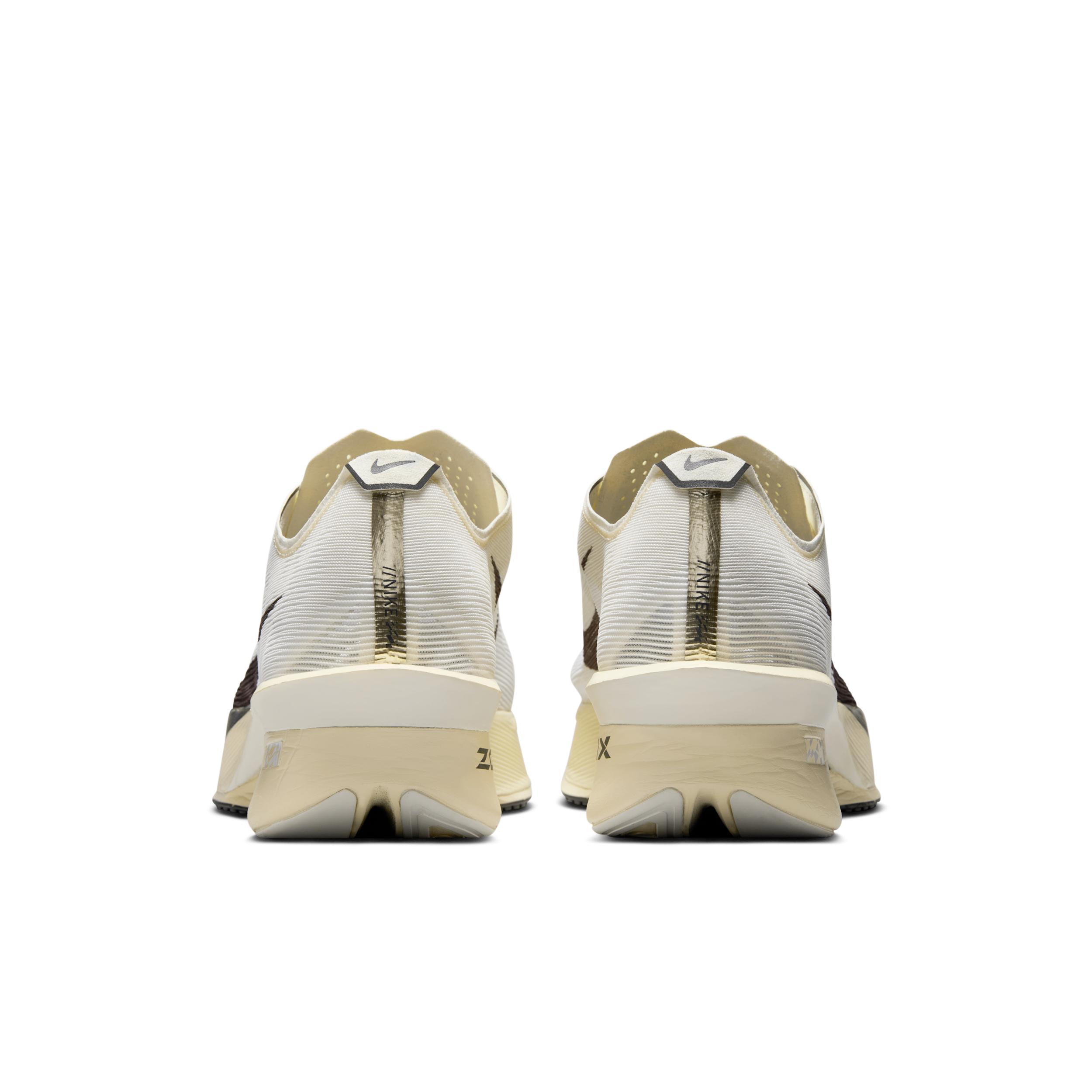 A light, efficient design feels propulsive for all 26.2. Jakob Ingebrigtsenâs subtly brilliant Vaporfly 4 is synonymous with his style and focuses on what matters most: finishing first. We trimmed weight all over from the previous iteration without sacrificing performance. And the carbon fiber Flyplate and ultra-responsive ZoomX foam midsole combine to give you race-day speed. The result is a more fine-tuned racing shoe thatâs trusted by Jakob from the mile to the marathon. Behind the Design:Jakob's favorite colors and repeating lines nod to his mental approach. His tattoos and gold rings inspired details thatâll shine when he goes into high gear. Nordic stars on insoles nod to his homeland. Full Speed:A full-length carbon fiber Flyplate provides a propulsive, racing feel. More Energy Return:Nike ZoomX foam, our most responsive foam, just got faster. Running from heel to toe, it unlocks even more energy return than before thanks to a slight midsole reduction, giving you a bouncy feel. Engineered Mesh:Engineered mesh offers improved comfort and a disappearing feel on your foot. It helps reduce the weight of the shoe while supplying a more consistent fit. Light Feel:See how the midsole bulges out by the heel? We designed it that way to help reduce weight on the inside of the foot to give you a more stable ride. What's New?:Lighter upper, midsole, outsole Higher plate angle Lower heel-to-toe drop Product Details:Weight: Approx. 190g/6.7oz (Men's US 10). Heel-to-toe drop: 6mm. Style: HV6107; Color: Sail/Metallic Gold Grain/Phantom/Medium Ash; Size: 9; Gender: Male; Age Group: Adult | Nike Vaporfly 4 "Jakob Ingebrigtsen" Men's Road Racing Shoes in White, Size: 9 | HV6107-100