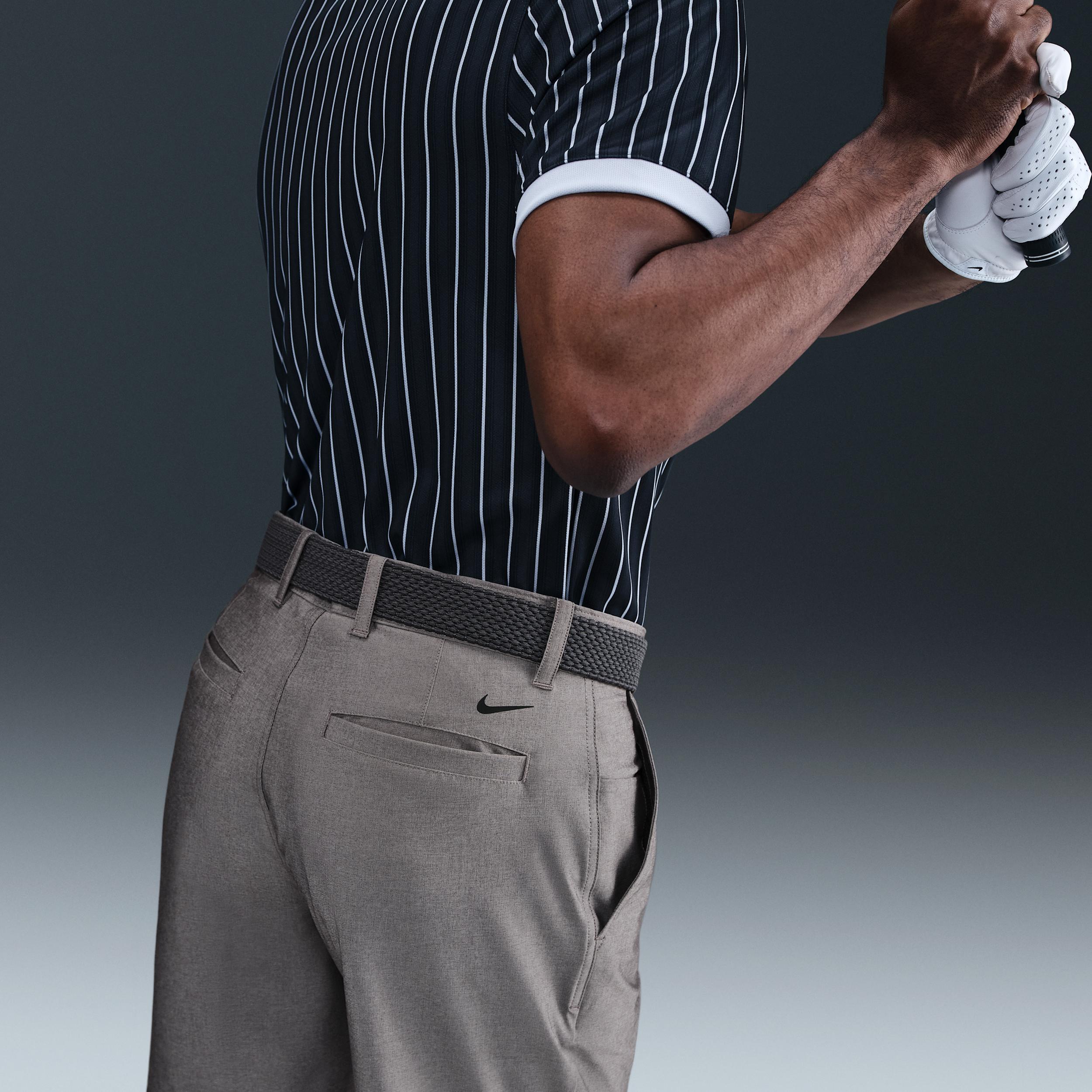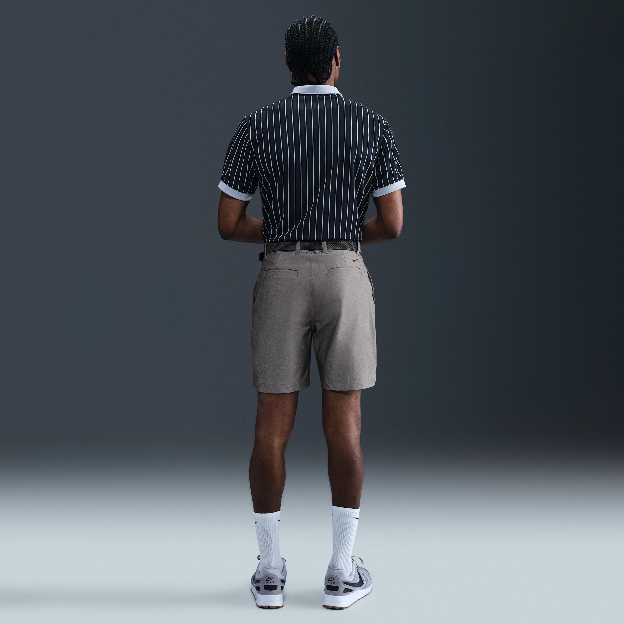 Tailored for golf, the Victory shorts have a versatile fit with smooth, stretchy fabric and a 7" inseam that hits above the knee. Nike Dri-FIT technology moves sweat away from your skin for quicker evaporation, helping you stay dry and comfortable. Side and back pockets hold essentials like tees, extra balls or a scorecard. Benefits:Smooth woven fabric has plenty of stretch to help you move naturally. Elastic waistband provides a secure fit. Silicone inside the waistband helps keep your top from coming untucked. [] Product Details:Front button and zipper closure. Belt loops. Body:89% polyester/11% spandex. Pocket bag:100% polyester. Machine wash. Imported. Style: FZ7444; Color: Night Forest/Light Orewood Brown/Night Forest; Size: 42; Gender: Male; Age Group: Adult | Nike Victory Men's Dri-FIT 7" Golf Shorts in Green, Size: 42 | FZ7444-321