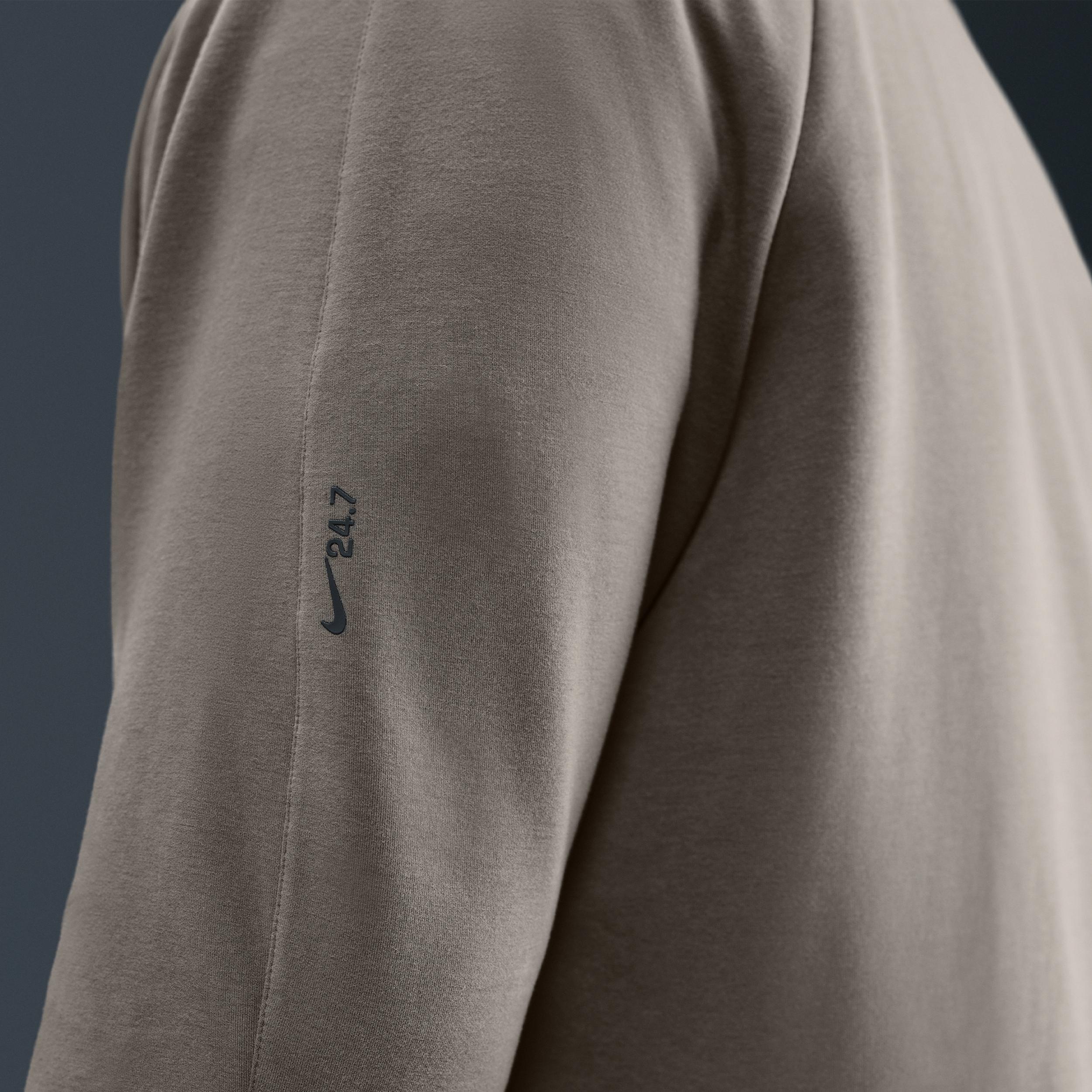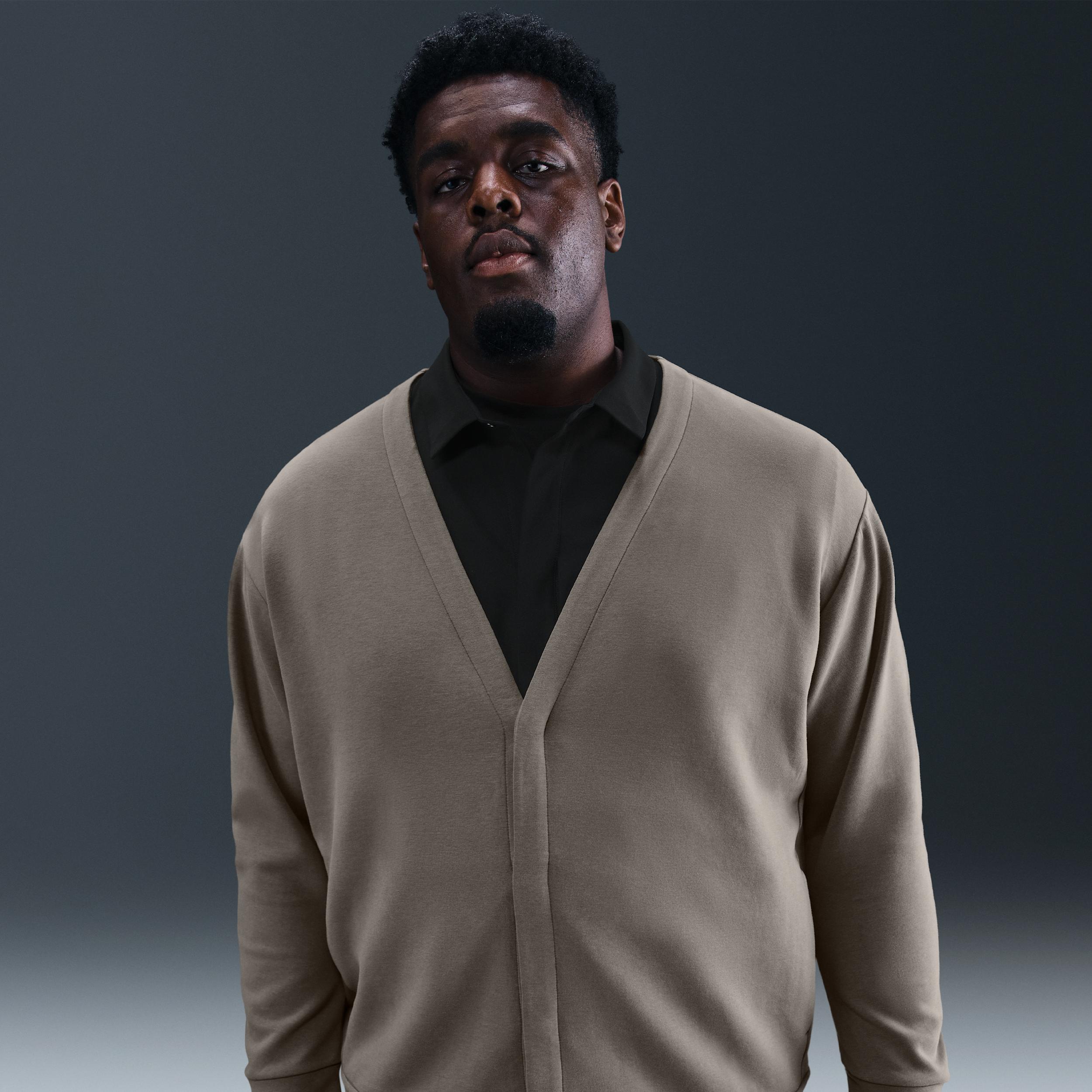 Extraordinarily soft and smooth, our ImpossiblySoft fabric feels made for all-day motion. This premium double-knit cardigan is built with clean lines and sweat-wicking Dri-FIT technology for the ultimate comfort on the go. Benefits:Nike Dri-FIT technology moves sweat away from your skin for quicker evaporation, helping you stay dry and comfortable. Snap-button closures provide easy styling. Zippered front pockets fit your valuables. Product Details:Locker loop on back of neck. Body: 51% polyester/25% modal/15% cotton/9% spandex. Pocket bags: 100% cotton. Machine wash. Imported. Style: HQ6948; Color: Cave Stone/Medium Ash; Size: L; Gender: Male; Age Group: Adult | Nike 24.7 ImpossiblySoft Men's Cardigan in Grey, Size: Large | HQ6948-289
