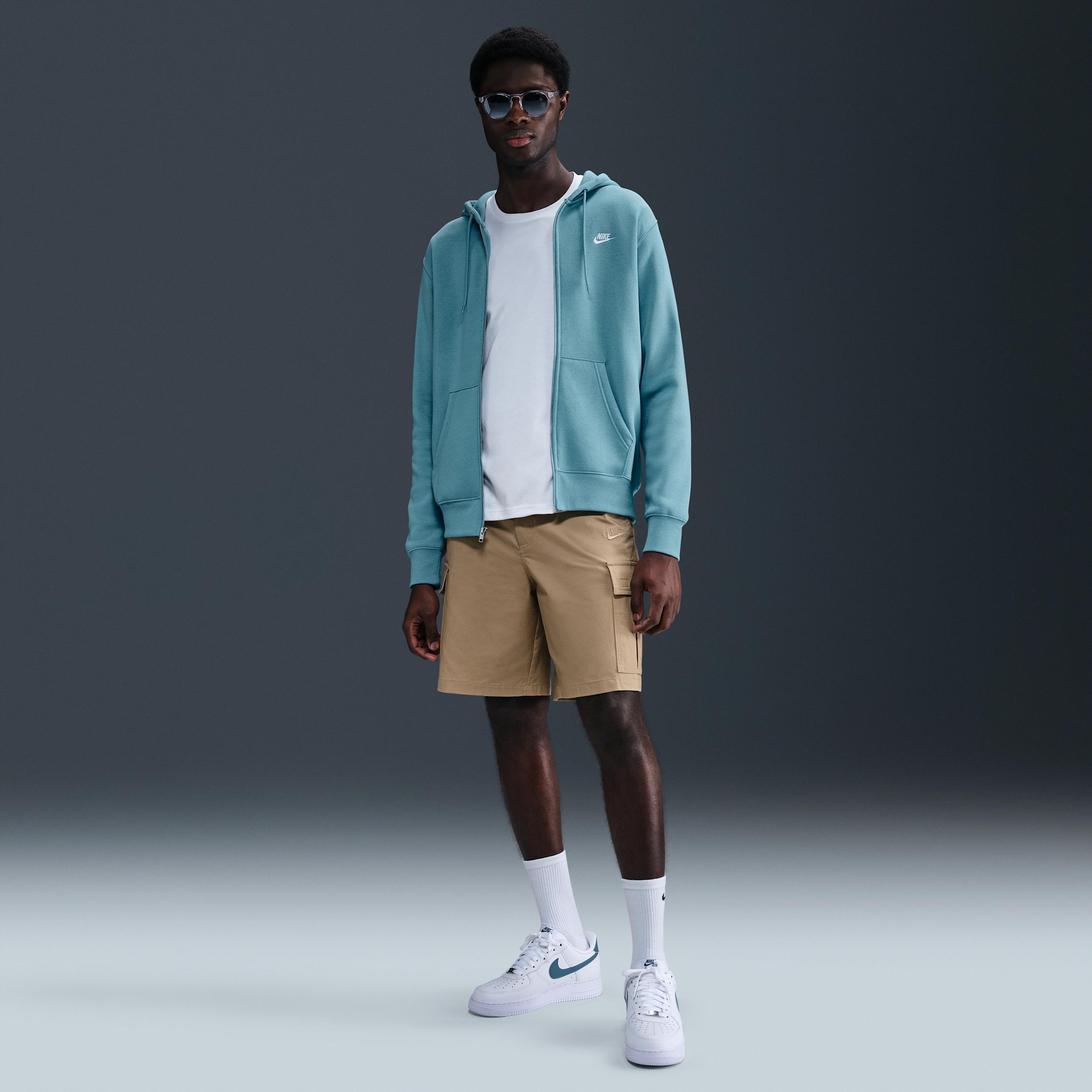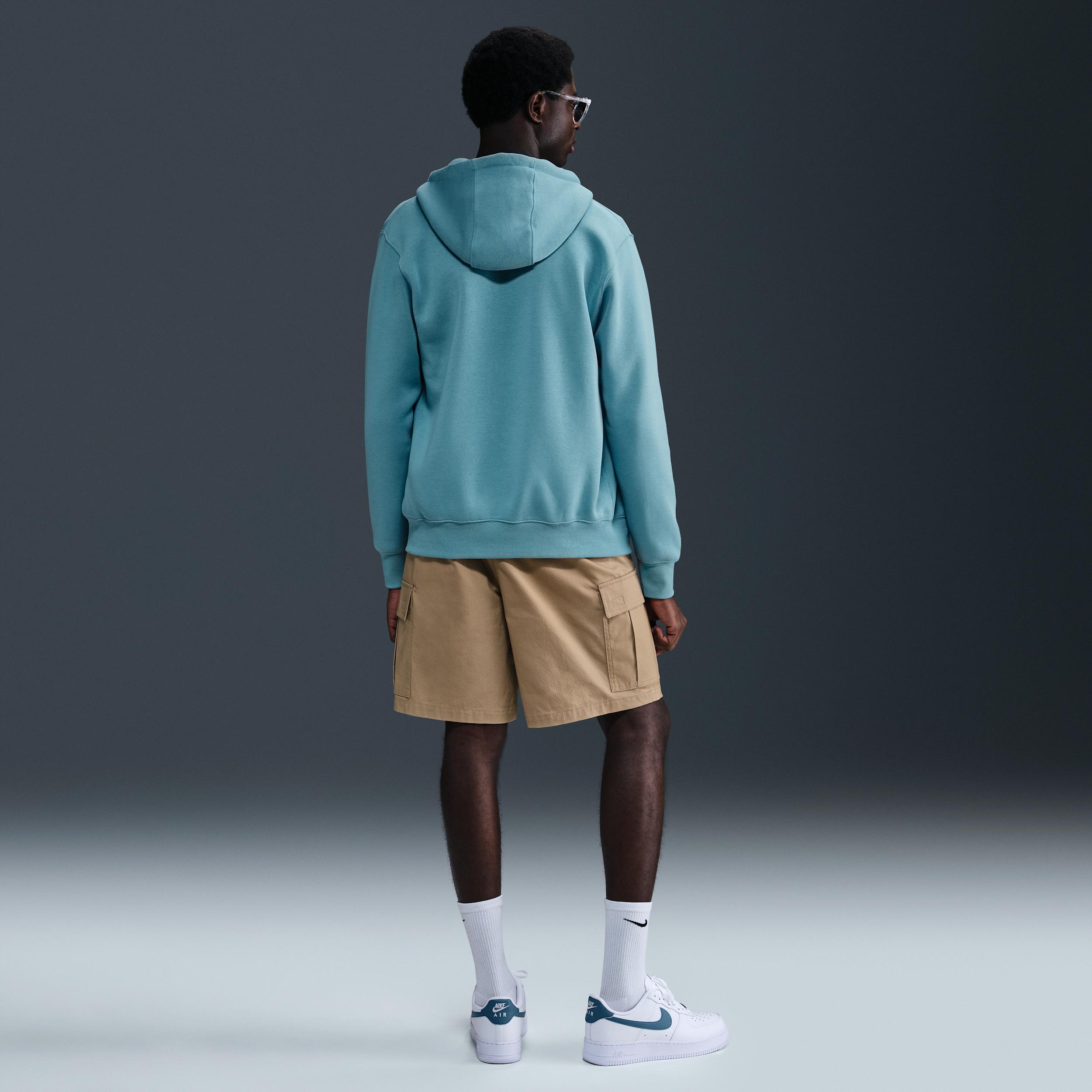 Size & Fit Standard fit is athletic and relaxed Product Features Full-zip design with a drawcord-adjustable, double-layered hood for versatile styling and coverage Midweight brushed fleece feels extra soft on the inside and smooth on the outside Embroidered Nike Futura logo at the left chest delivers classic heritage style Round braided drawcords and hardware eyelets on the hood equip a premium vibe Large divided pouch pocket provides space to stash on-the-go essentials and shelter for cold hands Ribbed sleeve cuffs and hem streamline the fit and seal out the elements 67-81% cotton, 19-33% polyester. Check label for actual percentages Machine wash The Nike Club Fleece Embroidered Premium Full-Zip Hoodie is imported. Crisp, clean sportswear style links up with unbeatable comfort on the Men's Nike Club Fleece Embroidered Premium Full-Zip Hoodie. Super-soft midweight blended Club Fleece fabric with minor tweaks like a braided drawcord and hardware eyelets evolves and elevates the fan-favorite Club Fleece hoodie to new heights, proving to be the ultimate everyday hoodie you can throw on in a pinch to guarantee timeless good looks while staying cozy and comfortable. Size: Medium. Color: Blue. Gender: male. Age Group: adult. Pattern: Embroidered/Check. Material: Cotton/Polyester/Fleece. Nike Men's Club Fleece Embroidered Premium Full-Zip Hoodie in Blue/Denim Turquoise Size Medium Cotton/Polyester/Fleece