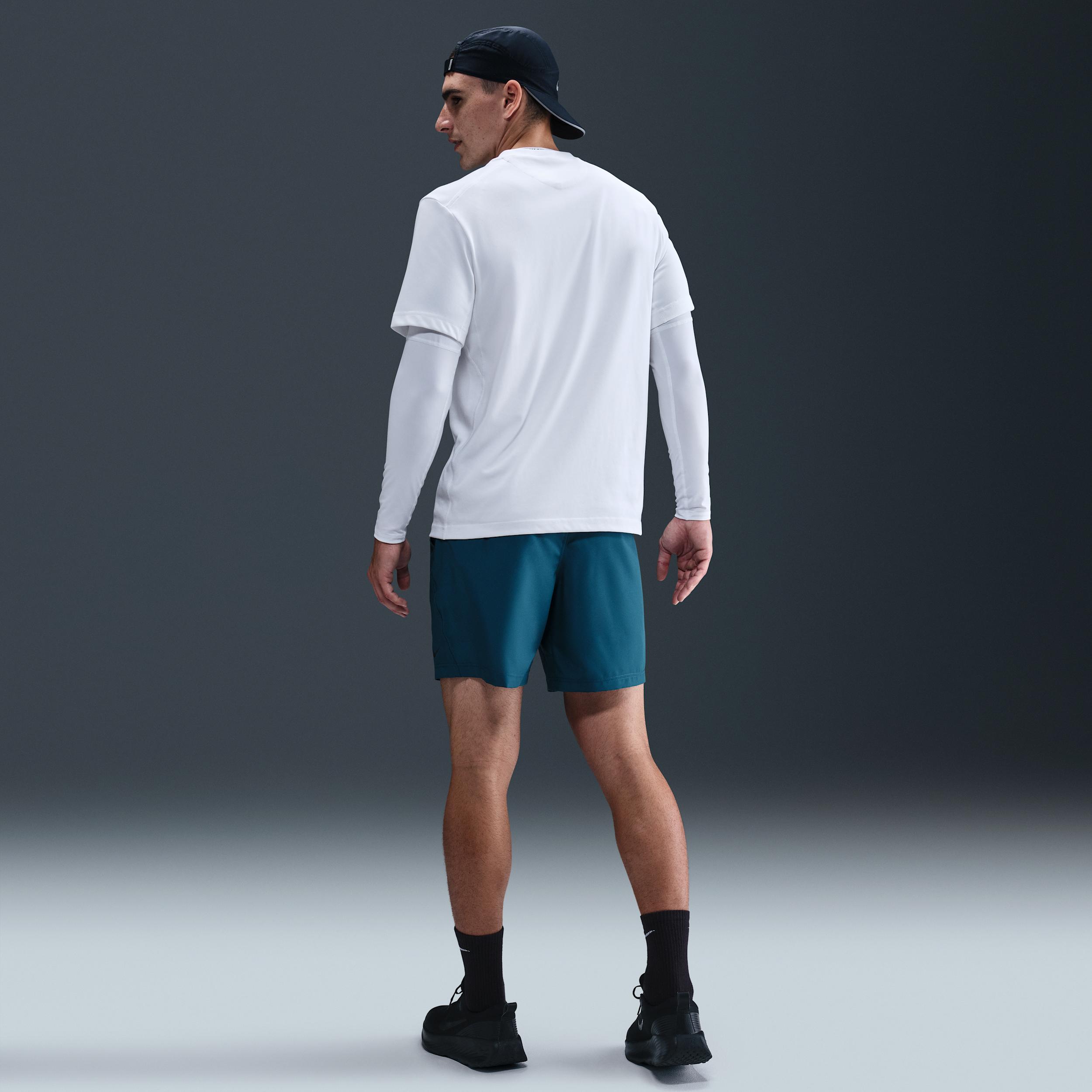Designed for running, training and yoga, these versatile shorts are built to handle those days when you need to shake up your exercise routine. Our sweat-wicking Form Shorts offer a smooth feel and minimal fit made to keep up with your moves, from tough dead lifts to sweaty hot yoga classes. Quick-Dry Support:Nike Dri-FIT technology moves sweat away from your skin for quicker evaporation, helping you stay dry and comfortable. Move with Confidence:Woven fabric feels smooth and lightweight, plus an exaggerated gusset helps you get the most out of your leg movement. A low-profile waistband lays flat against the skin. Safe Storage:Side pockets help keep small items like keys and cards secure. More Benefits: Designed for Running, Yoga and Training. Length: 7". Liner: Unlined. Fabric: Lightweight woven. Storage: Side pockets. Waistband: Low profile with drawcord Product Details:100% polyester. Machine wash. Imported. Style: DV9857; Color: Blue Force/Black; Size: XL; Gender: Male; Age Group: Adult | Nike Form Men's Dri-FIT 7" Unlined Versatile Shorts in Blue, Size: XL | DV9857-415