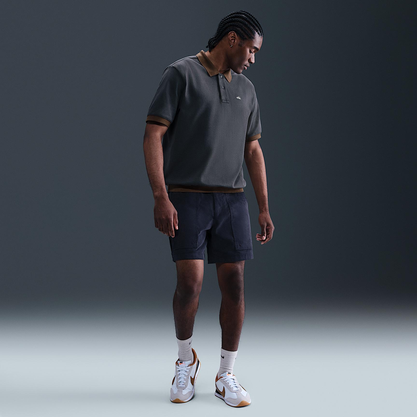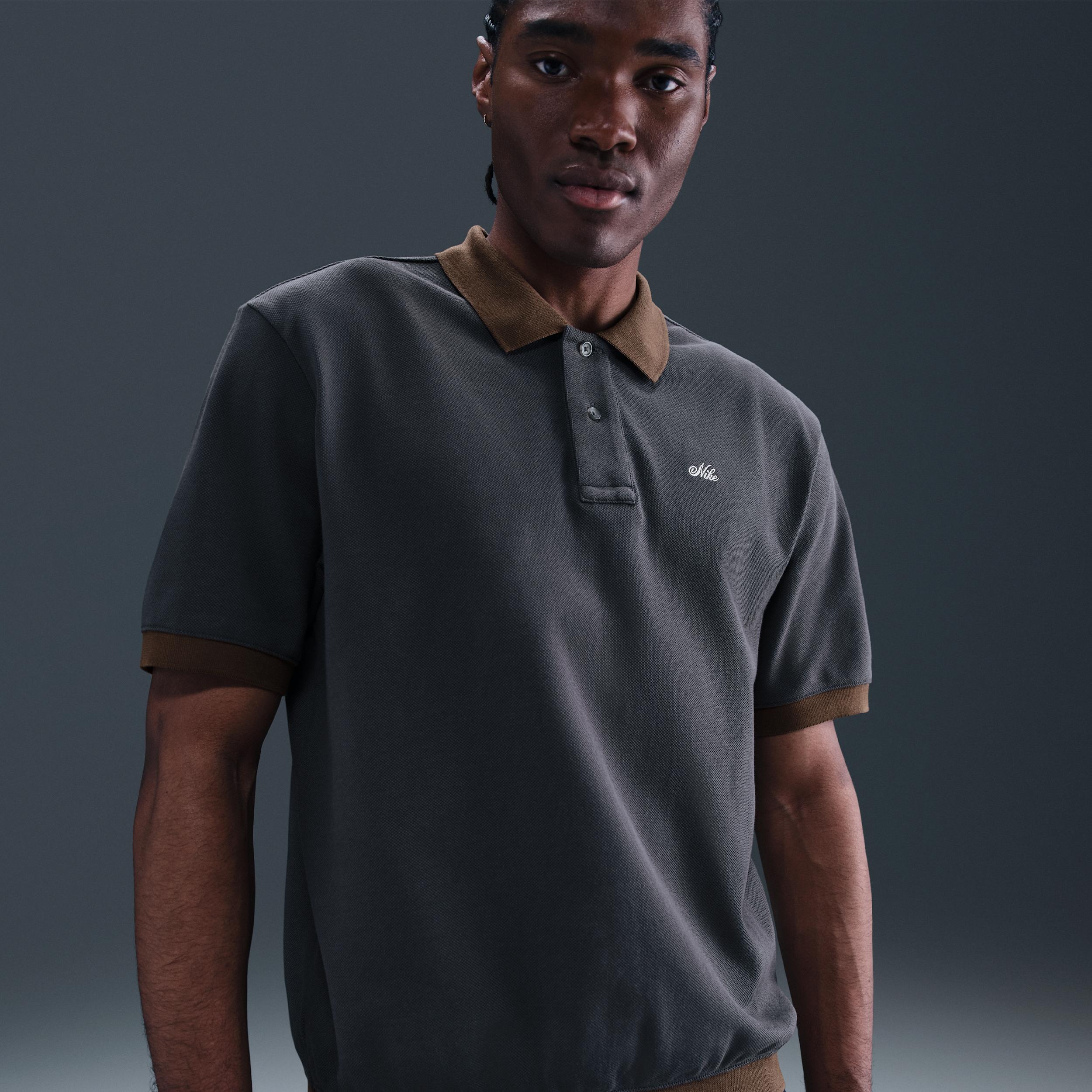 Everyday style, done the Nike Life way. This polo is crafted with a heavyweight pique fabric and ribbed openings for a structured look and feel. The oversized fit is extra roomy through the body. [] Product Details:Embroidered Nike script logo. Body:100% cotton. Rib:100% cotton. Machine wash. Imported. Style: HV0884; Color: Anthracite/Baroque Brown/Light Khaki; Size: S; Gender: Male; Age Group: Adult | Nike Life Men's Heavyweight Polo in Grey, Size: Small | HV0884-060