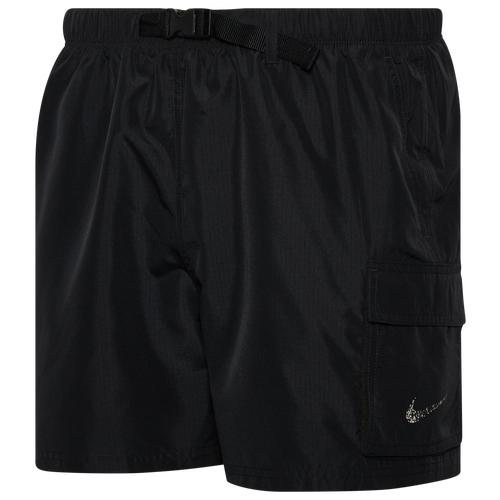 Planning your next water adventure? Weve got the perfect shorts. A stretchy waistband with an exposed webbing belt works together with a full mesh lining to help keep you comfortable and supported no matter where youre exploring. Pockets designed for water drainage mean you can keep all your necessities close. A packable zipper pocket allows you to easily toss these in your carry on. Go ahead, book that trip. Benefits:Built-in mesh brief helps provide optimal comfort and support. Elastic waistband with exposed webbing belt helps provide a comfortable and adjustable fit. Product Details:100% recycled polyester. Machine wash. Imported. Style: NESSE469; Color: Black; Size: 2XL; Gender: Male; Age Group: Adult | Nike Swim Voyage Mens 5 Volley Shorts in Black, Size: 2XL | NESSE469-001