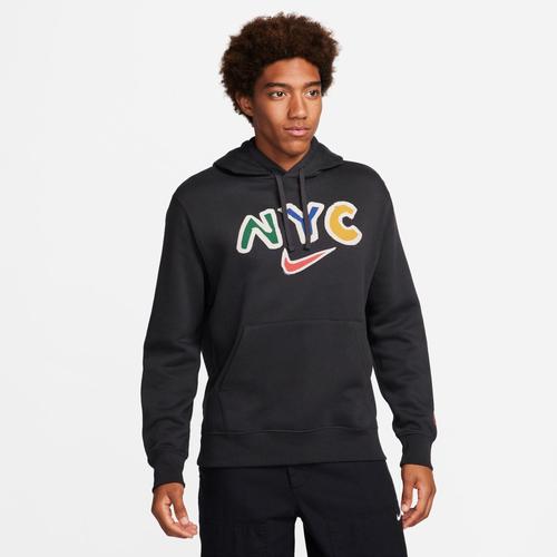Rep your favorite city in colorful comfort with this classic-fit hoodie. Midweight brushed fleece feels extra soft on the inside and smooth on the outside, helping you stay cozy while keeping its structured shape. Plus, a roomy front pocket and 3-panel hood offer easy comfort. Product Details: Kangaroo pocket. Ribbed cuffs and hem. Hood with flat drawcord. Printed graphics. Body: 80% cotton/20% polyester. Hood lining: 100% cotton. Machine wash. Imported. Style: FZ2863; Color: Off Noir/Off Noir; Size: 3XL; Gender: Male; Age Group: Adult | Nike Sportswear Club Fleece Men's Pullover Graphic Hoodie in Black, Size: 3XL | FZ2863-045