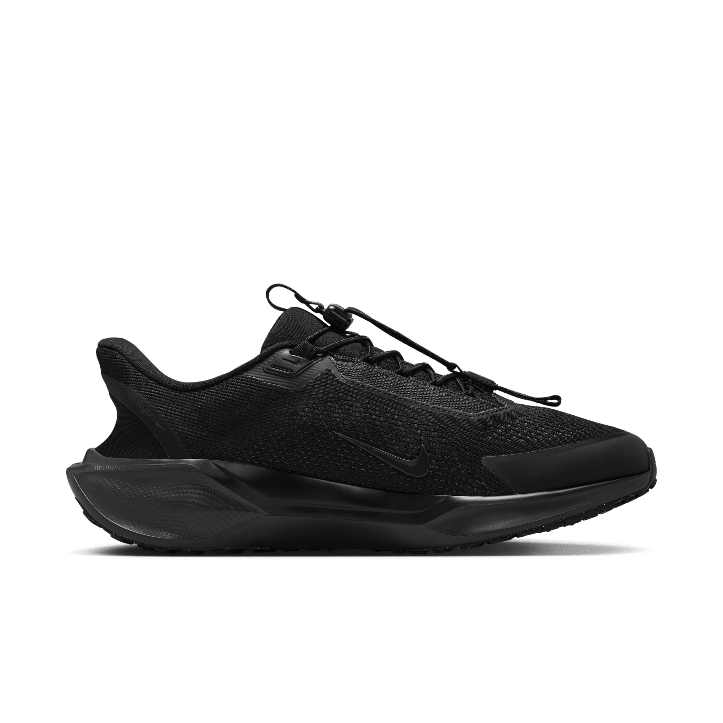 Responsive cushioning in the Pegasus provides an energized ride for everyday road running. Experience lighter-weight energy return with dual Air Zoom units and a ReactX foam midsole. Plus, improved engineered mesh on the upper decreases weight and increases breathability. Key Features:Engineered toggle gives you an adjustable fit Upgraded breathable engineered mesh upper ReactX foam midsole surrounds forefoot and heel Air Zoom units for an energized ride. Signature waffle-inspired rubber outsole for traction and flexibility. Plush collar tongue and sockliner for a secure and comfortable fit. What's new? All-new ReactX foam midsole is 13% more responsive than previous React technology. Crafted for performance and planet, ReactX foam is engineered to reduce its carbon footprint by at least 43% in a pair of midsoles due to reduced manufacturing process energy compared to prior React foam. The carbon footprint of ReactX is based on cradle-to-gate assessment reviewed by PRé Sustainability B.V and Intertek China. Other midsole components such as airbags, plates or other foam formulations were not considered. Product Details:Weight: Approx. 312g/ 11.0 oz (Men's US 10). Heel-to-toe drop: 10mm. Style: FQ7837; Color: Black/White/Anthracite; Size: 10; Gender: Male; Age Group: Adult | Nike Pegasus EasyOn Men's Road Running Shoes in Black, Size: 10 | FQ7837-001