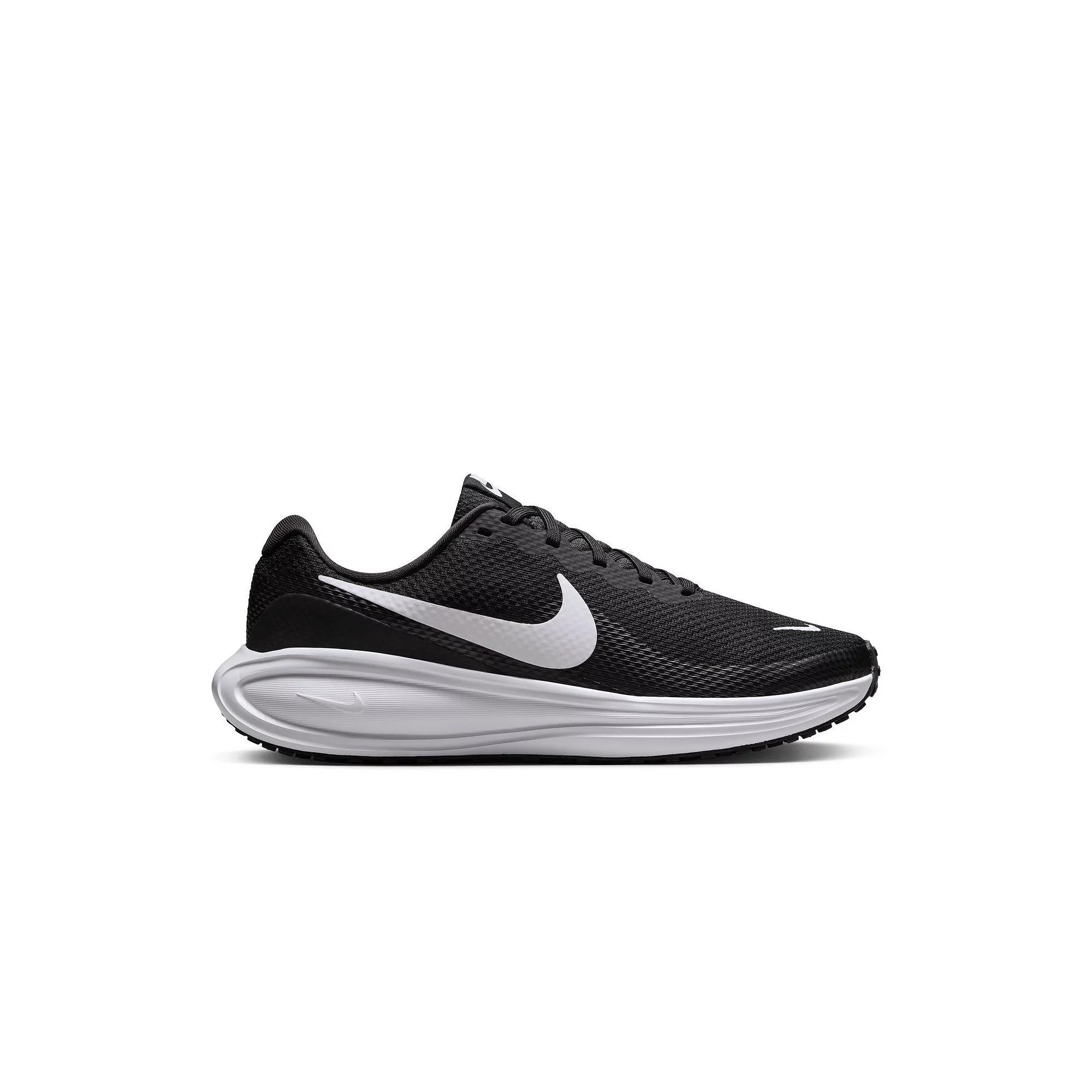 The Revolution 8 is an evolution of your faithful favorite. Every stride is cushioned thanks to a foam midsole and a flexible forefoot that makes your steps soft. Plus, the mesh upper is even more breathable than the previous iteration, so you can run in cool, collected comfort. Mesh Upper:The mesh upper offers a comfortable, breathable feel. Foam Midsole:The foam midsole delivers intuitive cushioning through comfort-focused rocker geometry. Cushioned Outsole:The outsole has an intuitive Nike design and flex grooves in the forefoot that create a comfortable and cushioned effect as you run. Touch Points:Touch points at the heel and tongue create a natural feel as you take the shoes on and off. What's New?:Mesh on upper is more breathable than the Revolution 7, helping keep you cool. Product Details:Weight: Approx. 236g/8.3oz (Women's US 8). Heel-to-toe drop: 10mm. Style: HQ1995; Color: Black/Black/White; Size: 11; Gender: Female; Age Group: Adult | Nike Revolution 8 Women's Road Running Shoes (Extra Wide) in Black, Size: 11 | HQ1995-002