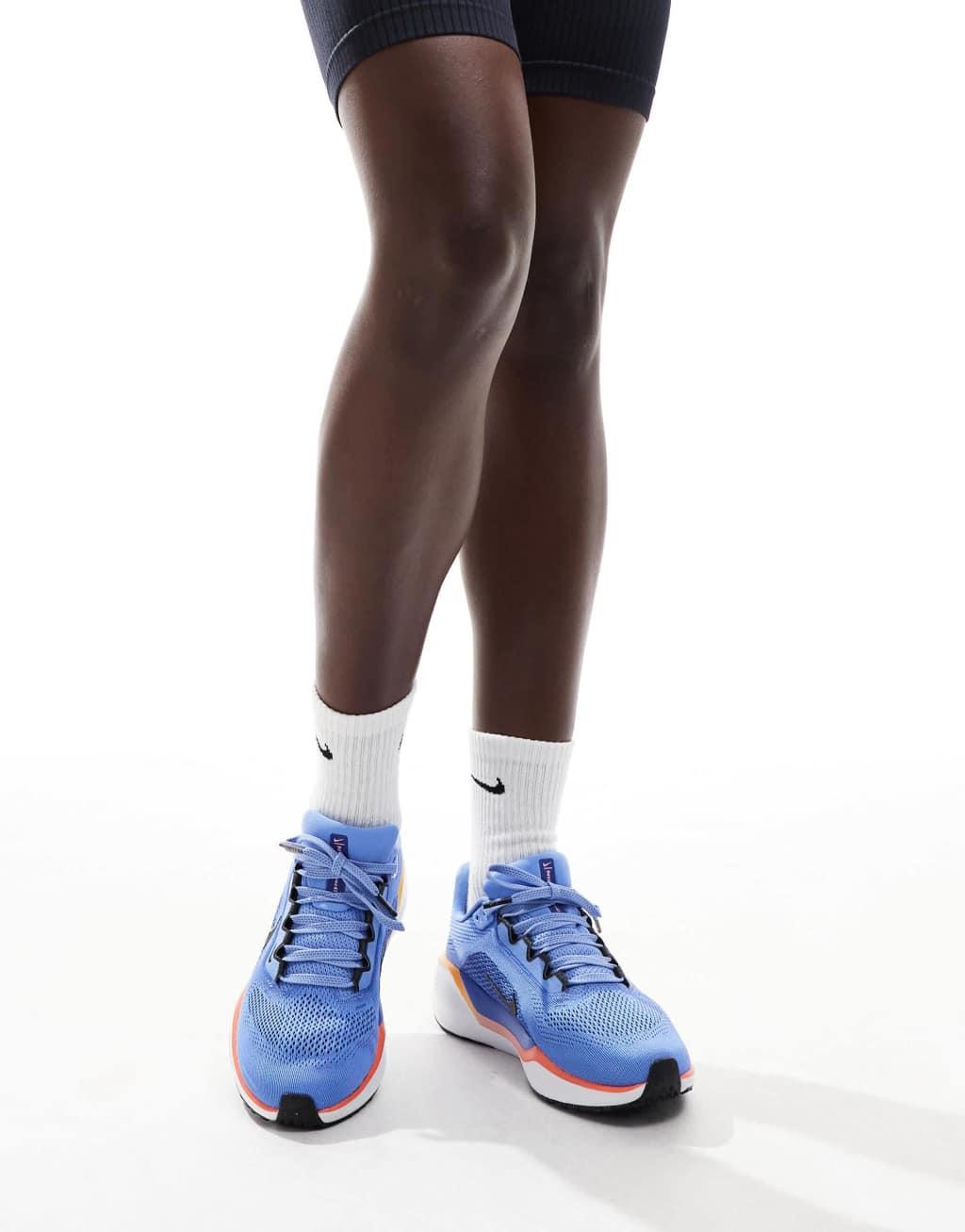 Shoes by Nike Running In sport mode Low-profile design Lace-up fastening Padded tongue and cuff Signature Nike branding ReactX foam midsole and Zoom Air units provide ultra-responsive, springy cushioning Durable rubber outsole Textured grip tread
