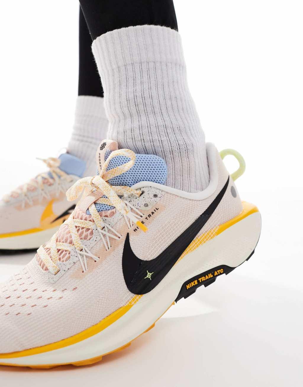 Shoes by Nike Running Suitable for trail running Low-profile design Pull tab for easy entry Lace-up fastening Padded tongue and cuff Signature Nike branding Reflective details for increased visibility in low lighting ReactX foam midsole and Zoom Air unit provide ultra-responsive, springy cushioning Durable rubber outsole Shockwave-like pattern tread
