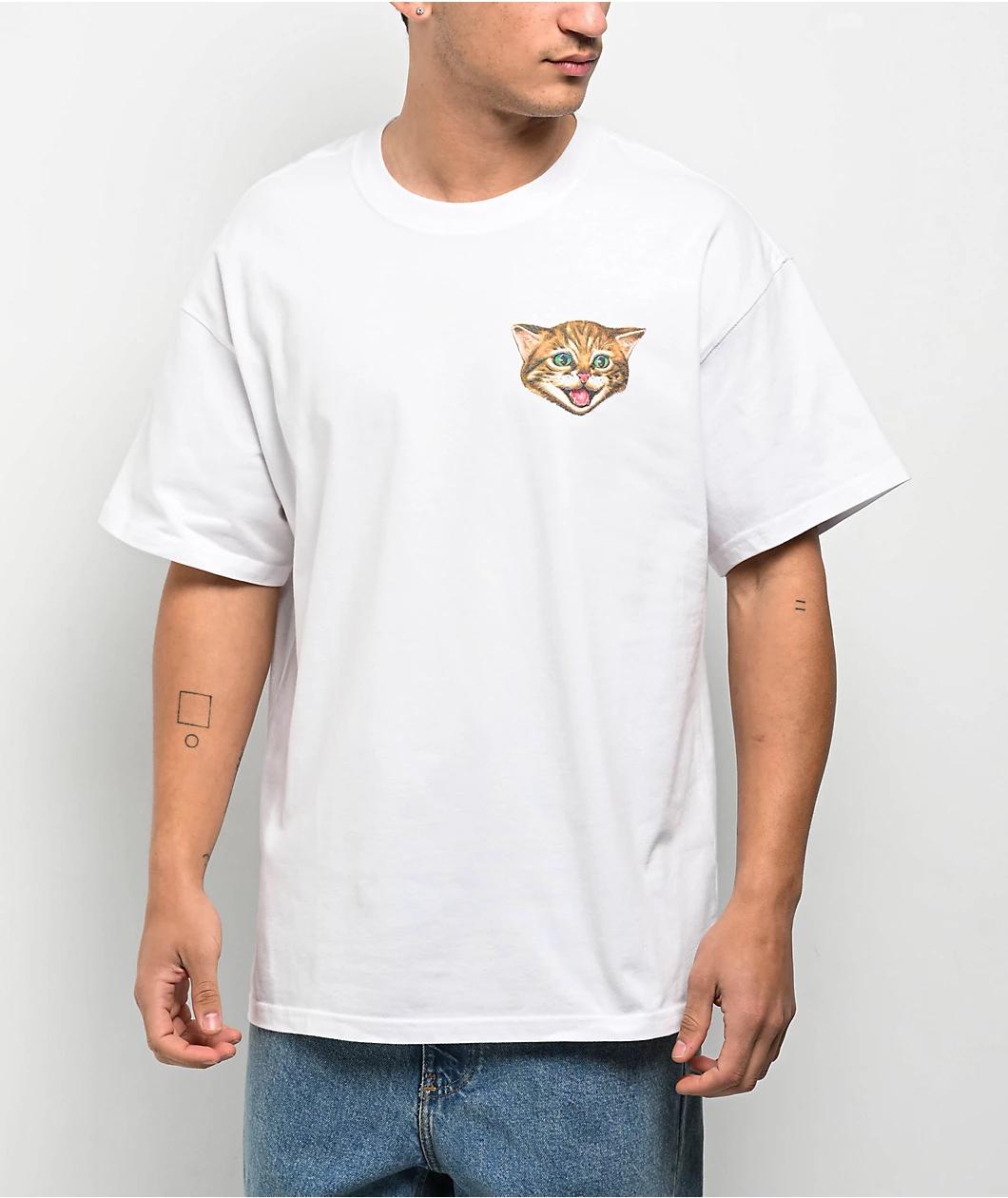 Delivered by Nike SB in a clean white 100% cotton construction, the Cat Scratch t-shirt features printed graphics on the left chest and back. Adding a sweet kitty accent to any outfit, the left chest showcases an illustrated portrait of a tabby kitte