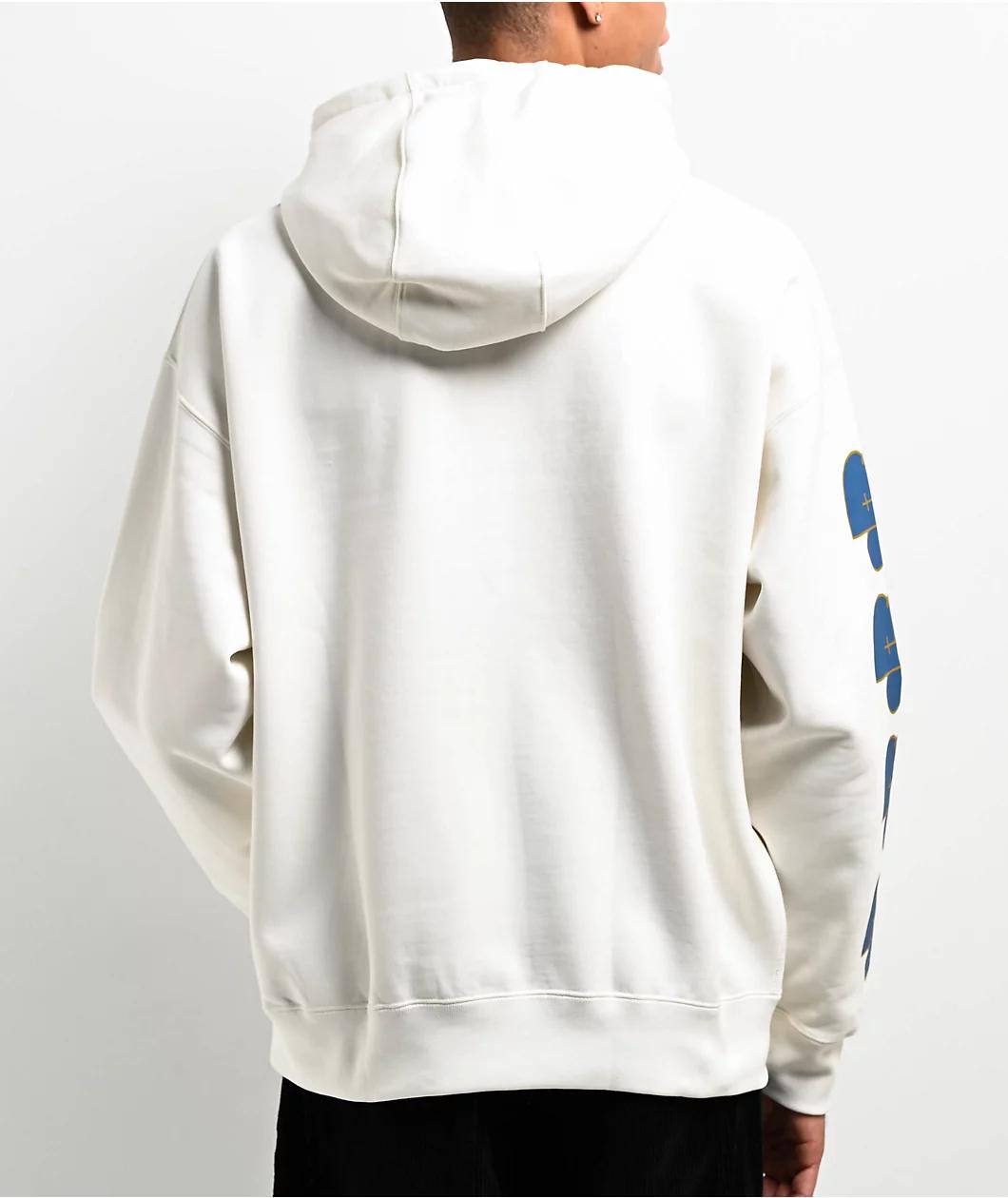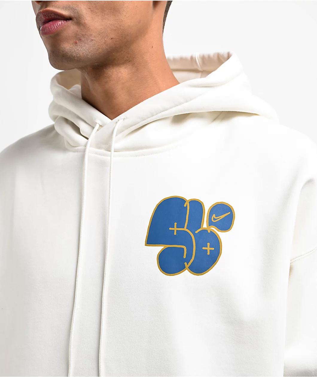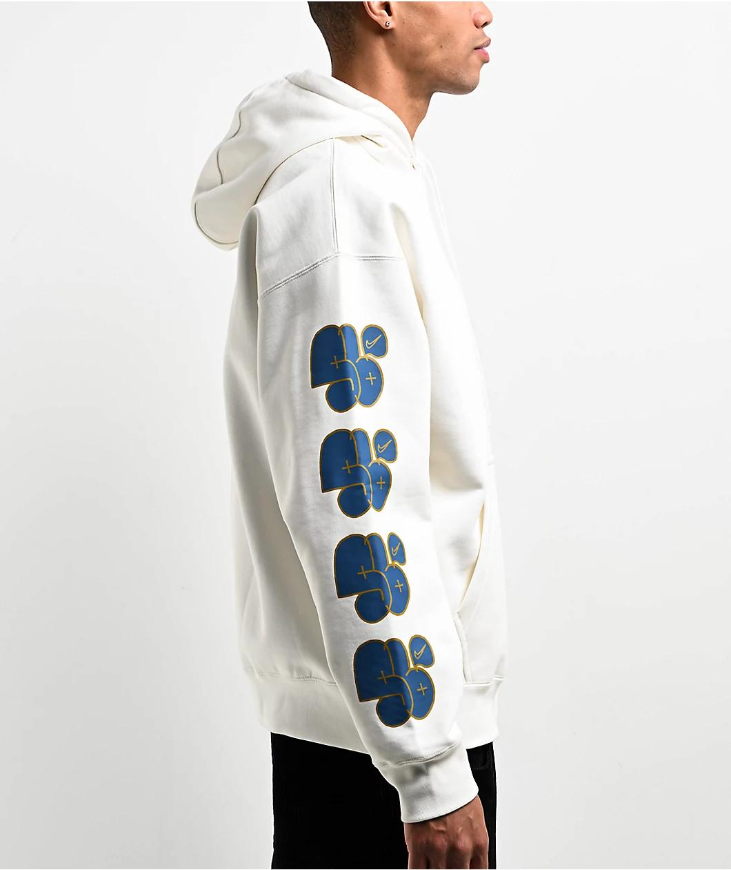 Offered in a calming "Sail" colorway, this Nike SB hoodie features a bold Graffiti design on the chest and left sleeve - lending yellow and blue tones. Made using a heavyweight cotton blend with a brushed fleece backing, the loose pullover comes fini