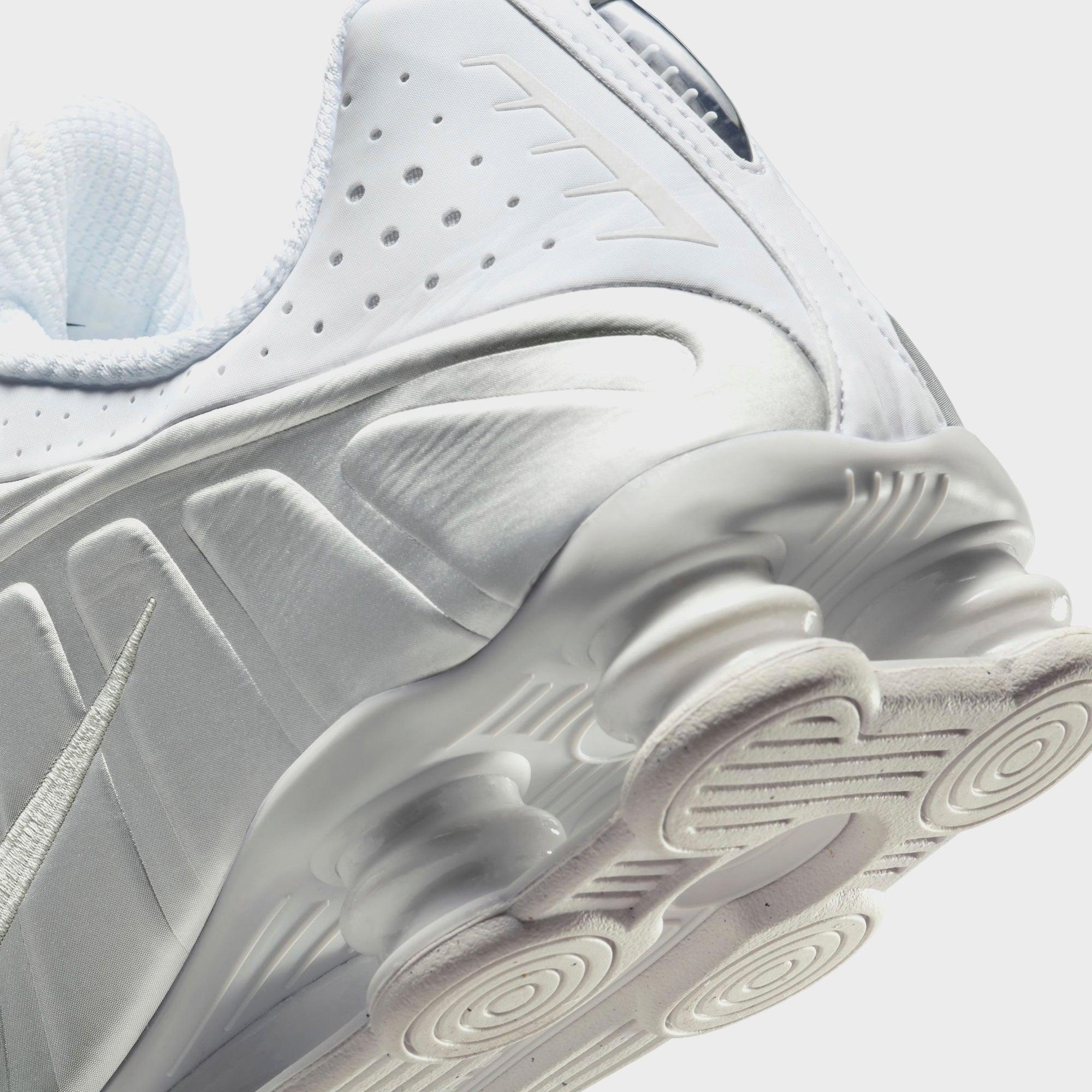 Shox R4 silhouette Leather upper Mesh liner Perforated details Embossed side panel details Embroidered Swoosh on side panels 3M hits on the toe and heel Shox R4 technology Rubber outsole Style: nkhq1988-101 Color: White / Metallic Silver / White / Bright Crimson Material: Leather / Mesh
