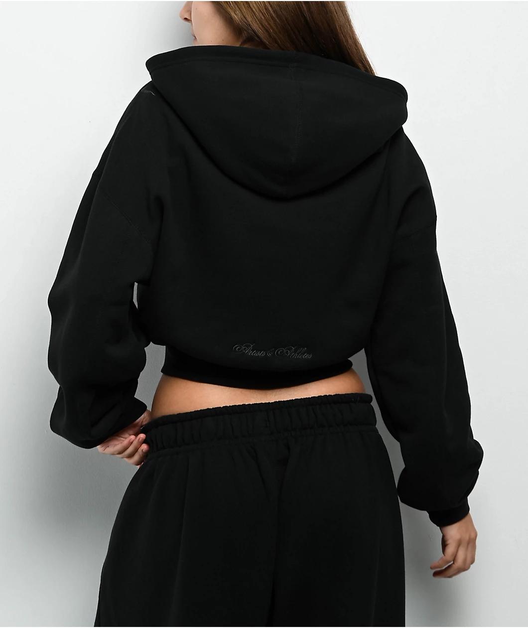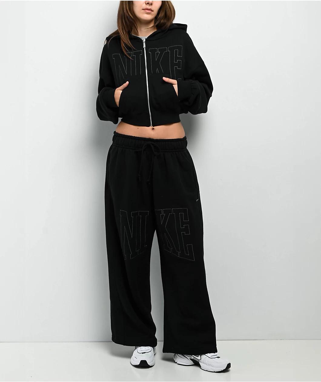Presented by Nike Sportswear in a black French terry construction, the Street hoodie features a full zip closure and a cropped bottom hem. Lending a sporty, coquette vibe, the 100% cotton sweatshirt displays bold collegiate-style branding on the fron