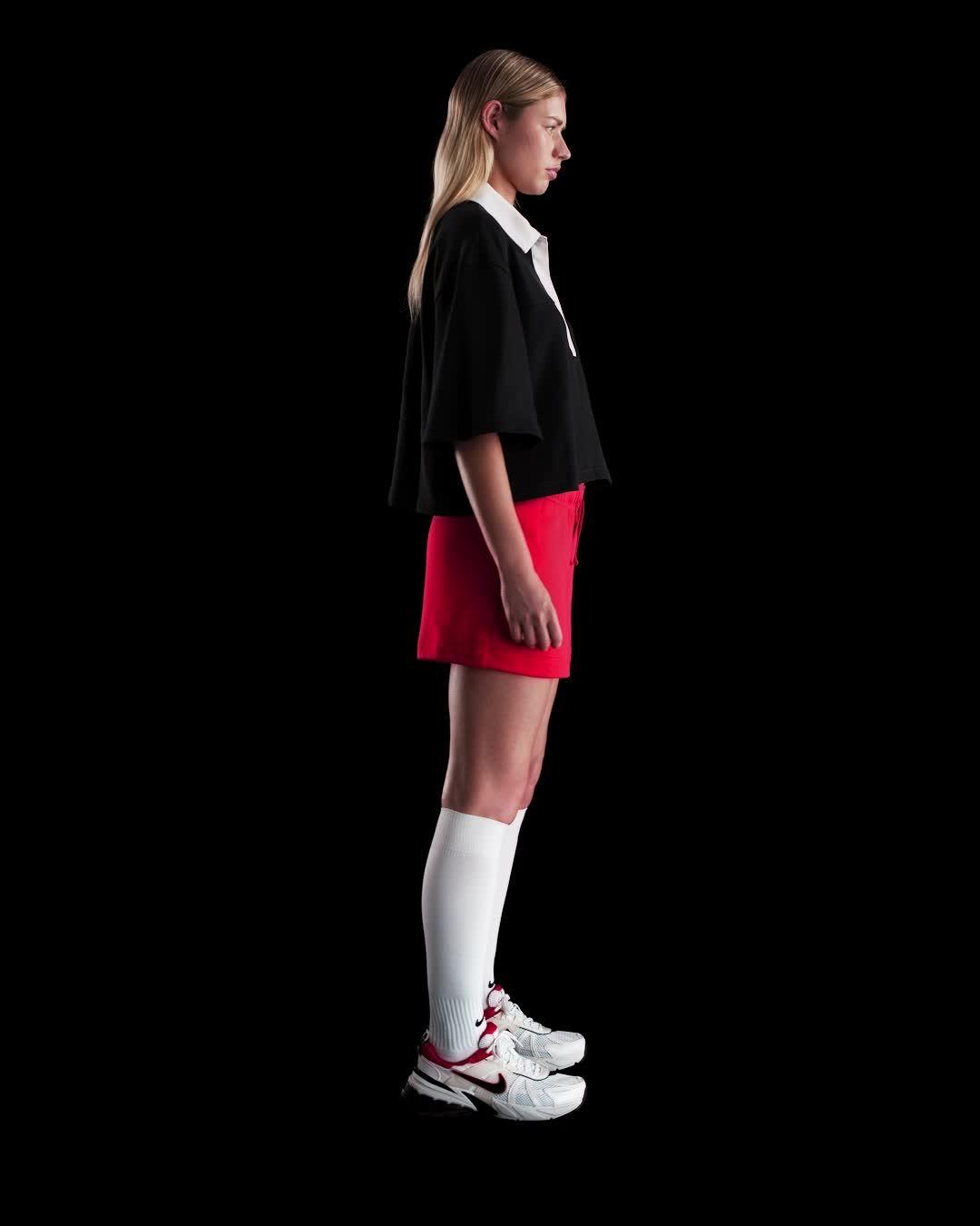 Heavyweight cotton blend gives this polo a structured feel. Elongated sleeves emphasize the already oversized fit. [] Product Details:62% cotton/38% polyester. Hidden snaps on placket. Cropped length. Embroidered Swoosh logo on left chest. Machine wash. Imported. Style: IB2153; Color: Black/Black/White/White; Size: S; Gender: Female; Age Group: Adult | Nike Sportswear Women's Oversized Short-Sleeve Polo Top in Black, Size: Small | IB2153-010