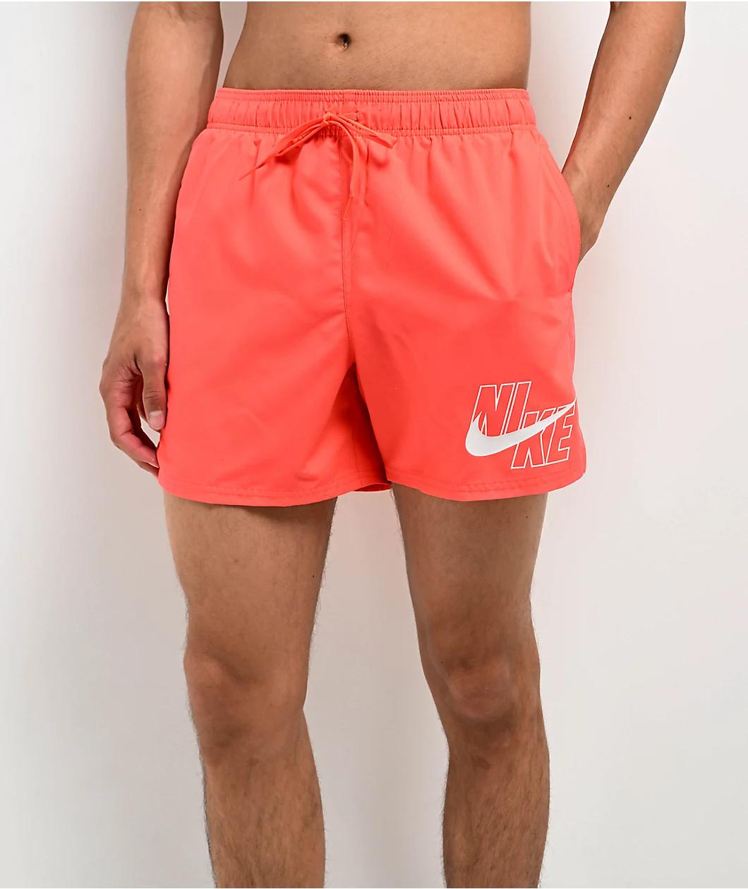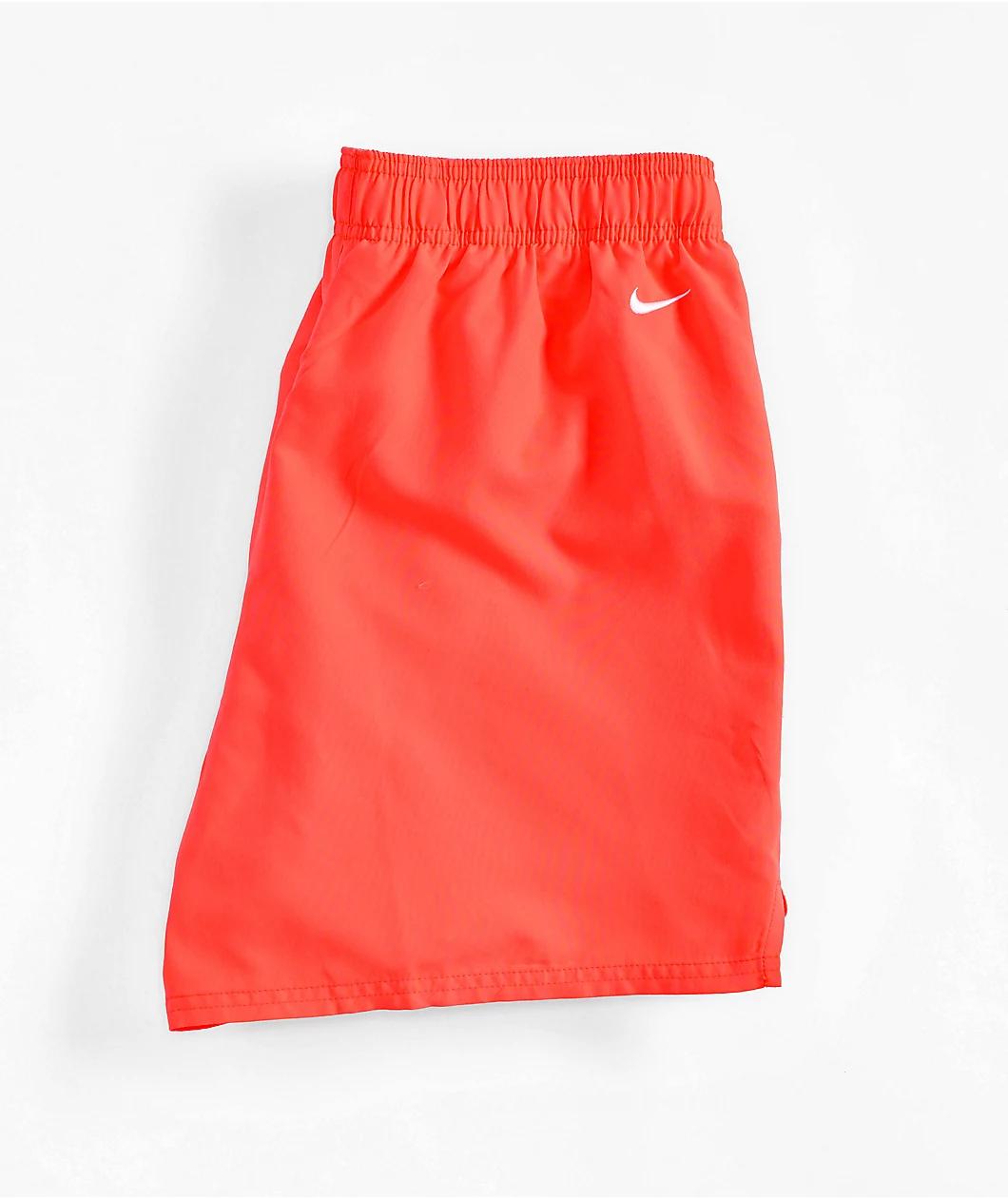 Nike Swim presents the Volley board shorts in a bright "Pastel" red colorway featuring screen-printed branding on the left leg. Built from 100% recycled polyester, the mesh-lined shorts feature a miniature mesh pocket attached to the interior of the