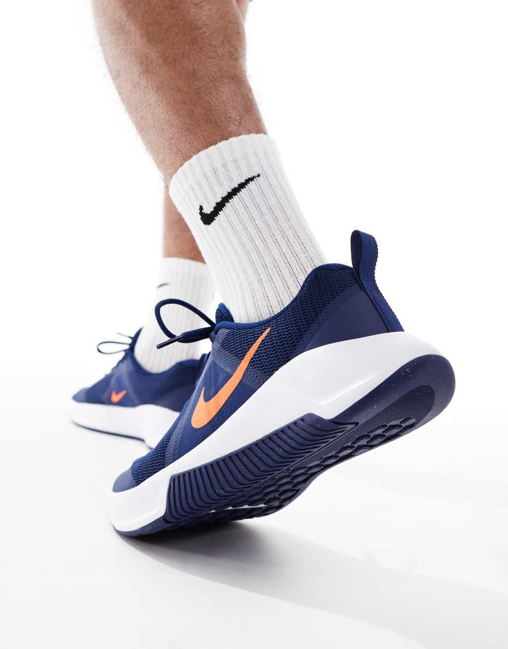 Sneakers by Nike Training In sport mode Suitable for helping you transition from heavy lifting in the weight room to agility drills on the turf Low-profile design Adhesive fastening Padded tongue and cuff Signature Nike branding Support wraps from the heel up to the laces for a snug fit Foam midsole provides lightweight cushioning Durable rubber outsole Textured grip tread