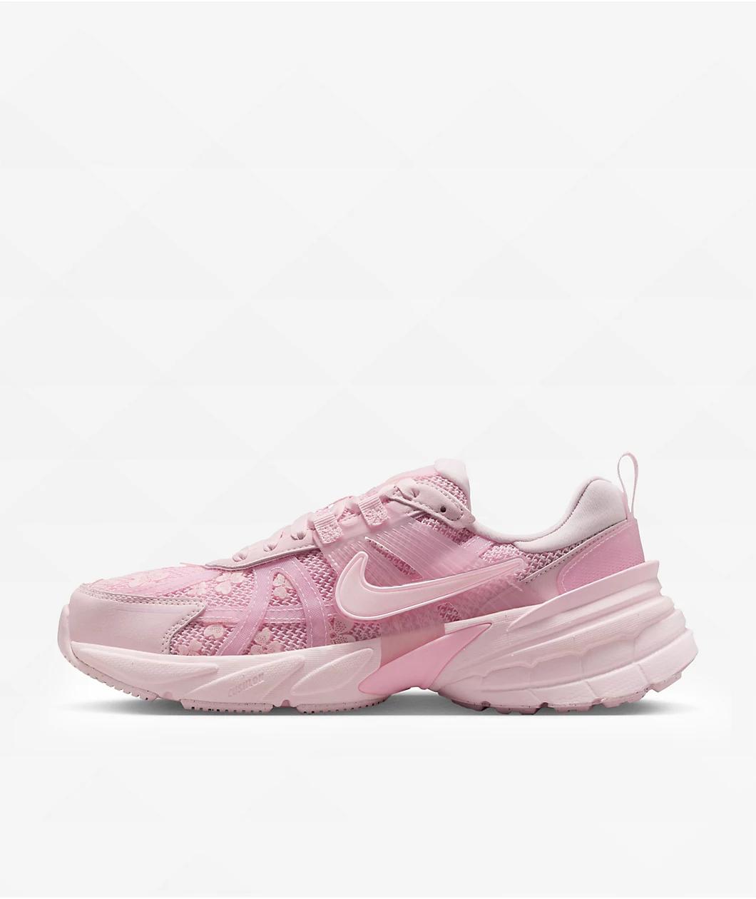 Enjoy a springtime feel any month of the year with the V2K Run shoes from Nike, arriving in a pink foam & arctic pink colorway with cherry blossom graphics throughout. Printed Sakura blooms cover the breathable mesh upper, which additionally features
