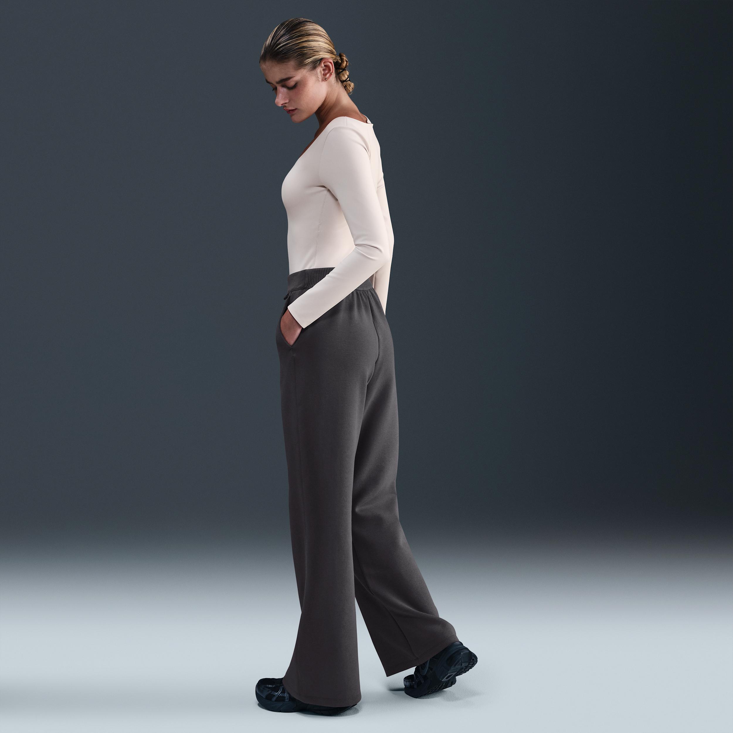 Extraordinarily soft and smooth, our ImpossiblySoft fabric feels made for all-day motion. With a roomy fit and sweat-wicking tech, these pants offer comfort that doesn't quit. Benefits:Nike Dri-FIT technology moves sweat away from your skin for quicker evaporation, helping you stay dry and comfortable. Elastic waistband is gathered in back for dynamic stretch. [] Product Details:Signature locker loop at left hip. Matte silicone branding on left side seam. Hand pockets. Body:51% polyester/25% modal/15% cotton/9% spandex. Pocket bags:100% cotton. Machine wash. Imported. Style: HQ8607; Color: Thunder Grey/Dark Shadow; Size: M; Gender: Female; Age Group: Adult | Nike 24.7 ImpossiblySoft Women's Dri-FIT High-Waisted Loose Flared Pants in Grey, Size: Medium | HQ8607-036