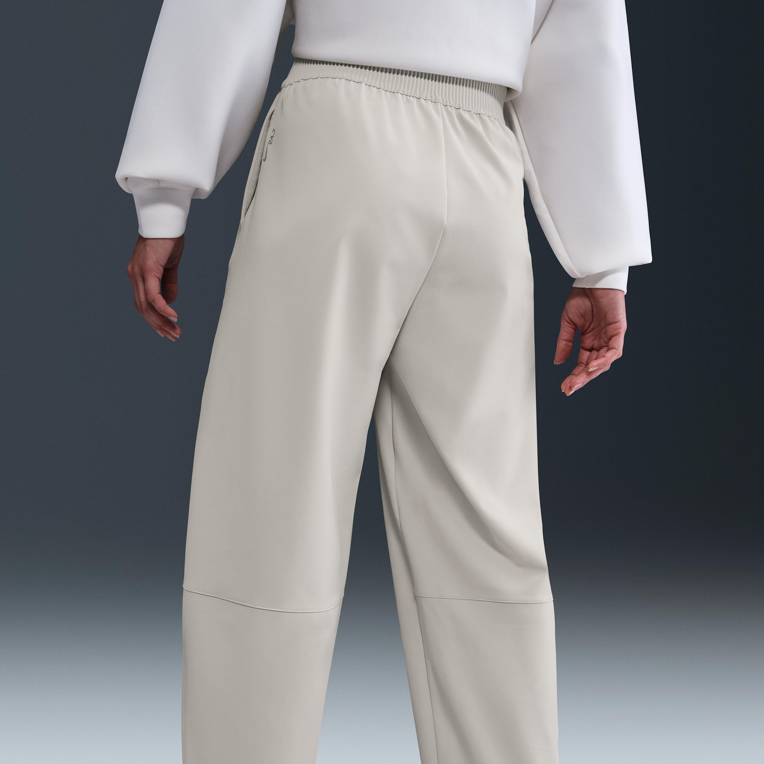 Lightweight and tailored with four-way stretch, our PerfectStretch fabric is designed to keep up with you all day long. With a loose fit and sweat-wicking tech, these barrel-leg pants give you room to move and comfort that doesn't quit. Benefits:Nike Dri-FIT technology moves sweat away from your skin for quicker evaporation, helping you stay dry and comfortable. Elastic waistband is gathered in back for dynamic stretch. [] Product Details:Signature locker loop on left hip. Side-seam pockets. 83% polyester/17% spandex. Machine wash. Imported. Style: HM8847; Color: Light Orewood Brown/Light Iron Ore; Size: XS; Gender: Female; Age Group: Adult | Nike 24.7 PerfectStretch Women's Dri-FIT High-Waisted Loose Barrel-Leg Pants in Brown, Size: XS | HM8847-104
