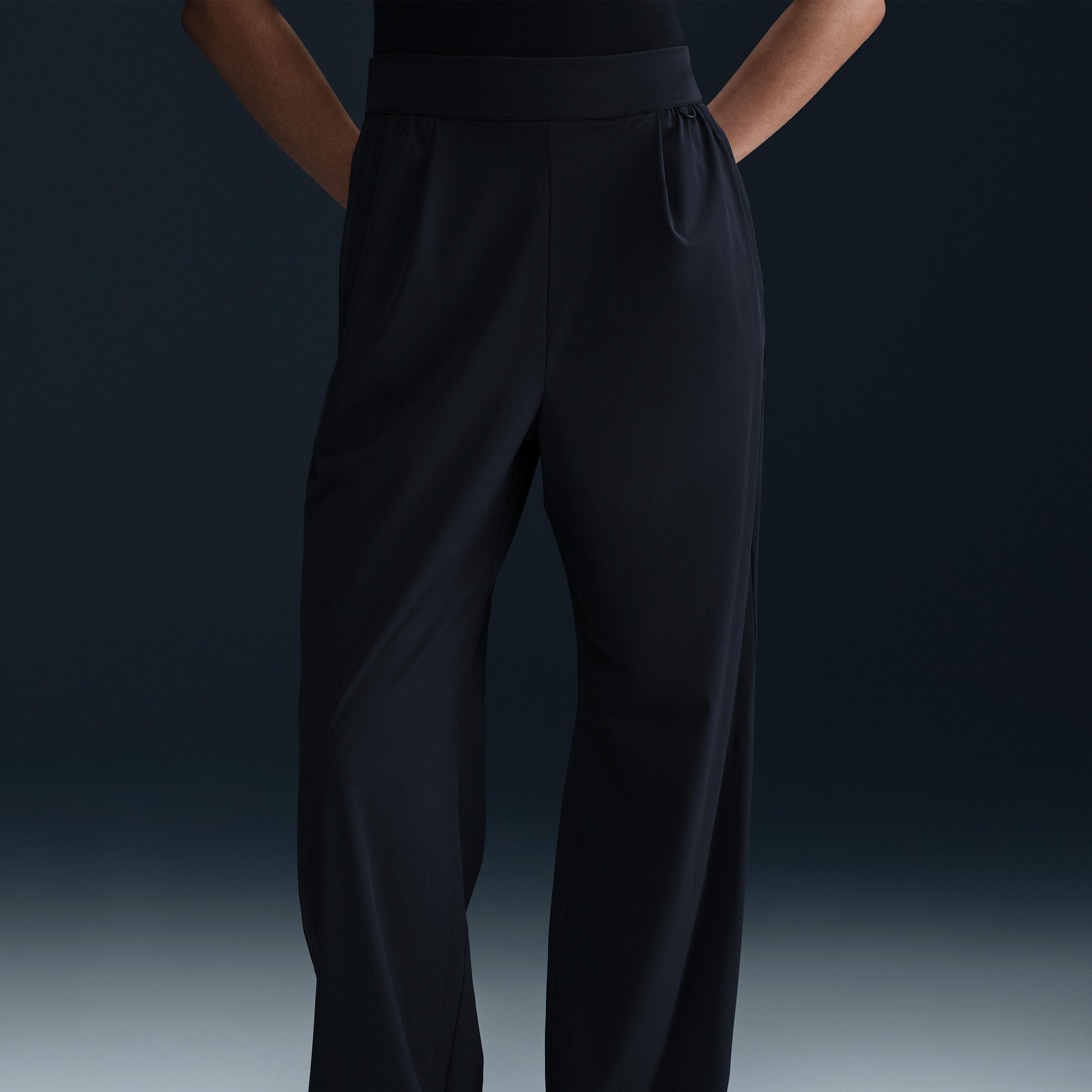 Lightweight and tailored with four-way stretch, our PerfectStretch fabric is designed to keep up with you all day long. These sleek, sweat-wicking pants give you comfort no matter what moves you make. Benefits:Nike Dri-FIT technology moves sweat away from your skin for quicker evaporation, helping you stay dry and comfortable. Elastic waistband is gathered in back for dynamic stretch. Product Details:Signature locker loop on left hip. Open side-seam pockets. Darted waistband. 83% polyester/17% spandex. Machine wash. Imported. Style: HM8389; Color: Black/Dark Smoke Grey; Size: M; Gender: Female; Age Group: Adult | Nike 24.7 PerfectStretch Women's Dri-FIT High-Waisted Loose Wide-Leg Pants in Black, Size: Medium | HM8389-010