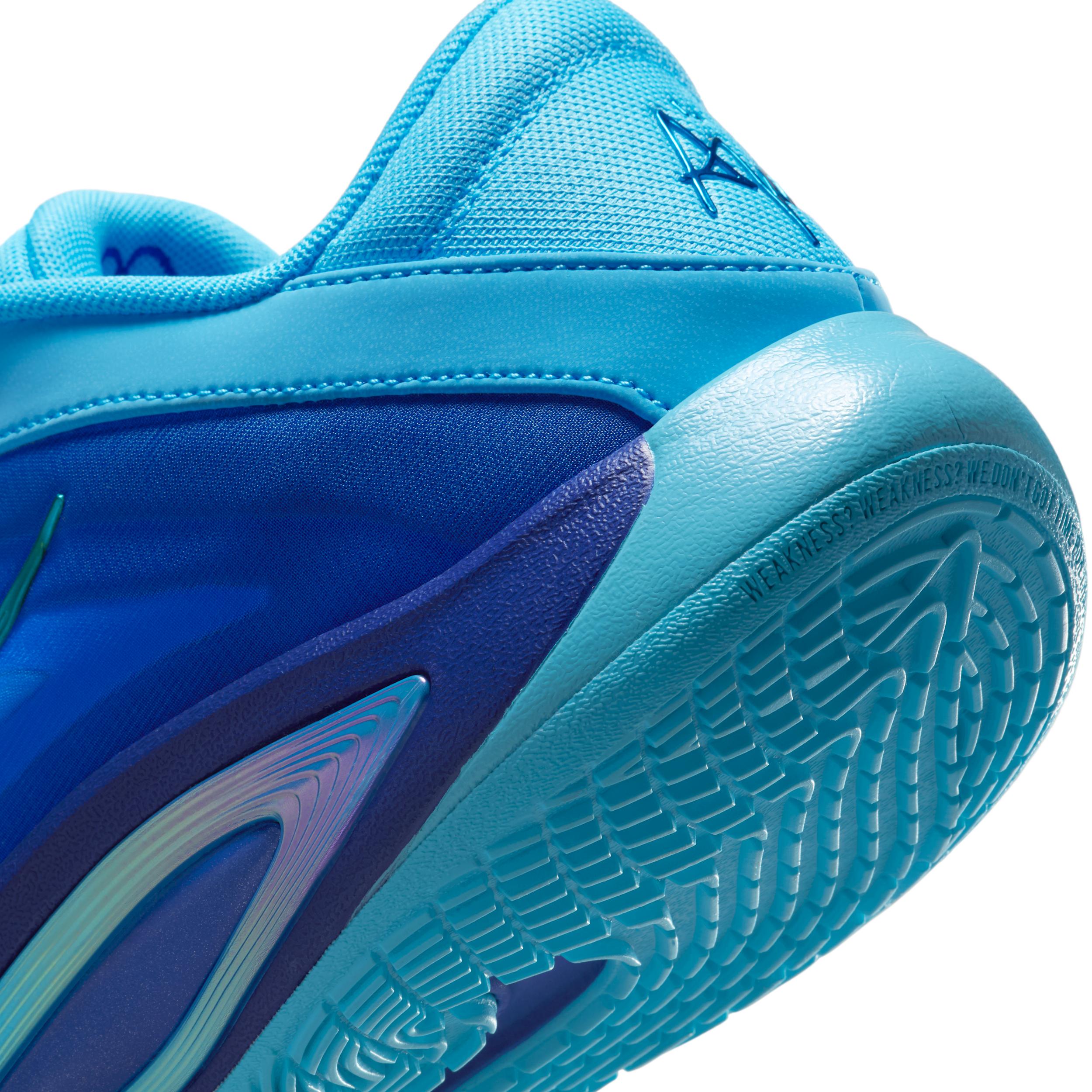 Aâja Wilson knows what she wants and she goes for it. Every. Single. Game. Thatâs what indigo girls like Aâja do. This AâOne takes its cues from her childhood nickname and bright-blue energy, challenging you to be yourself. Underfoot, plush Cushlon 3.0 foam provides unapologetic comfort, helping keep A'ja fresh for pursuing greatness. Fresh All Game:To keep up with Aâjaâs versatility, we designed her shoe with plush Cushlon 3.0 foam underfoot for optimal energy return. So when itâs winning time, she can maintain peak performance. Unapologetically Light:Thereâs no slowing Aâja down when the game is on the line. Light and breathable mesh helps keep her quick on her feet. Micro-Tuned Traction:Soft, stable foam combines with a generative traction pattern for the support and control Aâja needs to be a lockdown defender. Star Power:Built around the star she's always drawn into her signature, A'ja's logo is strong, bold and playfulâjust like the energy she brings to the court. More Benefits:Extended bump along the heel gives you optimal stability. Midfoot band provides optimal arch support and movement control. Style: FZ8605; Color: Blue Fury/Racer Blue/Photo Blue/Radiant Blue; Size: 19.5; Gender: Female; Age Group: Adult | Nike A'One "Indigo Girl" A'ja Wilson Basketball Shoes in Blue, Size: 19.5 | FZ8605-401