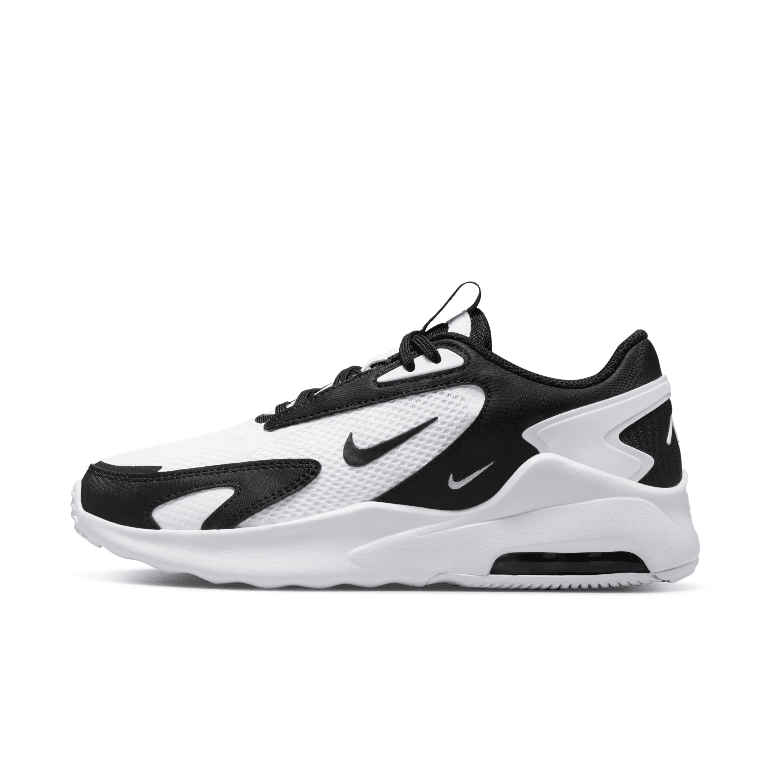 SLEEK LOOK, PLUSH COMFORT. The running-inspired Nike Air Max Bolt features rich overlays, wavy design lines and a whole lot of visible Air cushioning underfoot. The foam midsole delivers lasting comfort, while its lightweight, durable materials make it a first-class essential. Benefits: The synthetic and fabric materials provide lightweight durability for everyday wear. Inspired by performance running, the Max Air unit combines with a plush foam midsole for an incredible feel. Mesh in the upper adds an airy aesthetic. The low-cut, padded collar looks sleek and feels great. Product Details: Tongue pull. Foam insole. Rubber outsole. Style: CU4152; Color: White/White/Black; Size: 5.5; Gender: Female; Age Group: Adult | Nike Air Max Bolt Women's Shoes in White, Size: 5.5 | CU4152-101