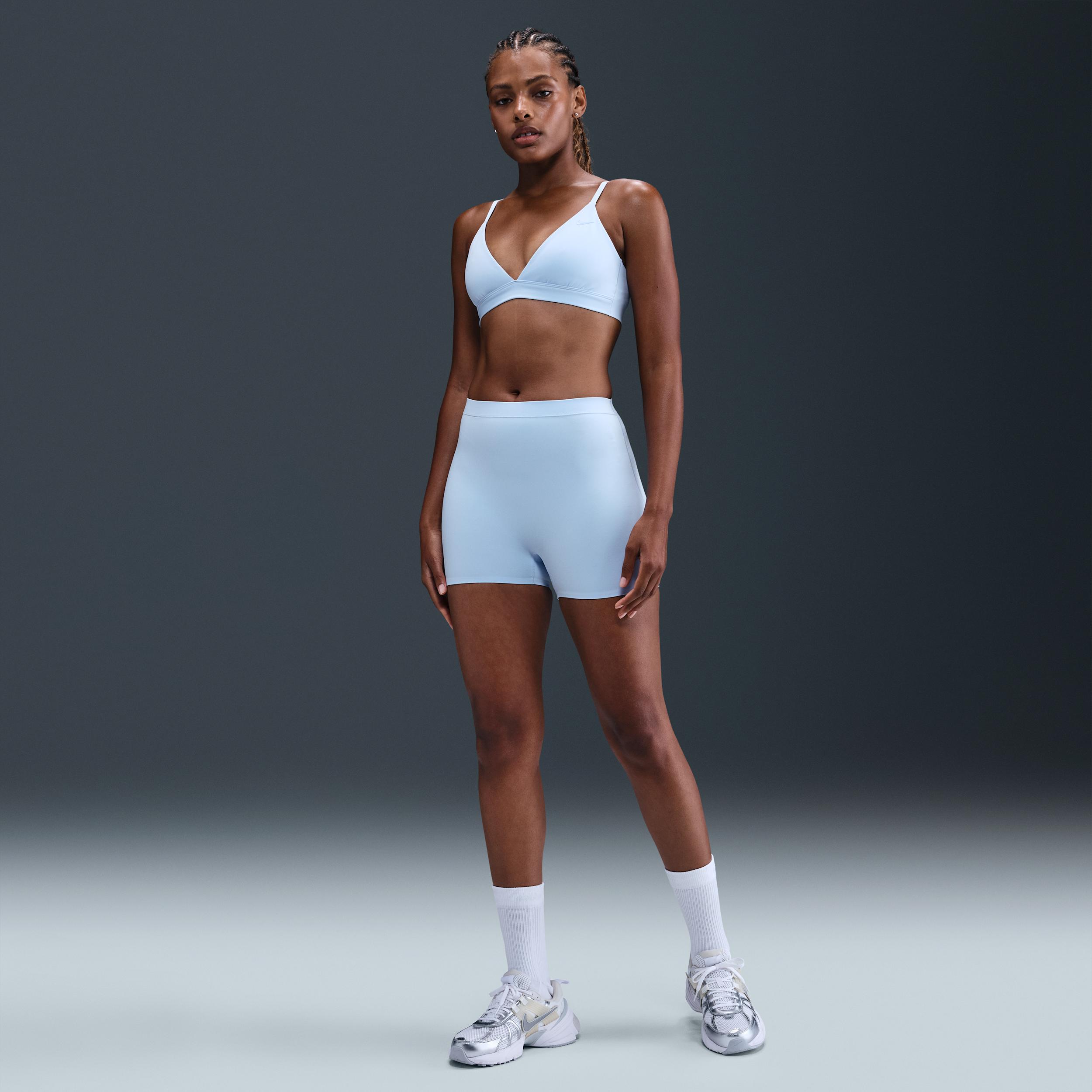 Show off your formânot your sweat. Designed with Stealth Evaporation technology, this triangle bra conceals moisture to help you stay looking fresh. Midweight, ultrasoft fabric offers smooth coverage, while light support gives you a gentle hold with plenty of freedom. Sweat-Concealing Technology:Nike Stealth Evaporation technology helps reduce sweat marks by dispersing moisture so the fabric dries quickly and stays looking fresh. Less Is More:Minimal coverage and a non-padded design highlight your shape, while convertible, adjustable straps give you styling options. [] Product Details:Silicone Swoosh logo on left chest. Body/Lining:76% polyester/24% spandex. Machine wash. Imported. Style: HQ7003; Color: Celestine Blue/Psychic Blue; Size: XL; Gender: Female; Age Group: Adult | Nike Form Women's Light-Support Non-Padded Triangle Sports Bra in Blue, Size: XL | HQ7003-441