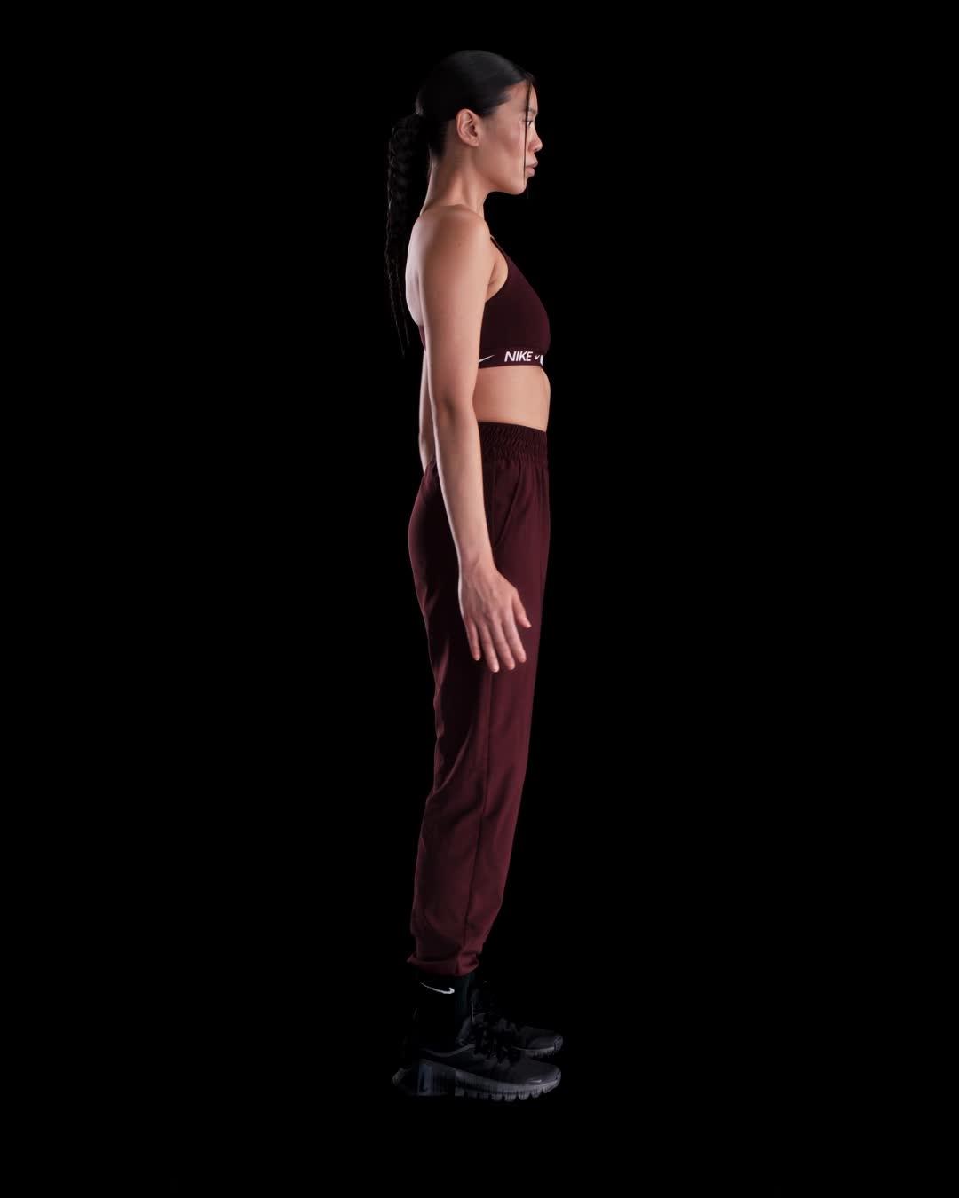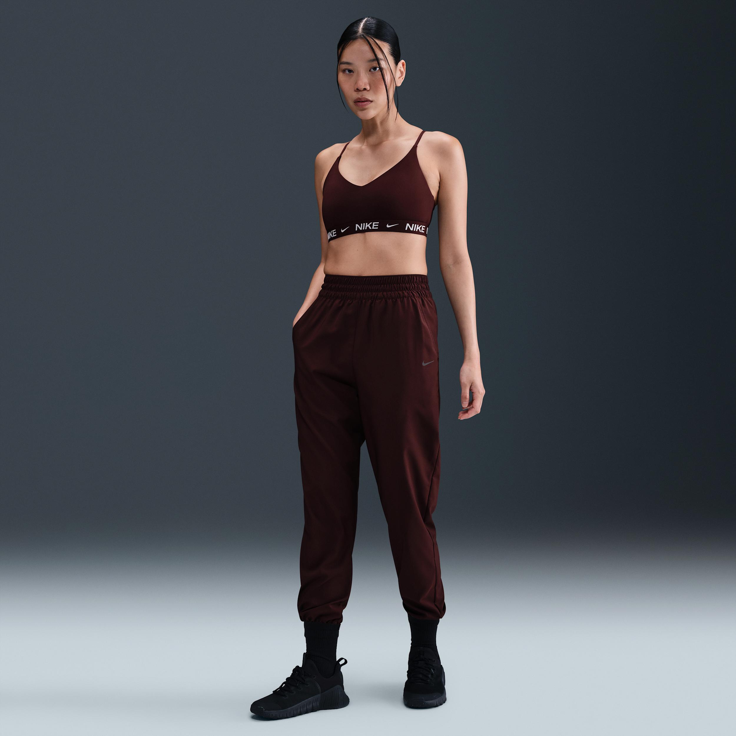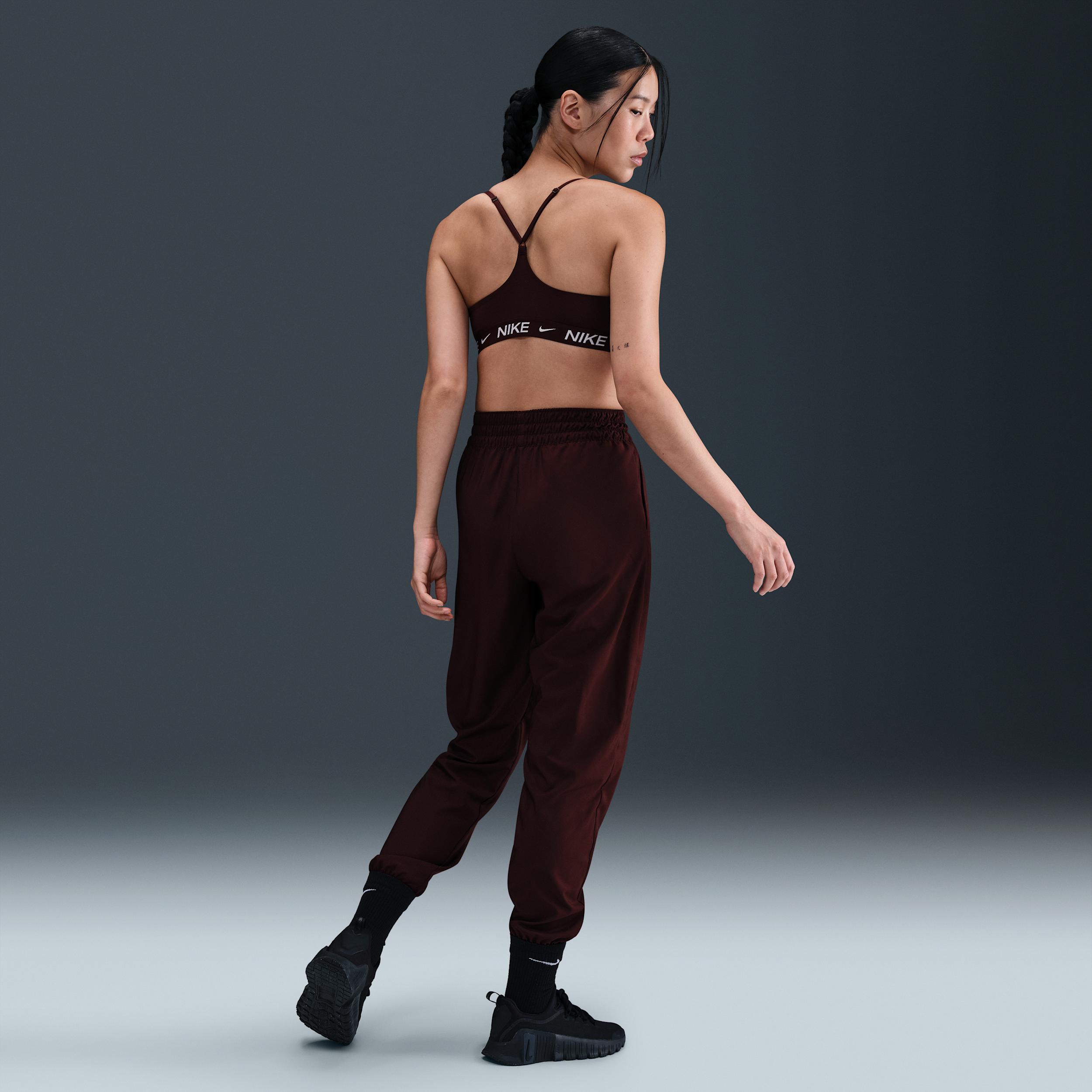 Don't let anything get in the way of expressing yourself in this sleek, low-profile sports bra. Its light support gives you a gentle hold with plenty of freedom that's great for low-impact workouts or all-day comfort. Smooth, quick-drying fabric gives the bra a clean finish so you can wear it your way. Adjustable Coverage:Dial in your perfect fit with thin straps that easily adjust in the back. Want a little more coverage and subtle shaping? Engineered pads slip in from the bottom and stay put during wash and wear for a smooth, reliable silhouette. Freedom to Choose:Every day and every workout has different needs, and that's why we've updated the Indy bra to give you choices. Need snug, on-the-go support? Try the Indy Medium Support. And if you want to keep motion to a minimum, check out the Indy High Support. More Benefits: Nike Dri-FIT technology moves sweat away from your skin for quicker evaporation, helping you stay dry and comfortable. Soft jacquard chest band sits snugly against your skin without pinching or binding. Product Details:Body:78-79% polyester/21-22% spandex. Bottom hem:53% polyester/28% nylon/19% spandex. Straps:52% polyester/32% spandex/16% nylon. Lining:84% polyester/16% spandex. Interlining:80% polyester/20% spandex. Pad top fabric/Pad back fabric:100% polyester. Pad:100% polyurethane. Machine wash. Imported. Style: FD1062; Color: Burgundy Crush/White; Size: M; Gender: Female; Age Group: Adult | Nike Indy Light Support Women's Padded Adjustable Sports Bra in Red, Size: Medium | FD1062-653