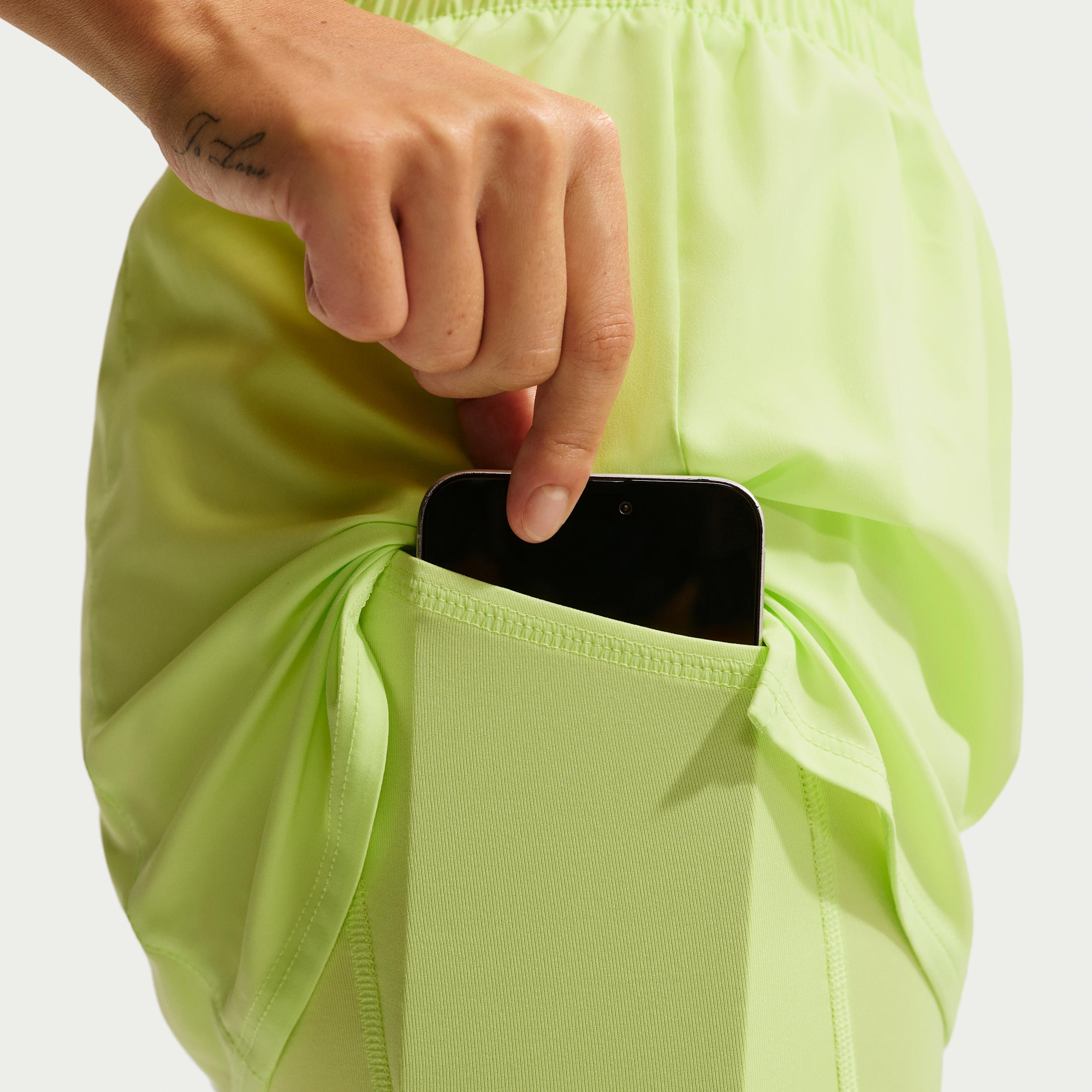 These shorts are the ones that are down for everything you doâfrom long walks to HIIT to running errands. Their silky-smooth, ultrasoft woven fabric is balanced with sweat-wicking tech so you have ultimate comfort while feeling dry as you work out. The snug inner layer helps prevent chaffing so you can push yourself with uncompromising coverage. Benefits:Nike Dri-FIT technology moves sweat away from your skin for quicker evaporation, helping you stay dry and comfortable. Waistband and interior lining pockets let you keep small items close. [] Product Details:Body:100% polyester. Tight:88% polyester/12% spandex. Gusset Lining:100% polyester. High-rise elastic waistband. Machine wash. Imported. Not intended for use as Personal Protective Equipment (PPE). Style: DX6016; Color: Light Lemon Twist/White; Size: XL; Gender: Female; Age Group: Adult | Nike One Women's Dri-FIT High-Waisted 3" 2-in-1 Shorts in Yellow, Size: XL | DX6016-736