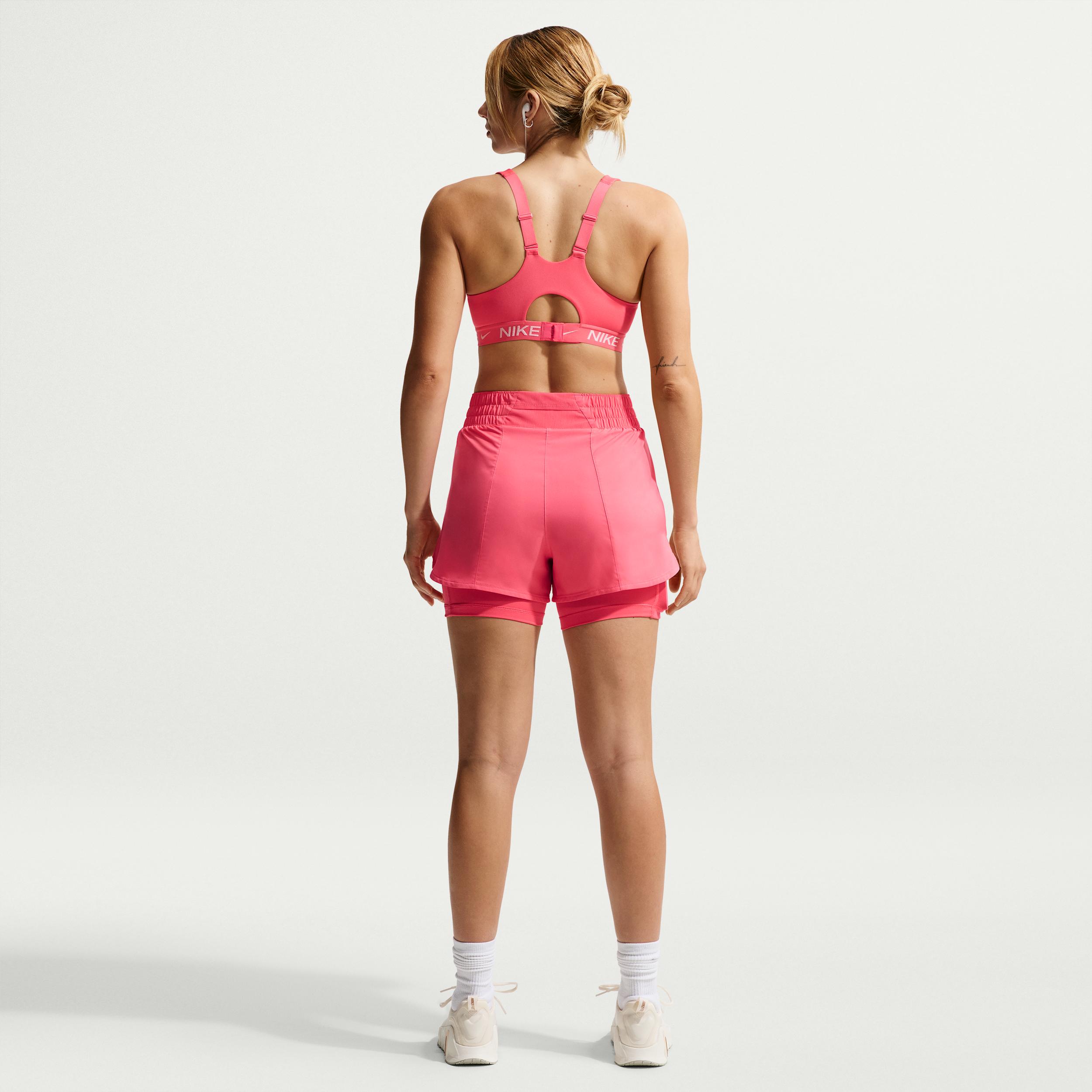 These shorts are the ones that are down for everything you doâfrom long walks to HIIT to running errands. Their silky-smooth, ultrasoft woven fabric is balanced with sweat-wicking tech so you have ultimate comfort while feeling dry as you work out. The snug inner layer helps prevent chaffing so you can push yourself with uncompromising coverage. Benefits:Nike Dri-FIT technology moves sweat away from your skin for quicker evaporation, helping you stay dry and comfortable. Waistband and interior lining pockets let you keep small items close. [] Product Details:Body:100% polyester. Tight:88% polyester/12% spandex. Gusset Lining:100% polyester. High-rise elastic waistband. Machine wash. Imported. Not intended for use as Personal Protective Equipment (PPE). Style: DX6016; Color: Sea Coral/White; Size: 2XS; Gender: Female; Age Group: Adult | Nike One Women's Dri-FIT High-Waisted 3" 2-in-1 Shorts in Pink, Size: 2XS | DX6016-897