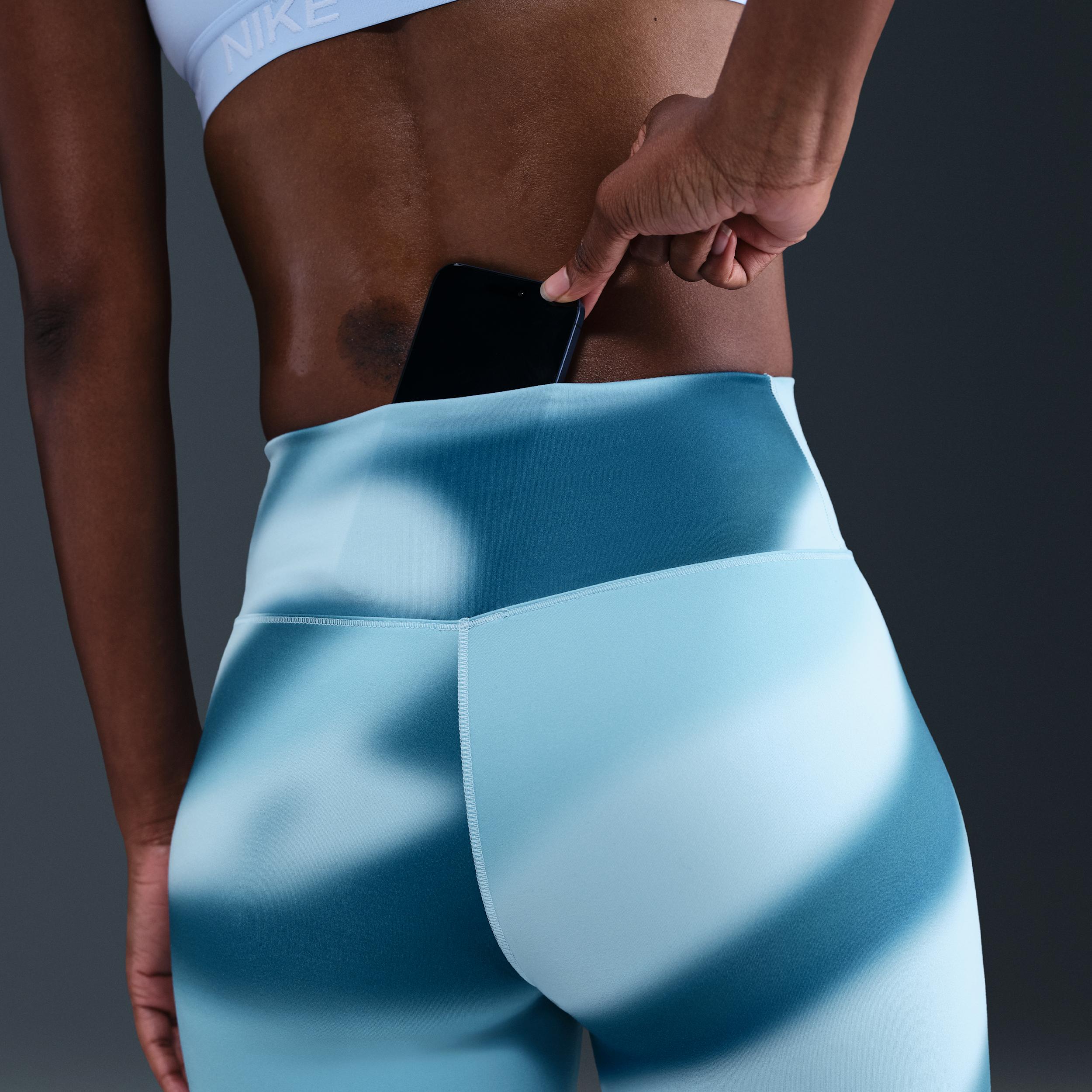 Nike One works for it all. These nonsheer leggings help keep you covered with midweight, peachy-soft fabric that stretches with your every move. Benefits:Nike Dri-FIT technology moves sweat away from your skin for quicker evaporation, helping you stay dry and comfortable. Midweight, peachy-soft fabric stretches with your every move and dries quickly. Back pocket fits most phones. [] Product Details:Body/Waist lining:80% polyester/20% spandex. Gusset lining:100% polyester. Machine wash. Imported. Style: IM8736; Color: Light Armory Blue/Celestine Blue/Psychic Blue; Size: S; Gender: Female; Age Group: Adult | Nike One Women's Dri-FIT High-Waisted 7/8 Leggings in Blue, Size: Small | IM8736-478