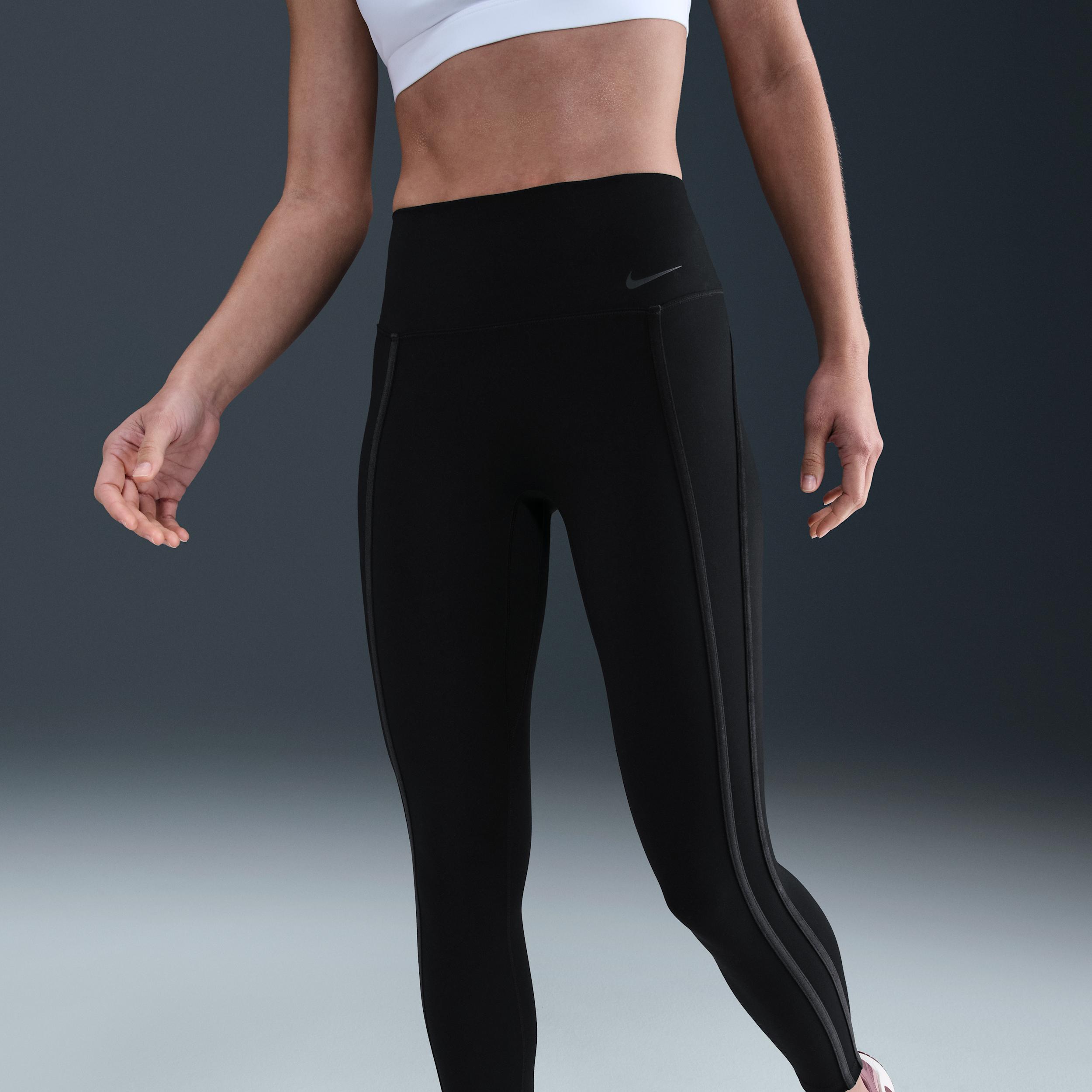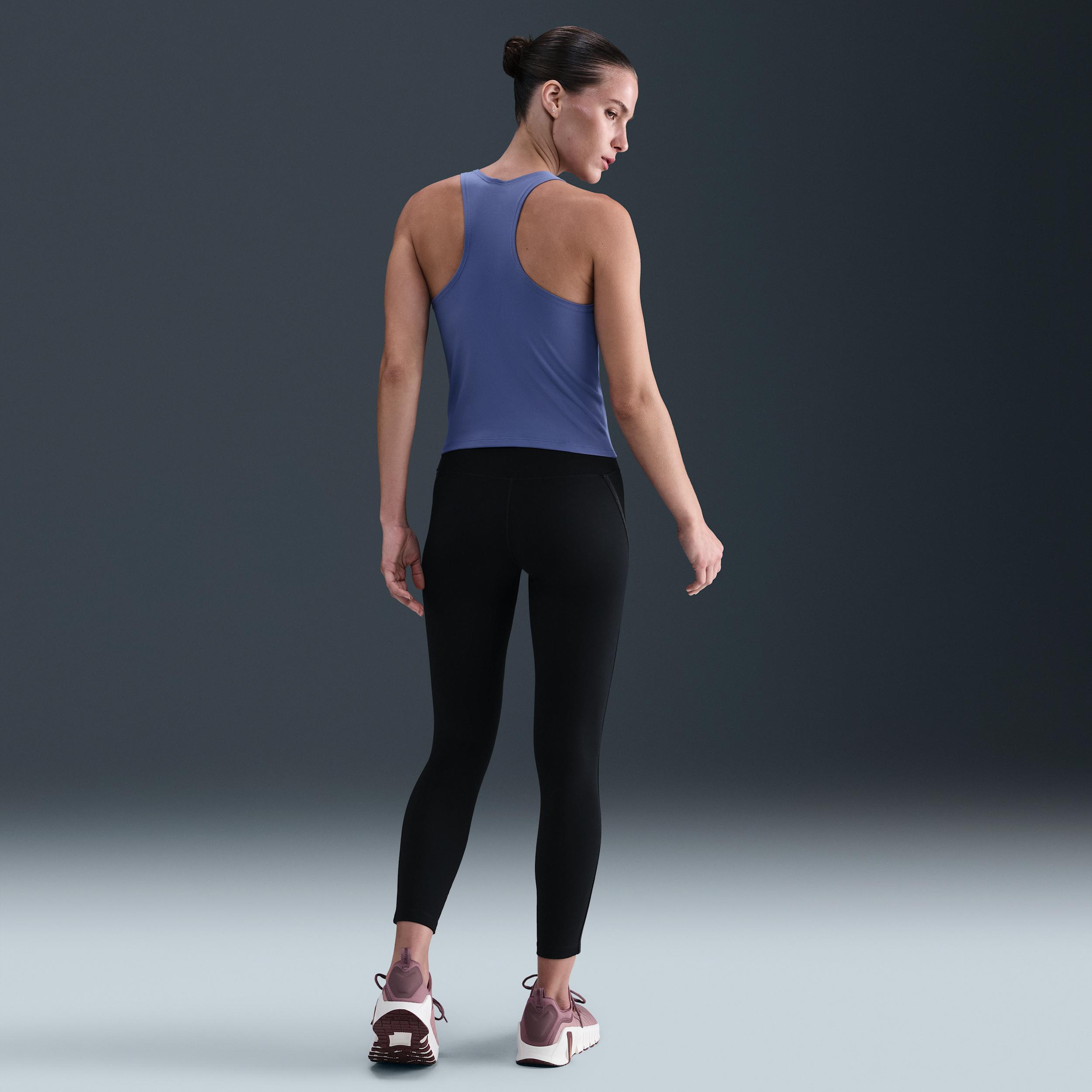 Nike One works for it all. Midweight and peachy soft, these leggings stretch with your every move and dry quickly. Nonsheer with a high waist, they help keep your butt covered no matter how deep you bend. Benefits:Nike Dri-FIT technology moves sweat away from your skin for quicker evaporation, helping you stay dry and comfortable. Absence of a front seam helps keep the fabric from riding up for a smooth fit. Back pocket fits most phones. [] Product Details:Swoosh logo. Body:80% Polyester, 20% spandex; Waist Lining:80% Polyester, 20% spandex; Gusset Lining:100% Polyester. Machine Wash. Imported. Style: HV2478; Color: Black/Dark Smoke Grey; Size: XS; Gender: Female; Age Group: Adult | Nike One Women's High-Waisted 7/8 Leggings in Black, Size: XS | HV2478-010