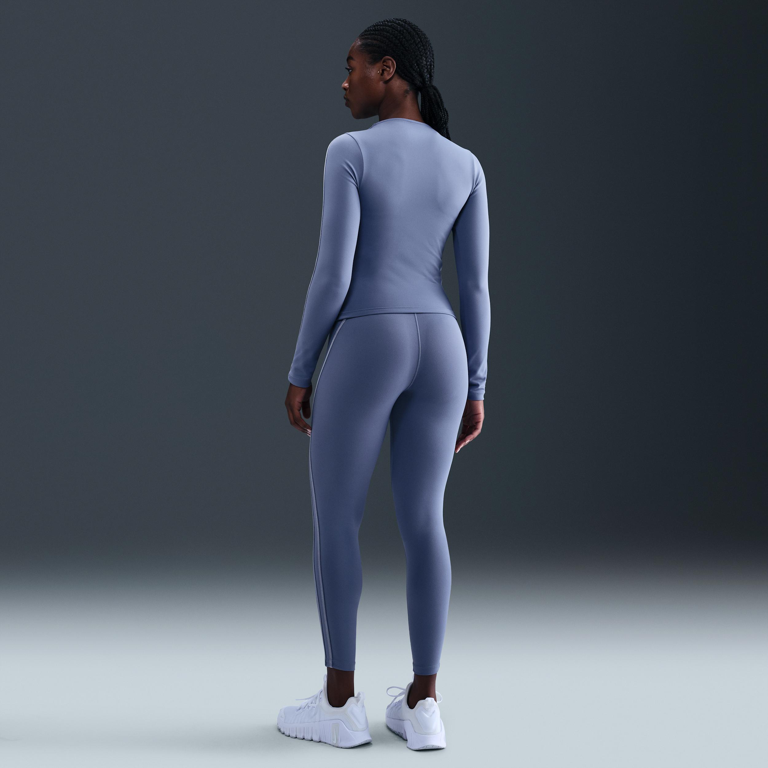Nike One works for it all. Midweight and peachy soft, these leggings stretch with your every move and dry quickly. Nonsheer with a high waist, they help keep your butt covered no matter how deep you bend. Benefits:Nike Dri-FIT technology moves sweat away from your skin for quicker evaporation, helping you stay dry and comfortable. Absence of a front seam helps keep the fabric from riding up for a smooth fit. Back pocket fits most phones. [] Product Details:Swoosh logo. Body:80% Polyester, 20% spandex; Waist Lining:80% Polyester, 20% spandex; Gusset Lining:100% Polyester. Machine Wash. Imported. Style: HV2478; Color: World Indigo/Work Blue; Size: M; Gender: Female; Age Group: Adult | Nike One Women's High-Waisted 7/8 Leggings in Blue, Size: Medium | HV2478-499
