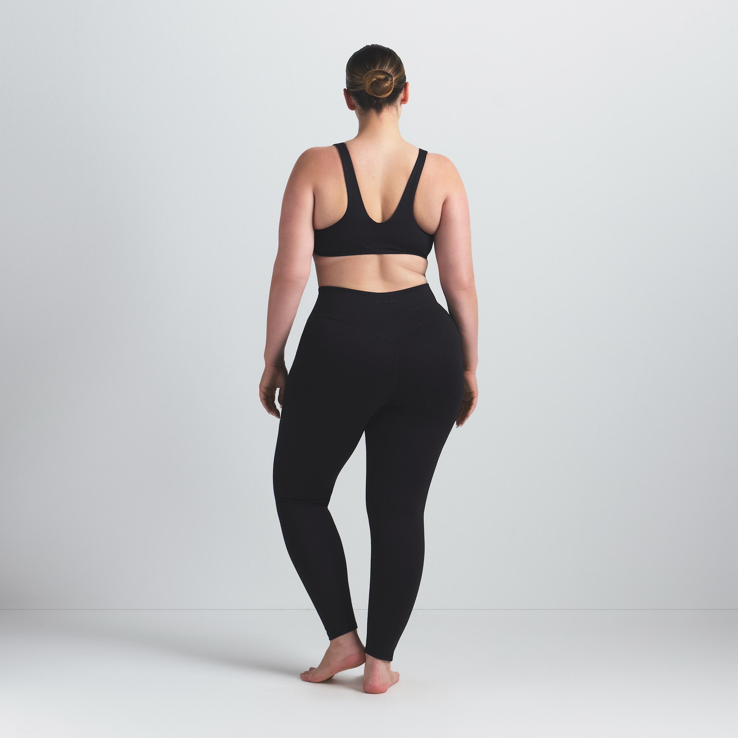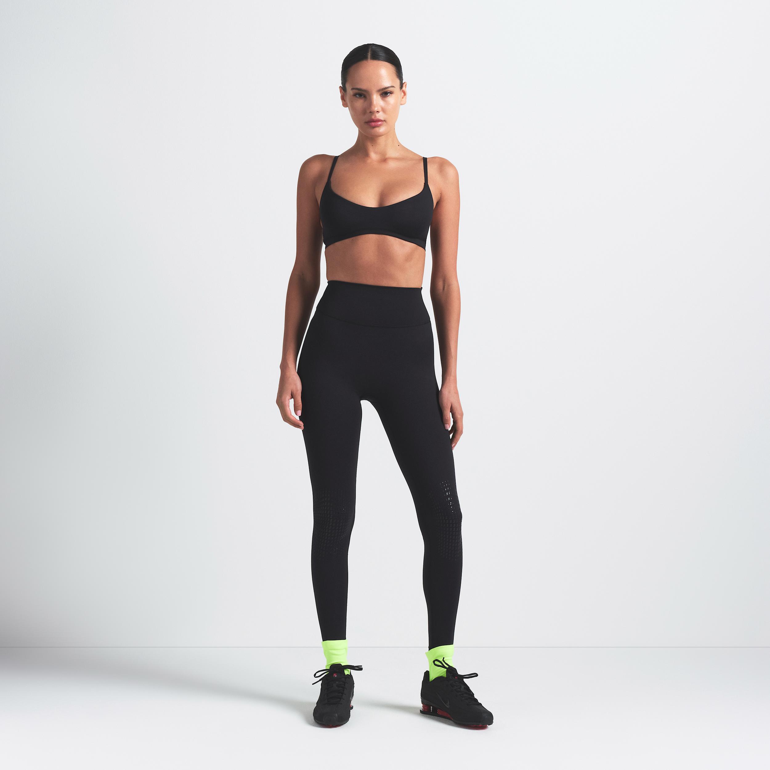 Made with our sculpting Matte fabric, these high-waisted leggings pair side-dart details with V-shaped seams to accentuate your shape. Innovative silicone grip at the knees gives you a secure hold in studio classes while sweat-wicking Dri-FIT technology helps keep you cool and comfortable. Benefits:Our soft Matte fabric is designed to sculpt and smooth. Nike Dri-FIT technology moves sweat away from your skin for quicker evaporation, helping you stay dry and comfortable. S-shaped silicone grippers at the knees give you added hold during studio classes. [] Product Details:26 inseam. Silicone matte logo at center back. Cotton gusset. 83% nylon/17% Lycra® spandex. Machine wash. Imported. Style: PTLEG9495W; Color: NSKM OBSIDIAN/NSKM OBSIDIAN; Size: XS; Gender: Female; Age Group: Adult | Nike SKIMS Matte Women's High-Waisted 26" Knee Grip Leggings in Black, Size: XS | PTLEG9495W-OBD