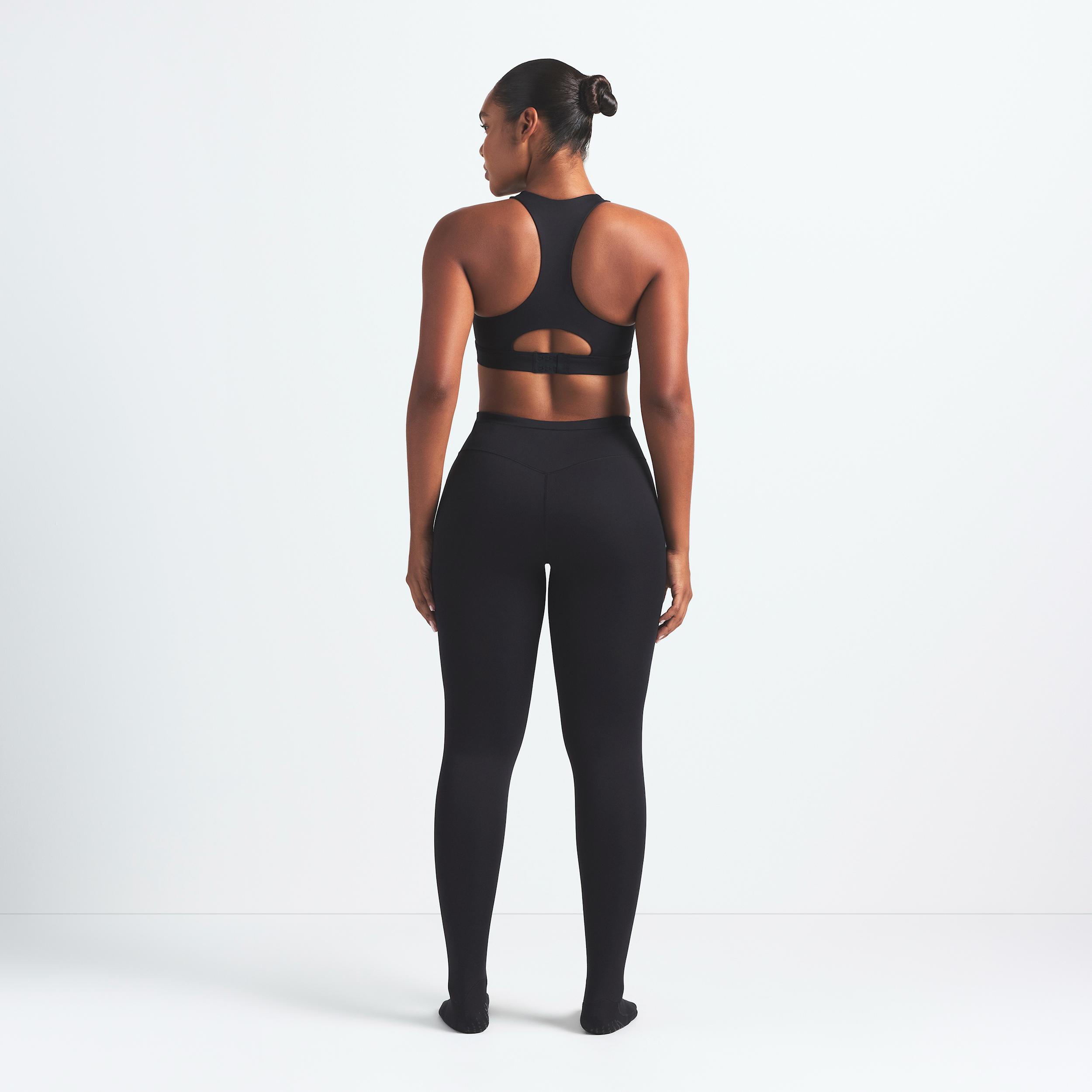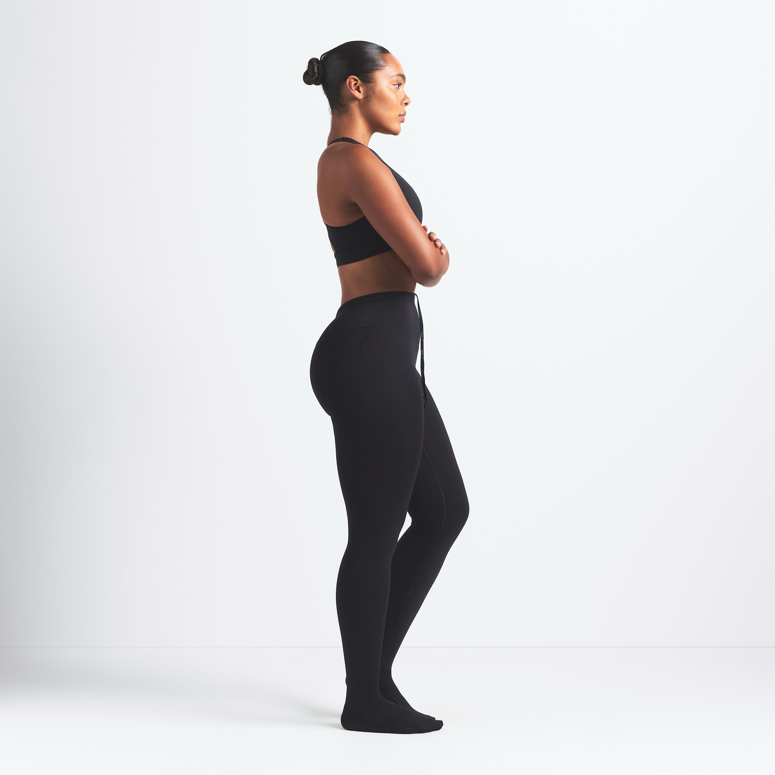 Our Matte fabric sculpts and smoothes your curves while the footed design of these leggings gives you secure grip. Side-dart details accentuate your shape plus we added our sweat-wicking Dri-FIT technology to make them a studio essential you can wear anywhere. Benefits:Our soft Matte fabric is designed to sculpt and smooth. Nike Dri-FIT technology moves sweat away from your skin for quicker evaporation, helping you stay dry and comfortable. Footed design features a grippy silicone sole for a secure studio experience. Waistband has an internal drawstring so you can adjust your fit. Darts at the side contour your curves. [] Product Details:Four-way stretch. Cotton gusset. Silicone matte logo at center front. 73% polyamide/27% Lycra® spandex. Machine wash. Imported. Style: BOLEG8617W; Color: NSKM OBSIDIAN; Size: 2XS; Gender: Female; Age Group: Adult | Nike SKIMS Matte Women's High-Waisted Footsie Grip Leggings in Black, Size: 2XS | BOLEG8617W-OBD