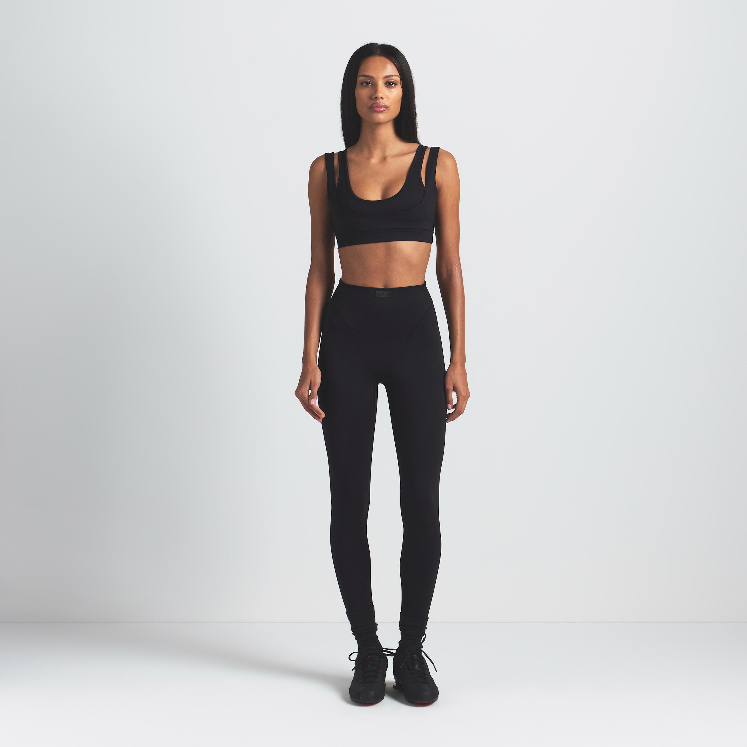Our Matte fabric sculpts and smoothes your curves while side-dart details and a double-layered V-panel accentuate your shape. We added our sweat-wicking Dri-FIT technology to make these leggings a studio essential you can wear anywhere. Benefits:Our soft Matte fabric is designed to sculpt and smooth. Nike Dri-FIT technology moves sweat away from your skin for quicker evaporation, helping you stay dry and comfortable. Darts at the side contour your curves. [] Product Details:26 inseam. Four-way stretch. Cotton gusset. Silicone matte logo at center front. 83% polyamide/17% Lycra® spandex. Machine wash. Imported. Style: BOLEG7008W; Color: NSKM OBSIDIAN; Size: 2XS; Gender: Female; Age Group: Adult | Nike SKIMS Matte Women's High-Waisted V-Line 26" Leggings in Black, Size: 2XS | BOLEG7008W-OBD